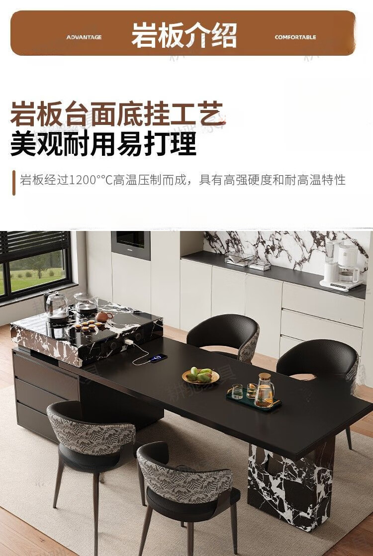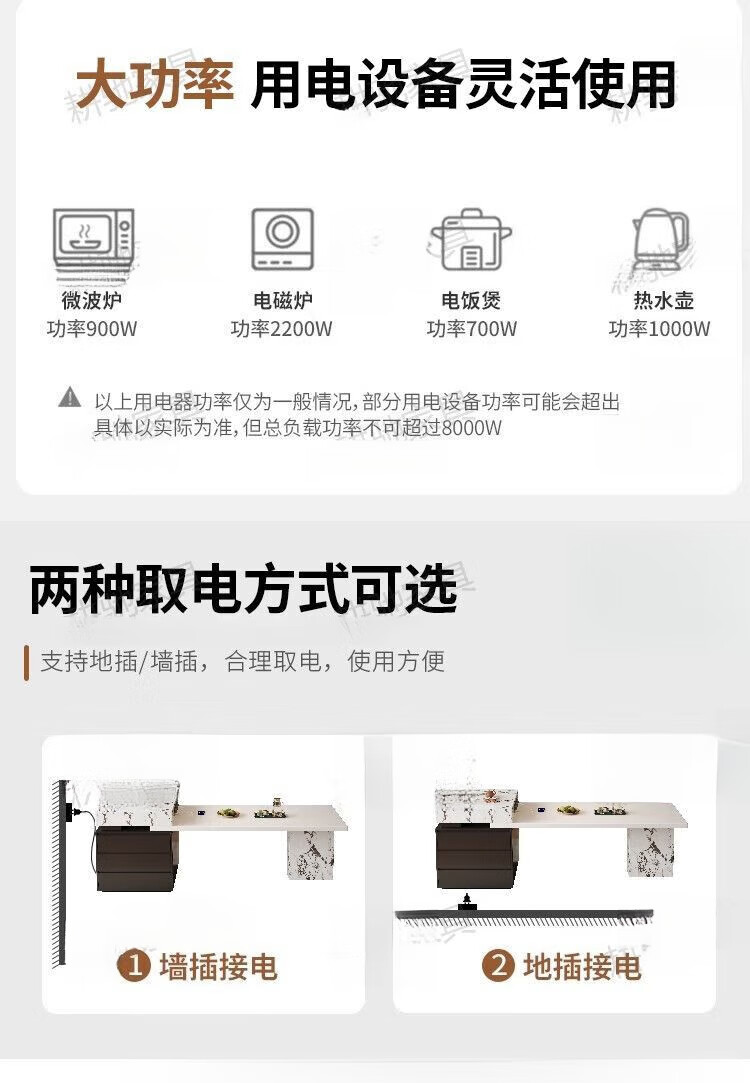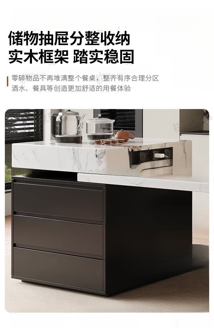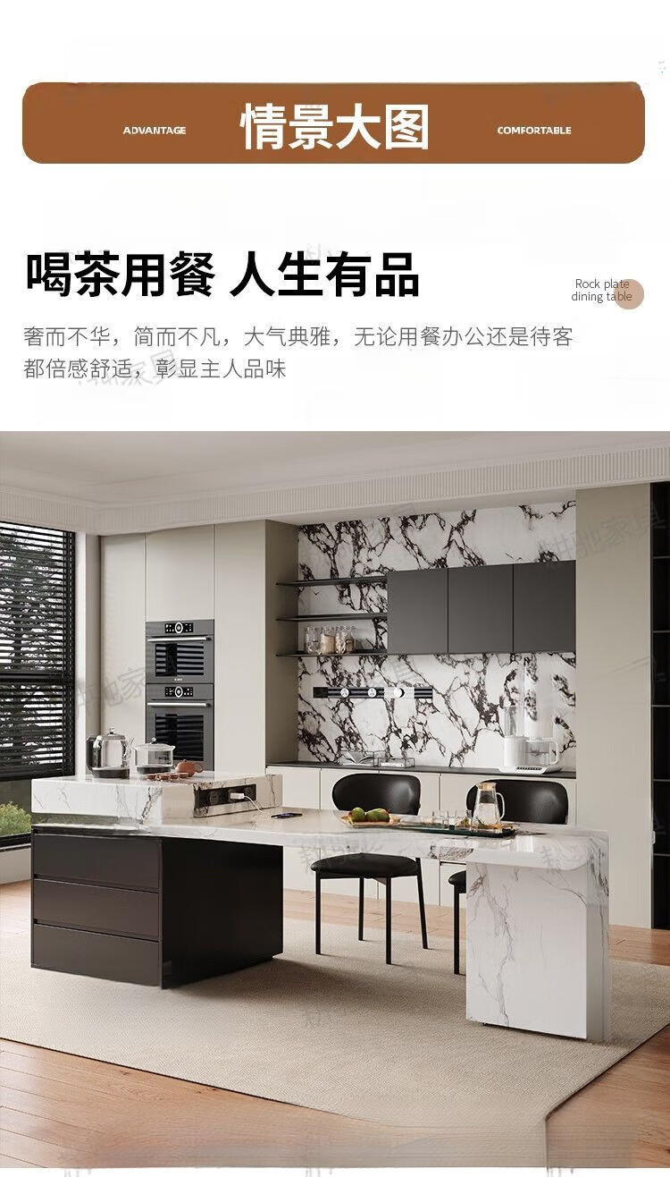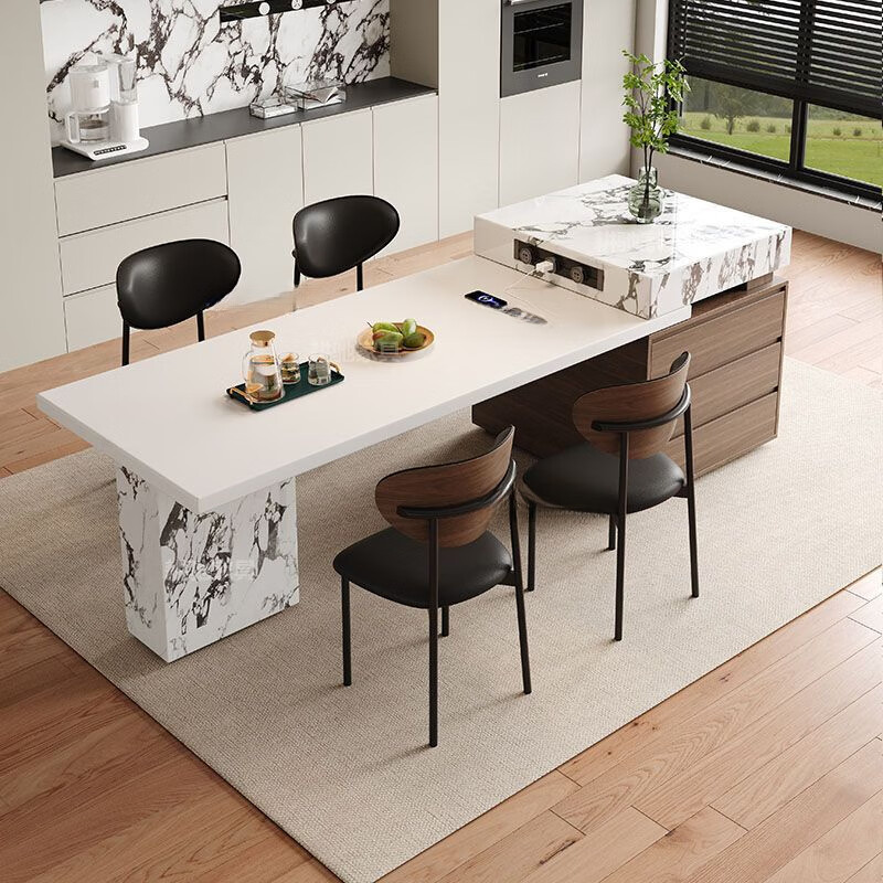 Pupan's new high-end Italian-style island dining table with wood grain integrated household retractable slate modern multi-functional kitchen guide table. Total length 1.95-2.4 meters 80*80 dominant rail socket basic slate flat island table