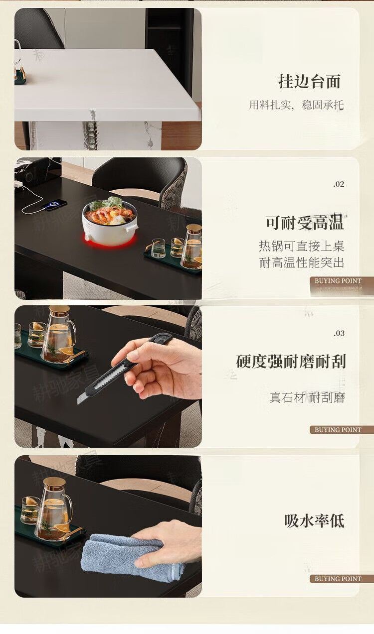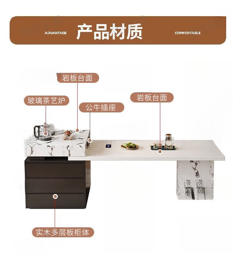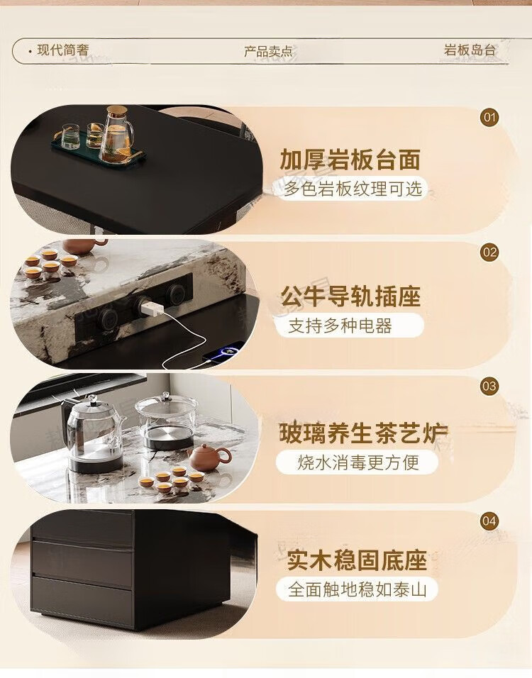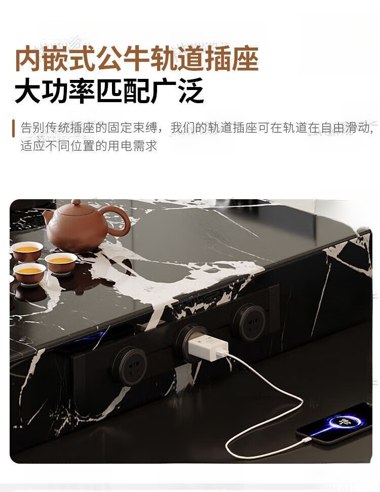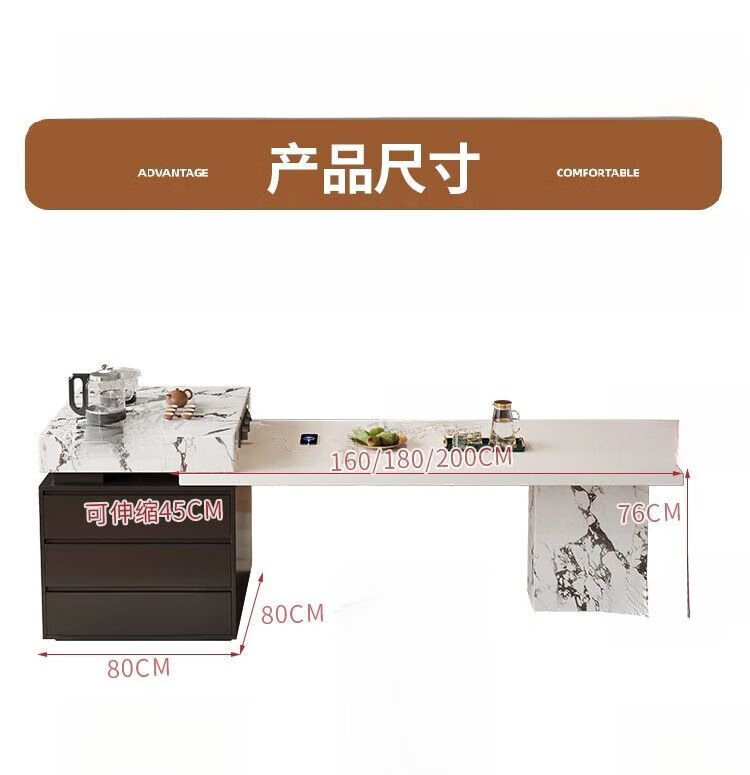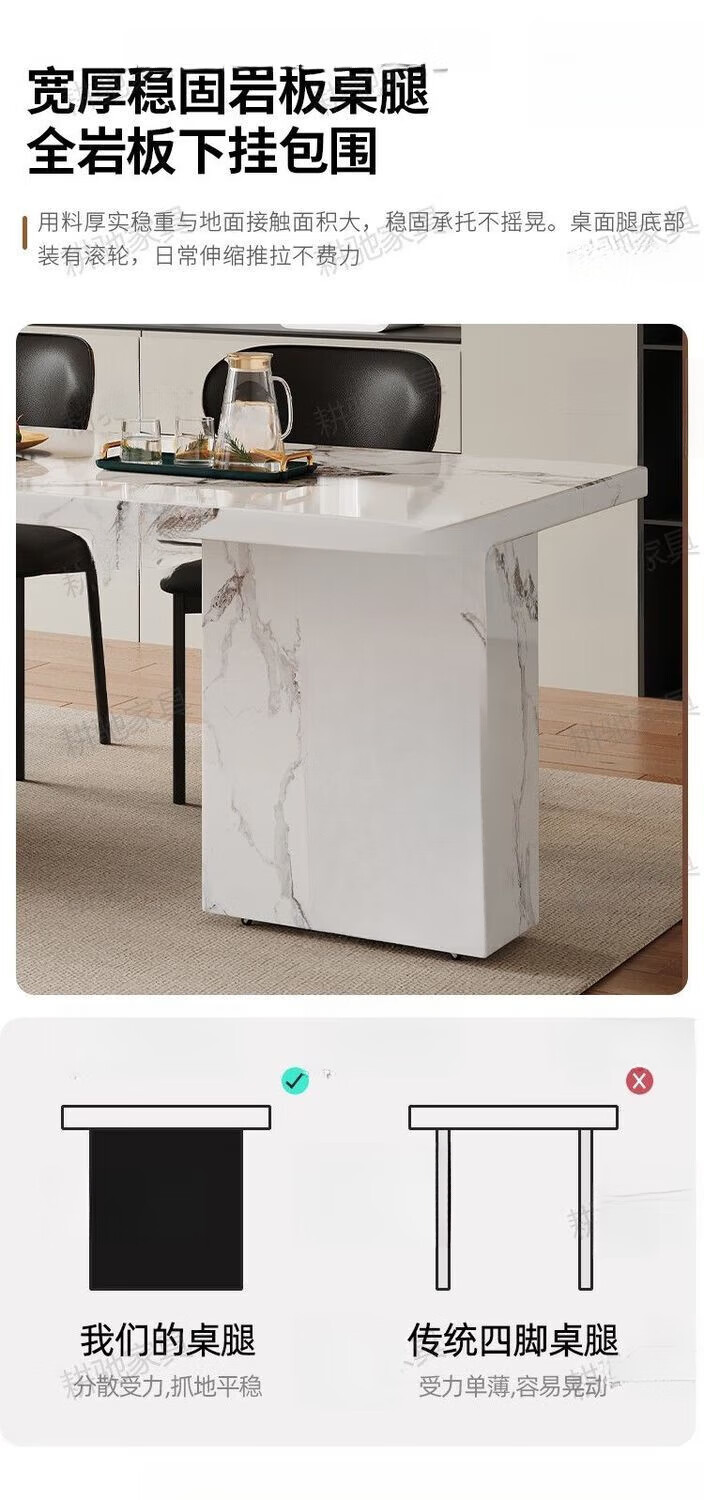 Pupan's new high-end Italian-style island dining table with wood grain integrated household retractable slate modern multi-functional kitchen guide table. Total length 1.95-2.4 meters 80*80 dominant rail socket basic slate flat island table