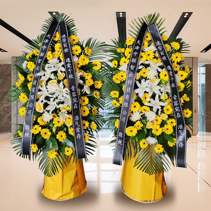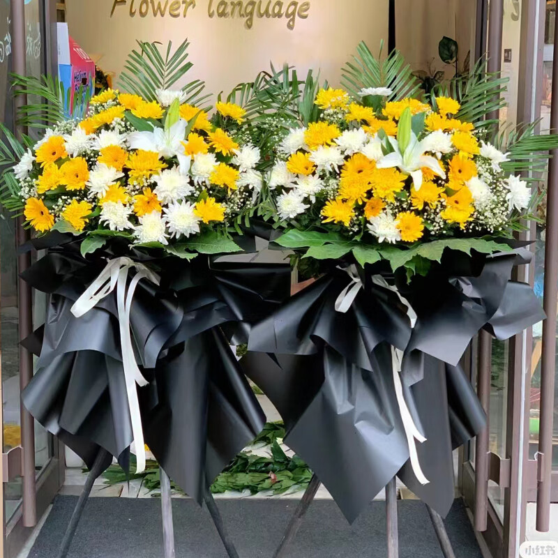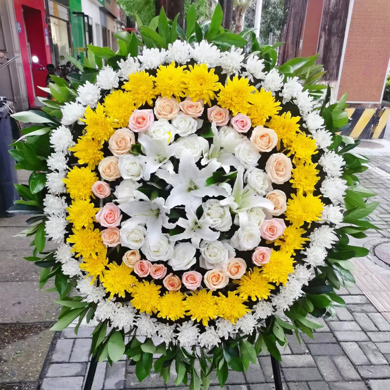 Leaves, flowers, chrysanthemum wreaths, baskets, tripods, funerals, funerals, memorial flowers, express delivery in the same city and nationwide stores, missing 11 yellow and white chrysanthemum bouquets