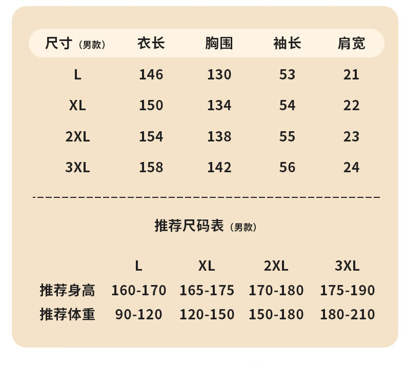 China (cm) 165 / 88-90 170 / 96-98 175 / 108-110 180 / 118-122 185 / 126-130