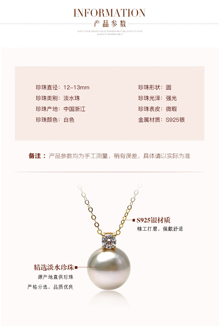 Queen of Pearls Classic Princess Diana Style S925 Silver 12-13mm Freshwater Pearl Pendant for Women Birthday Gift for Wife S925 Silver Yellow Buckle