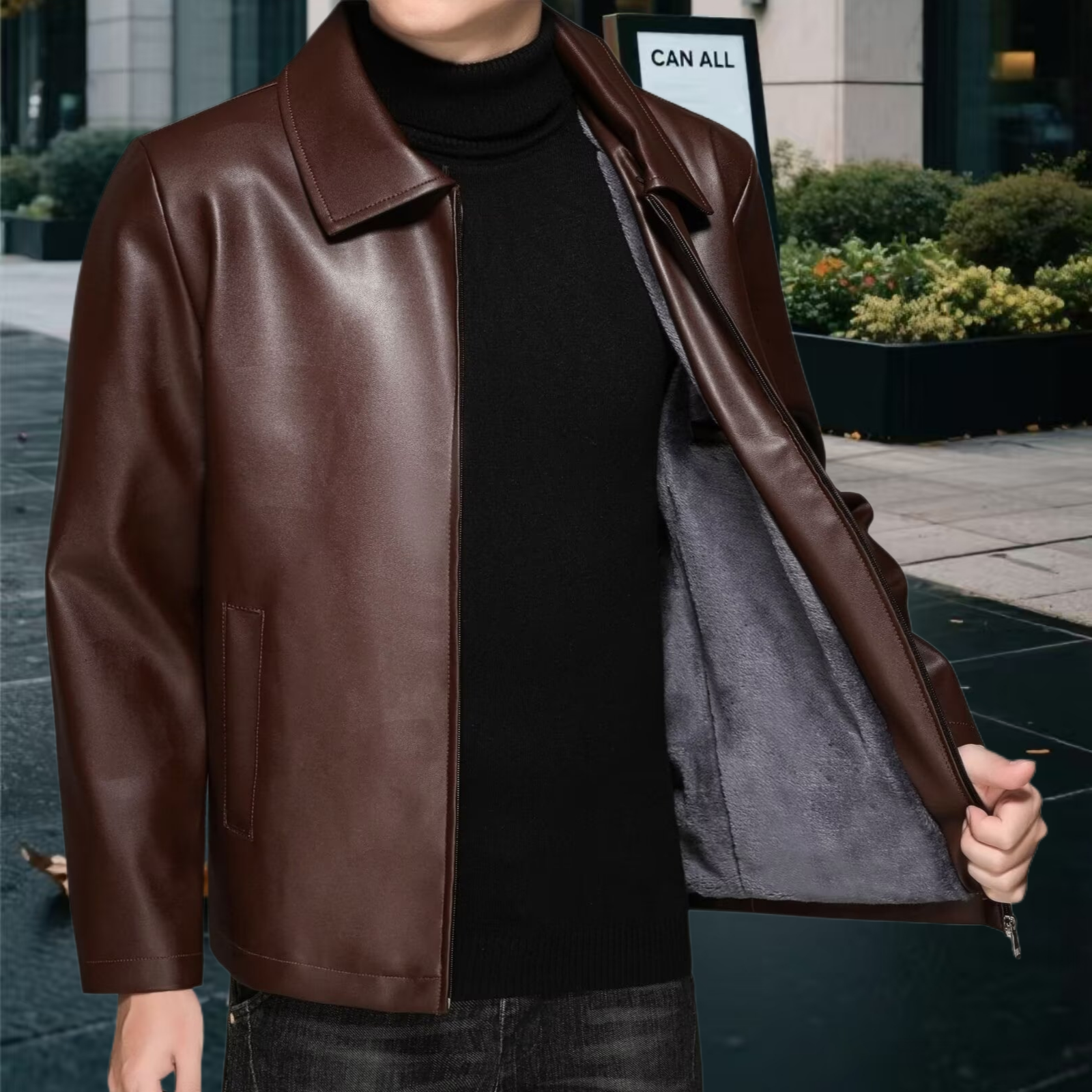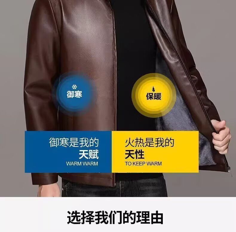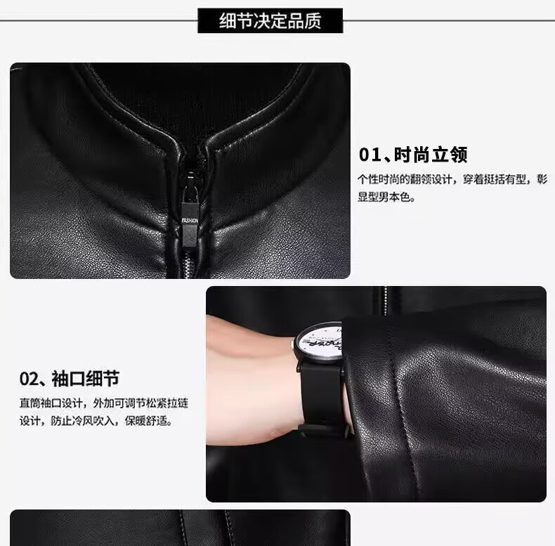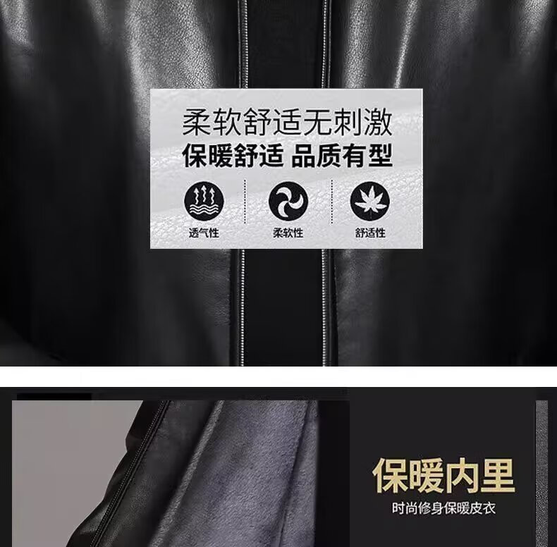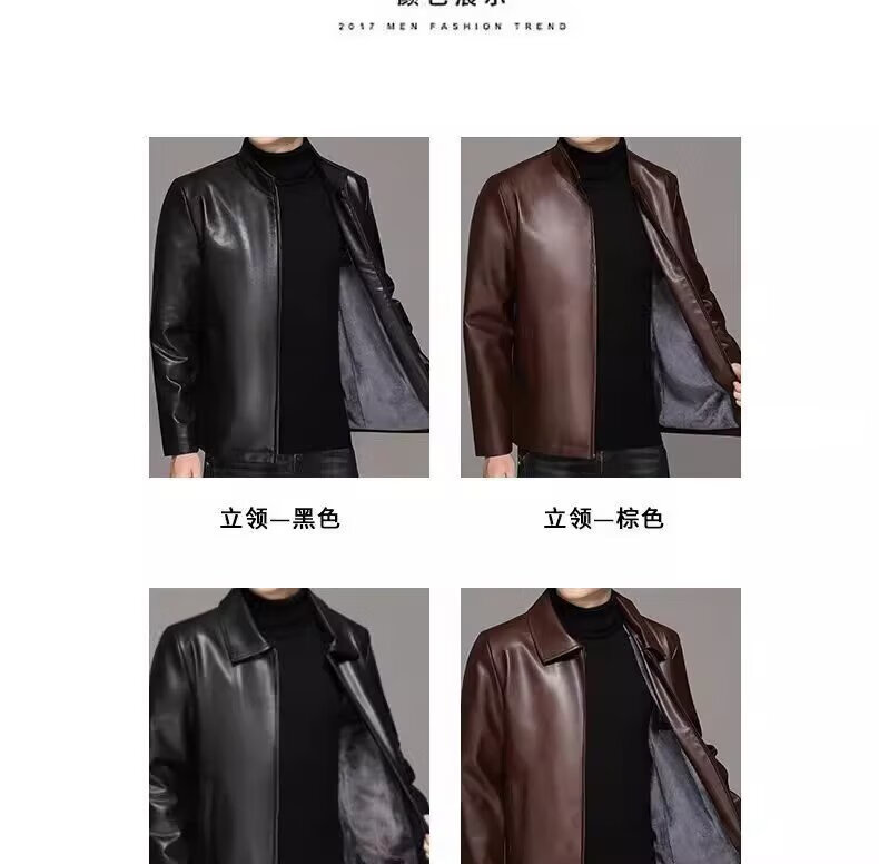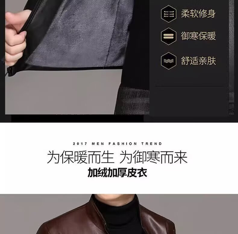 Middle-aged men's leather jacket plus velvet leather jacket men's casual loose large size leather jacket middle-aged and elderly dad wear black plus velvet M