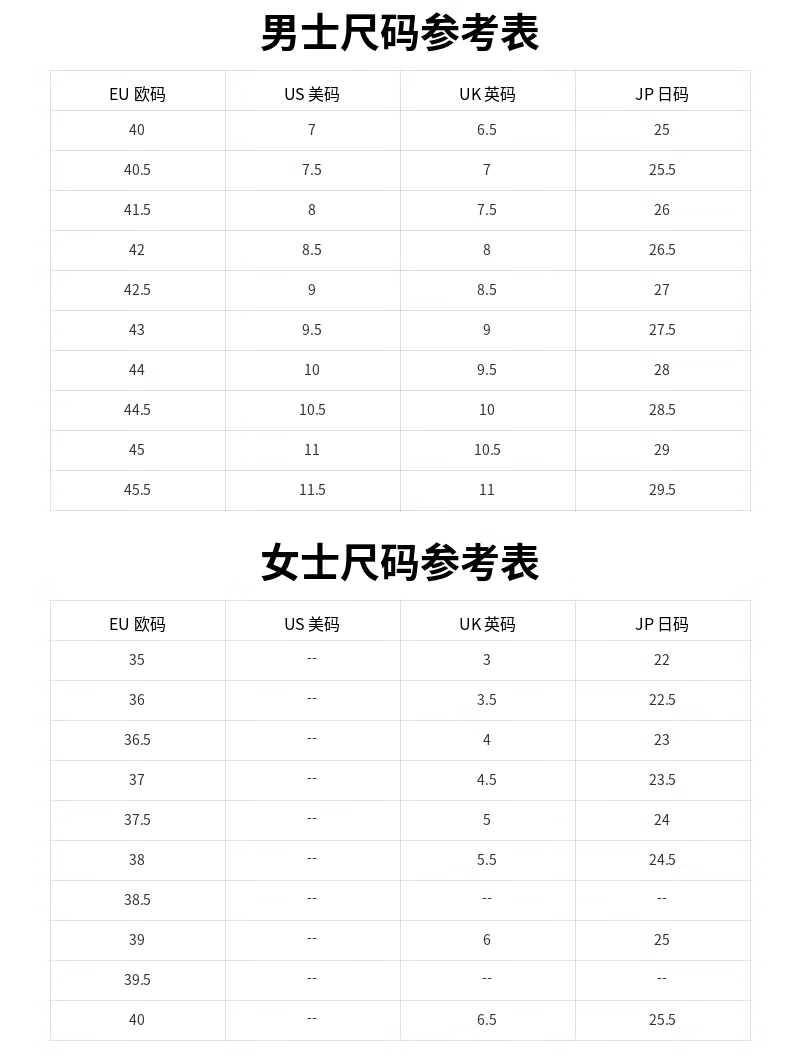 China (cm) 36 - 37 38 - 39 40 - 42 43 - 44 45 - 47