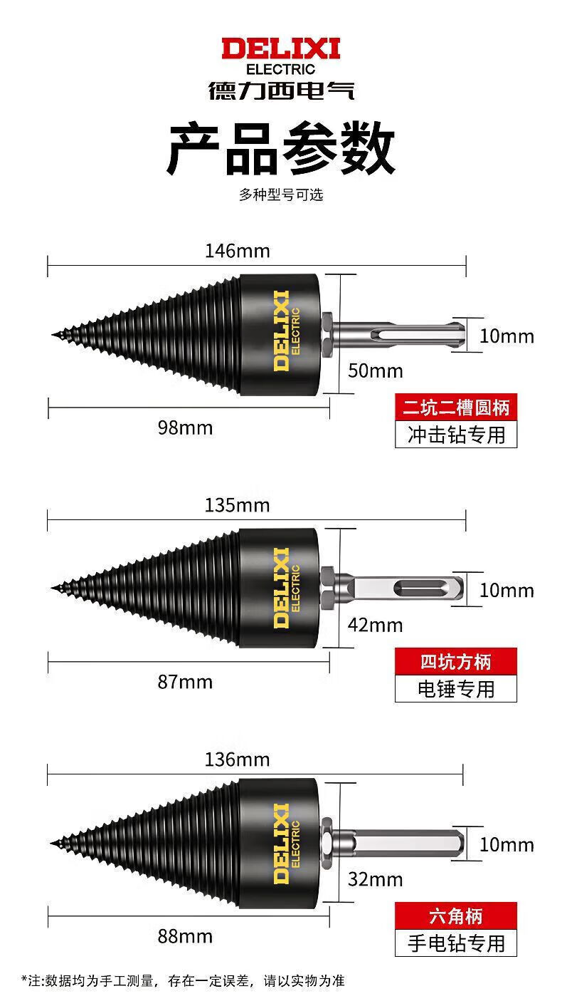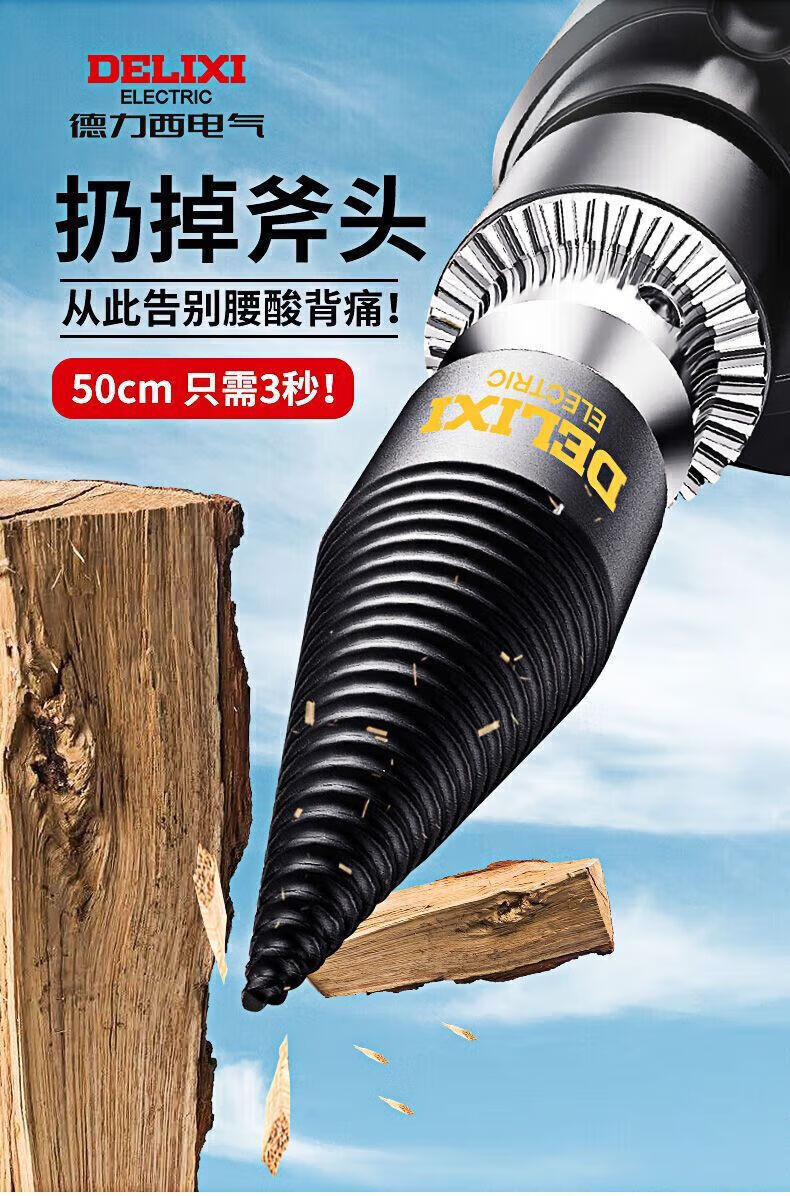 Delixi Electric household firewood splitting machine drill bit electric electric hammer super hard wood splitting cone sharp quenching flagship set 50mm + three kinds of posts