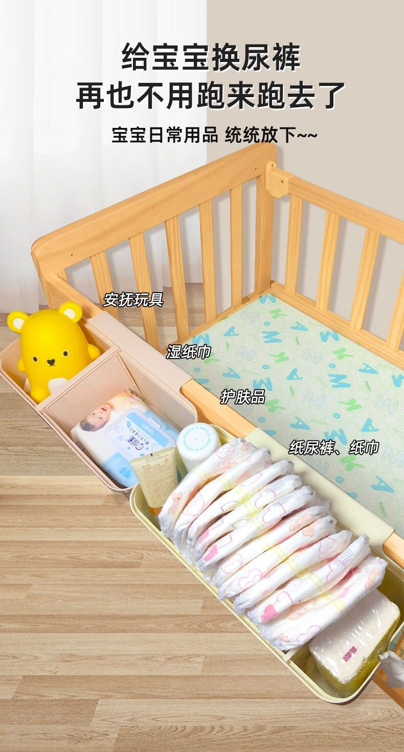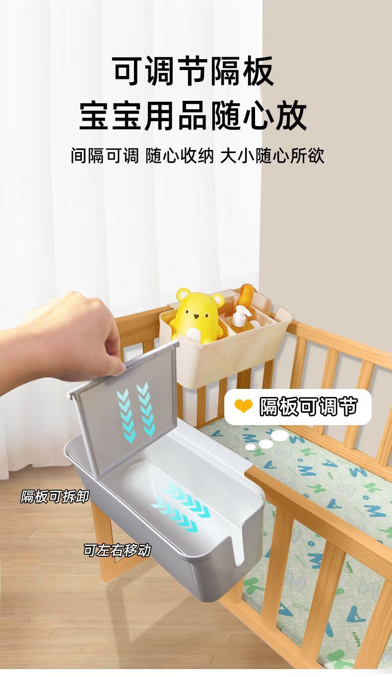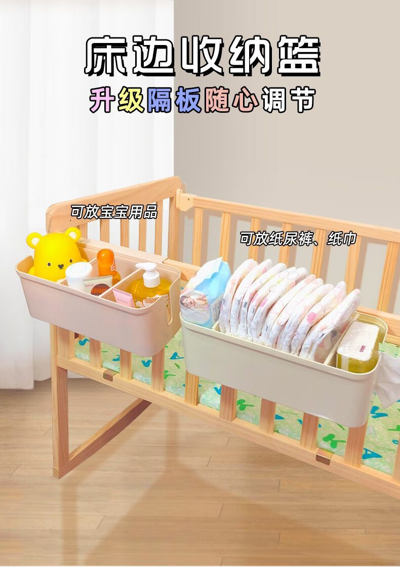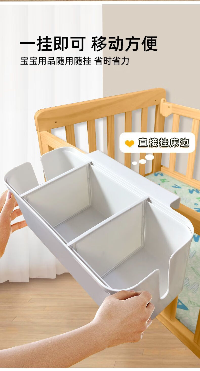 Dianhuai crib hanging storage hanging basket diaper bedside diaper storage bag dormitory bed hanging bag bed fence storage box cream white partition adjustable