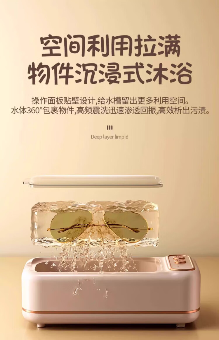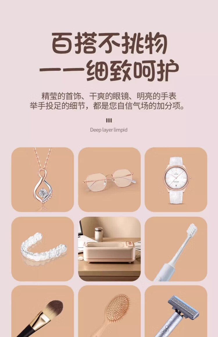 JCZS German Brand Fully Automatic Ultrasonic Cleaning Machine Fully Automatic Glasses Washing Machine Home Braces Multifunctional Jewelry Hand Black Free Glasses Cloth_1+Cleaning Liquid 1