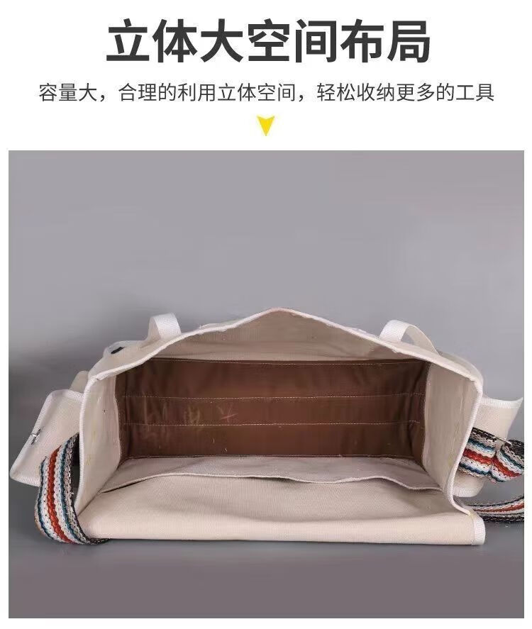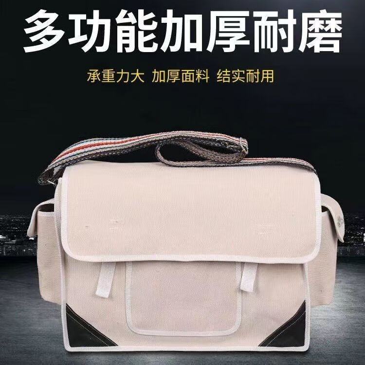 Vinoa construction site tool bag thickened canvas bag large capacity multifunctional water and electricity storage hardware tool bag wear-resistant and strong white large size 45.14.30 external size error 3 cm