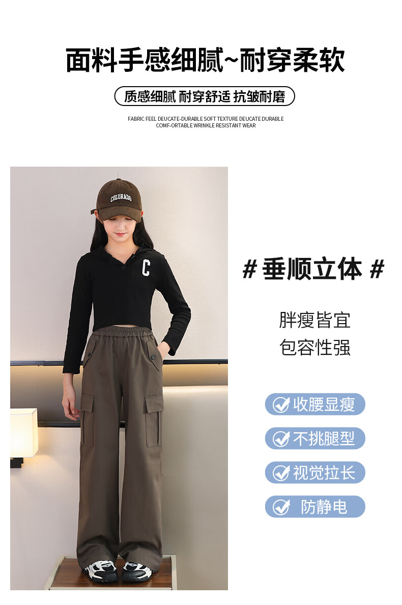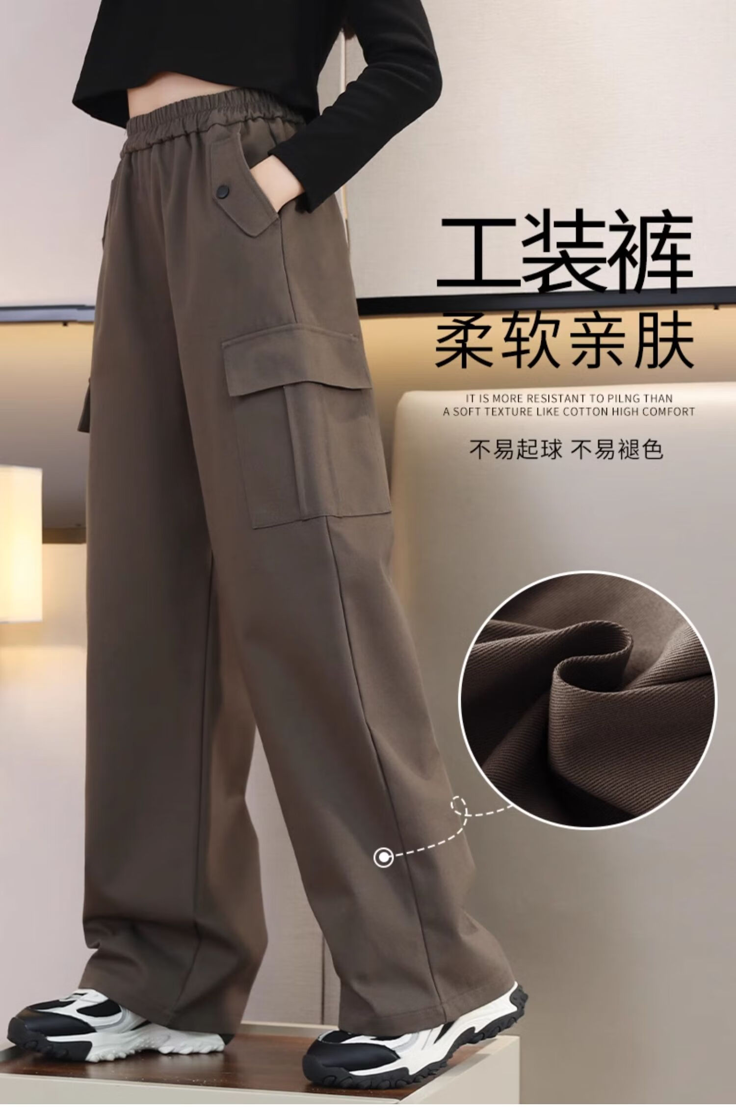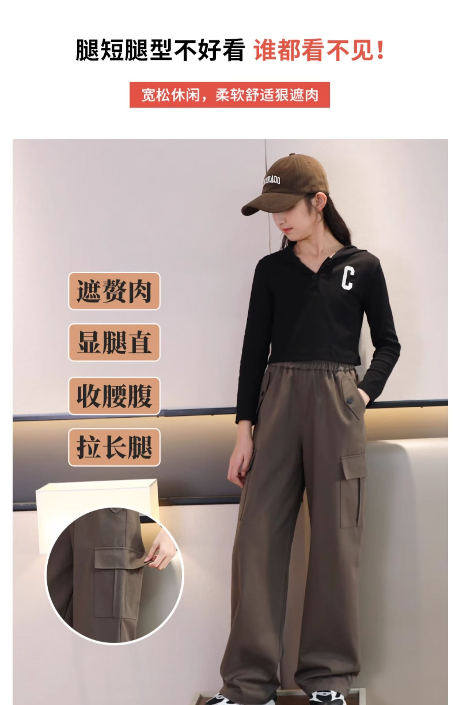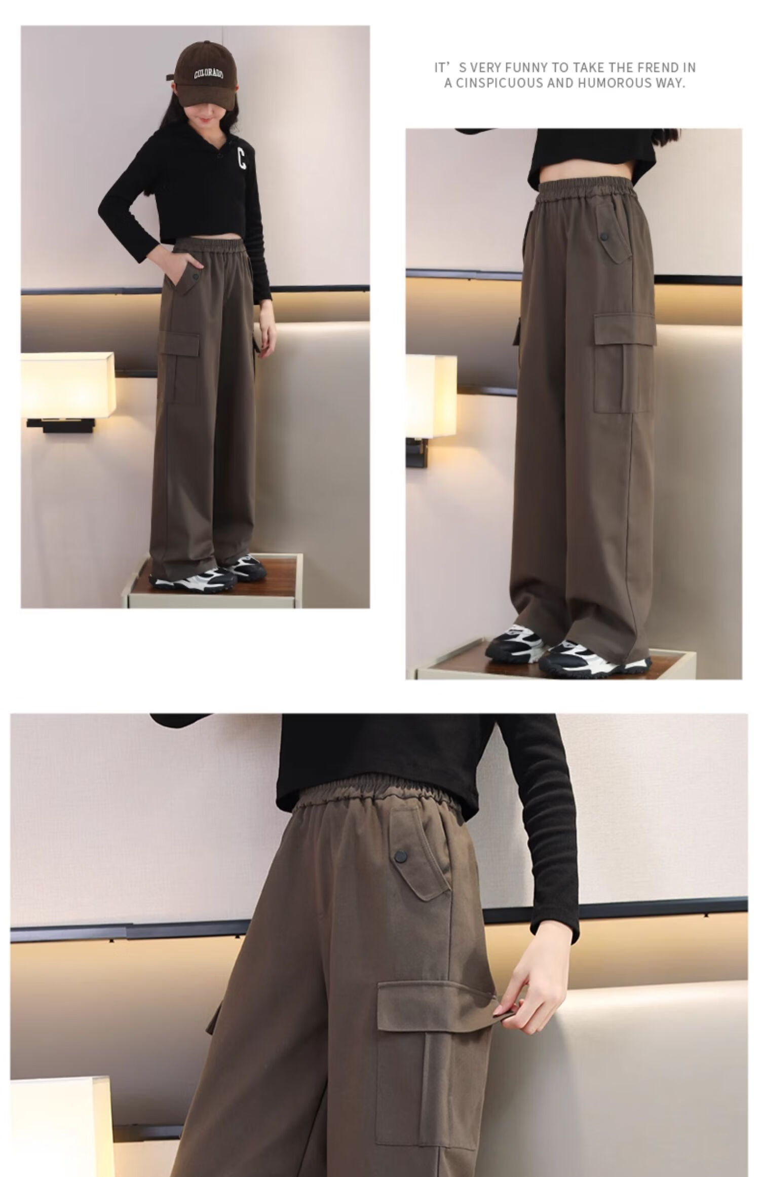 I.KARNOW girls overalls 2025 autumn and winter plus velvet girls straight pants medium and large children's wide leg pants casual trousers army green pure cotton 15063 military green + 15063 black (plus velvet) 170