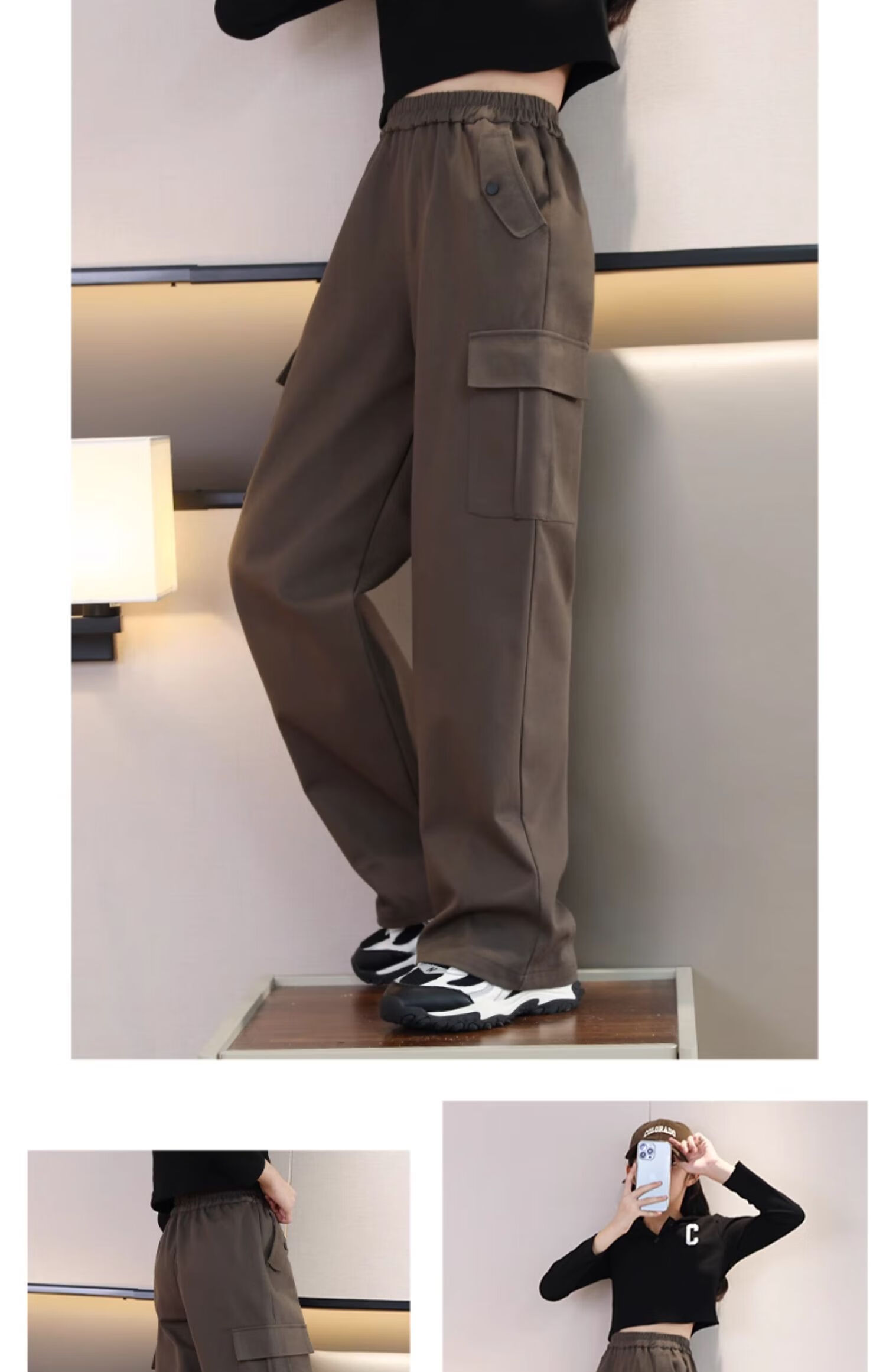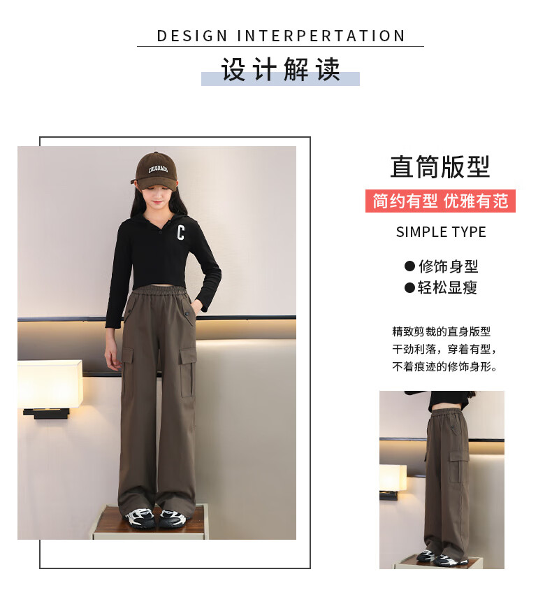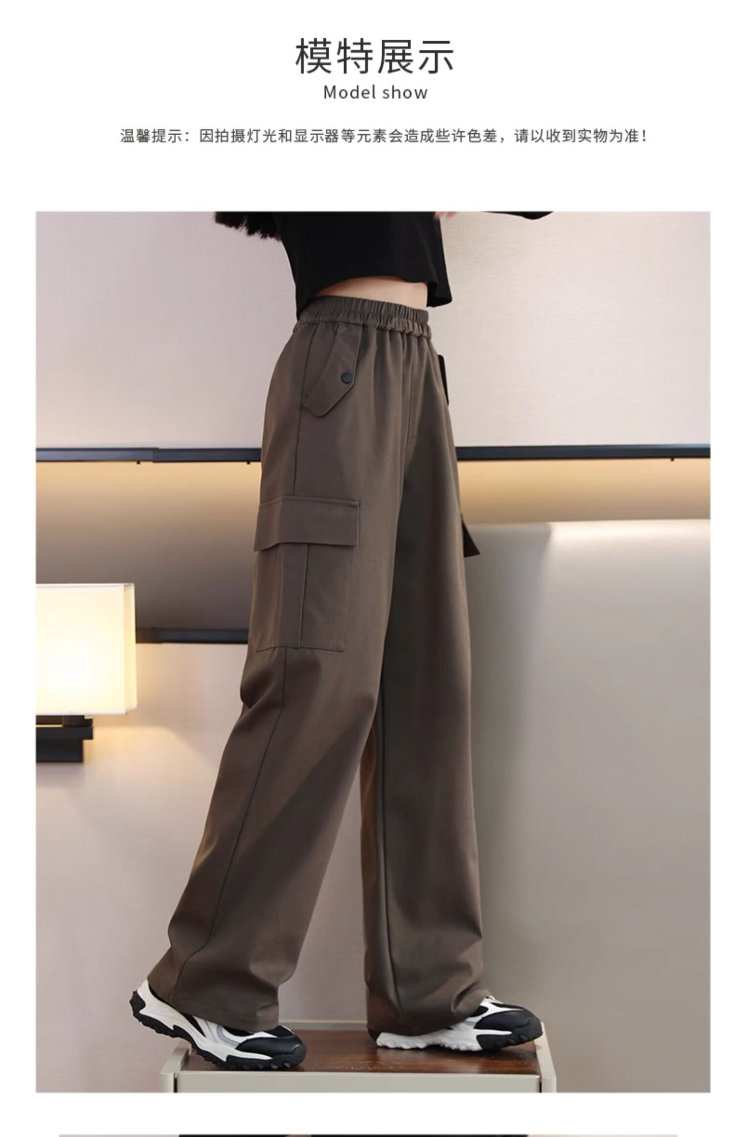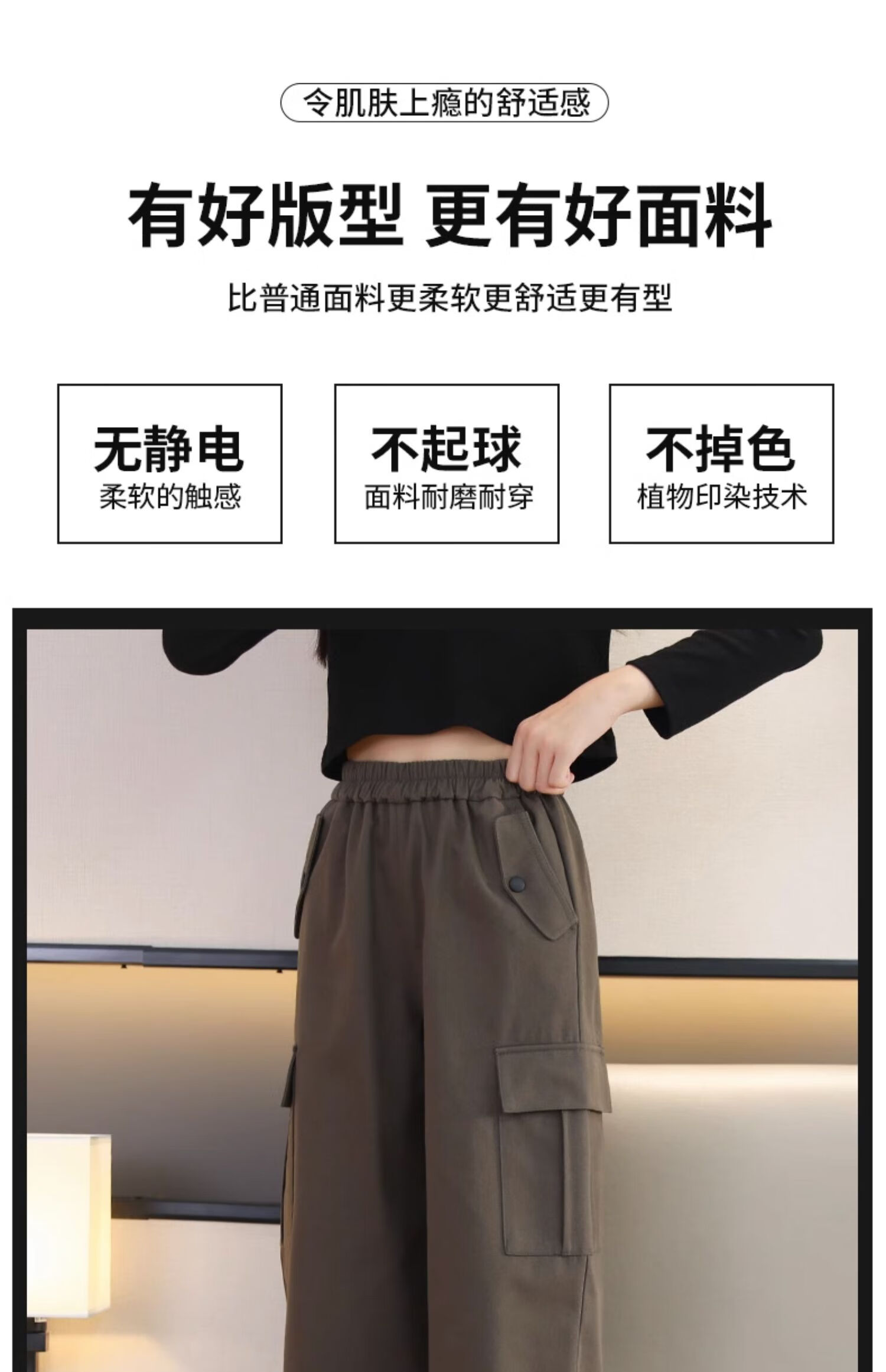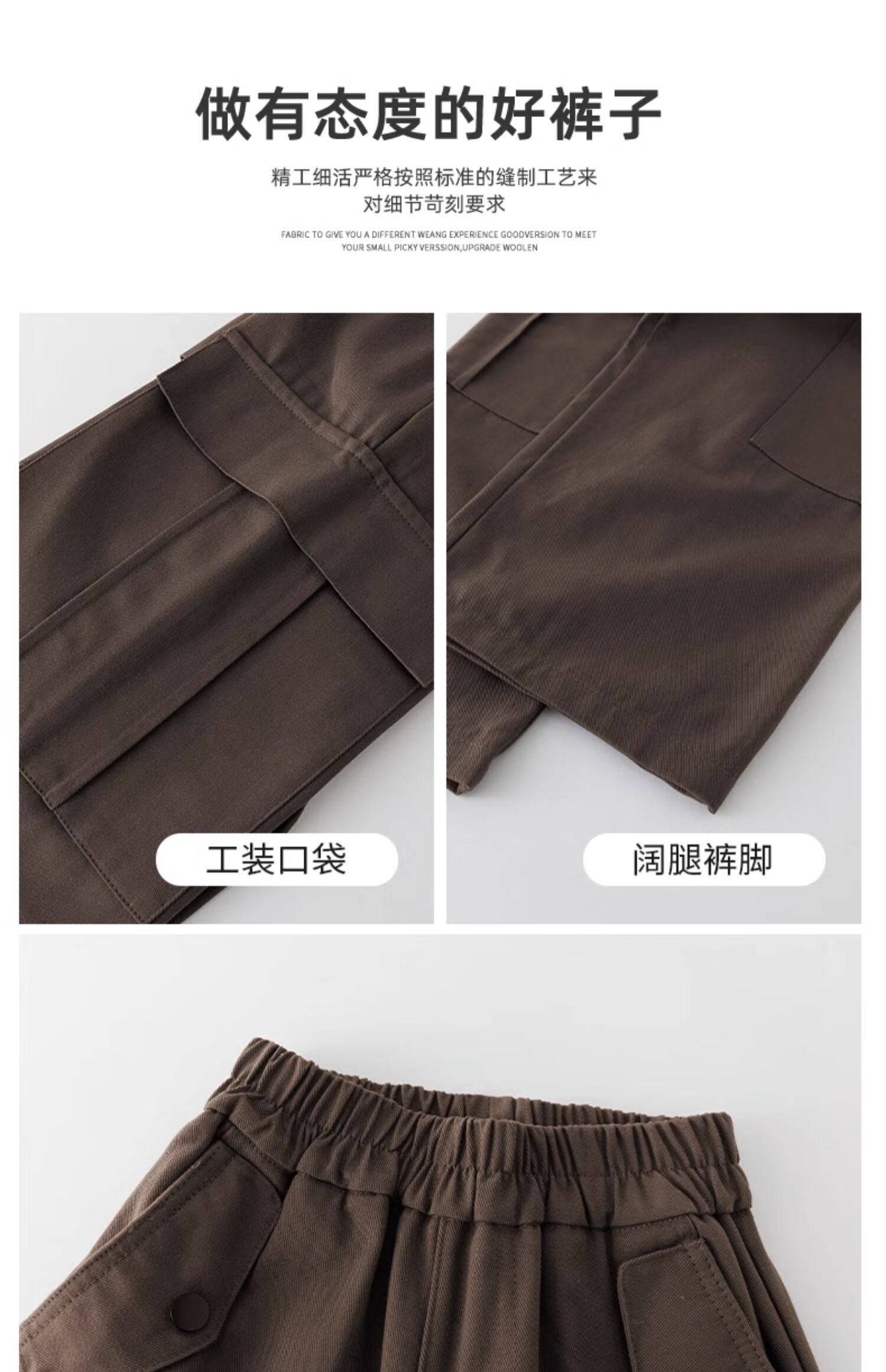 I.KARNOW girls overalls 2025 autumn and winter plus velvet girls straight pants medium and large children's wide leg pants casual trousers army green pure cotton 15063 military green + 15063 black (plus velvet) 170