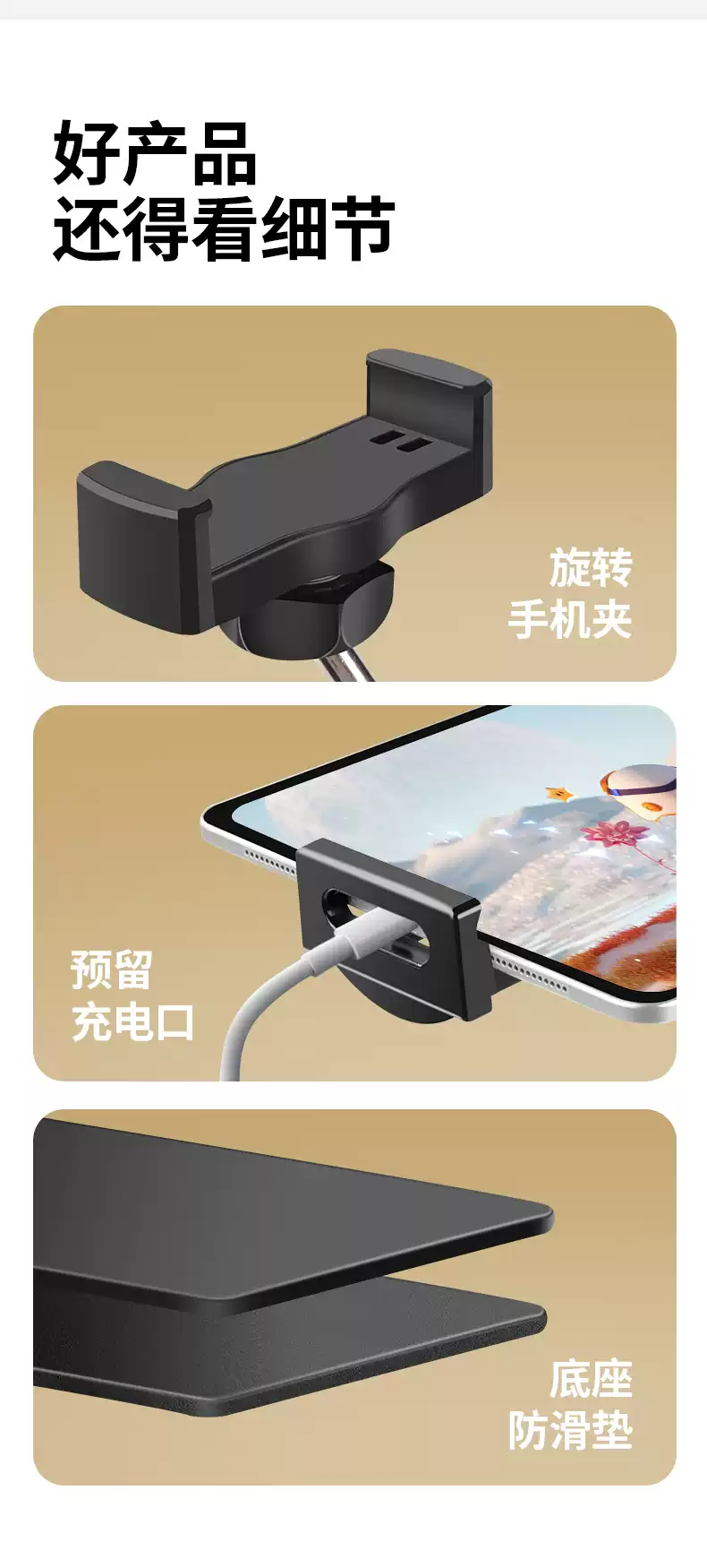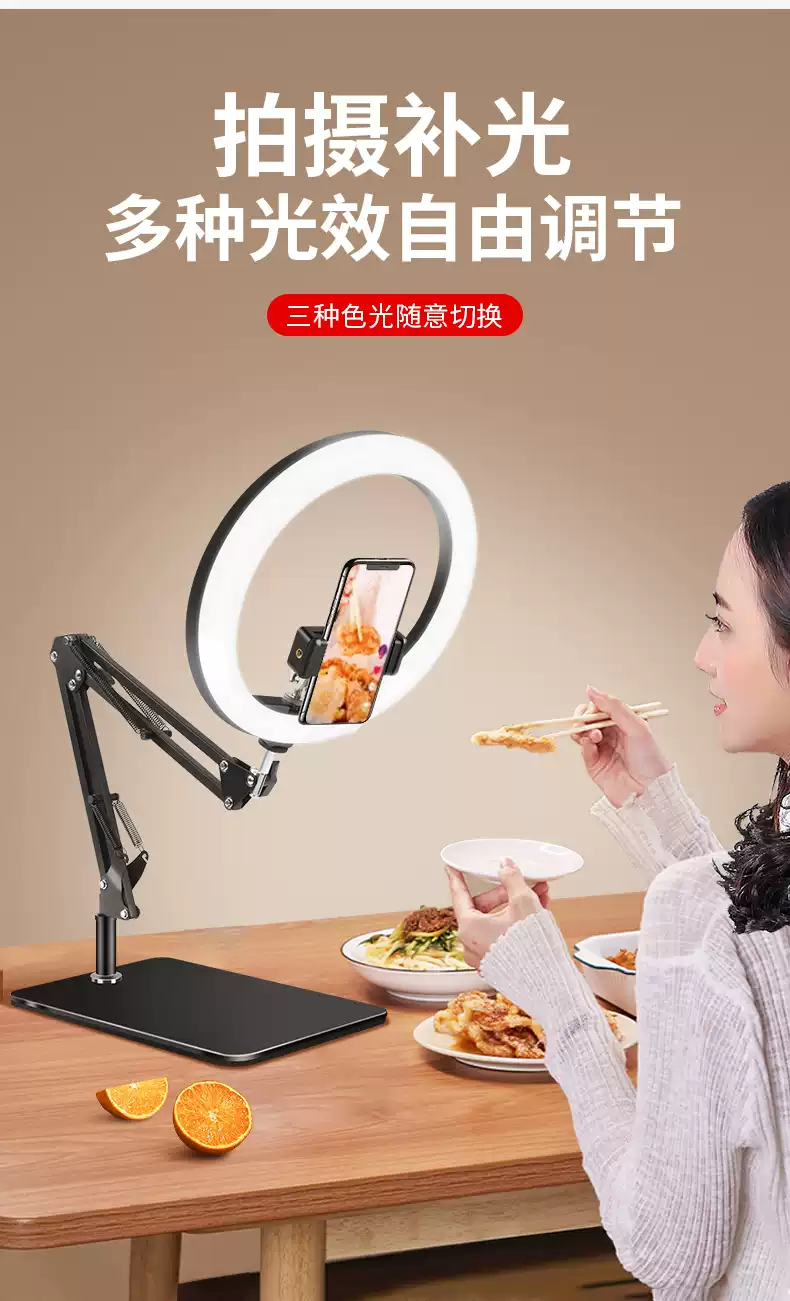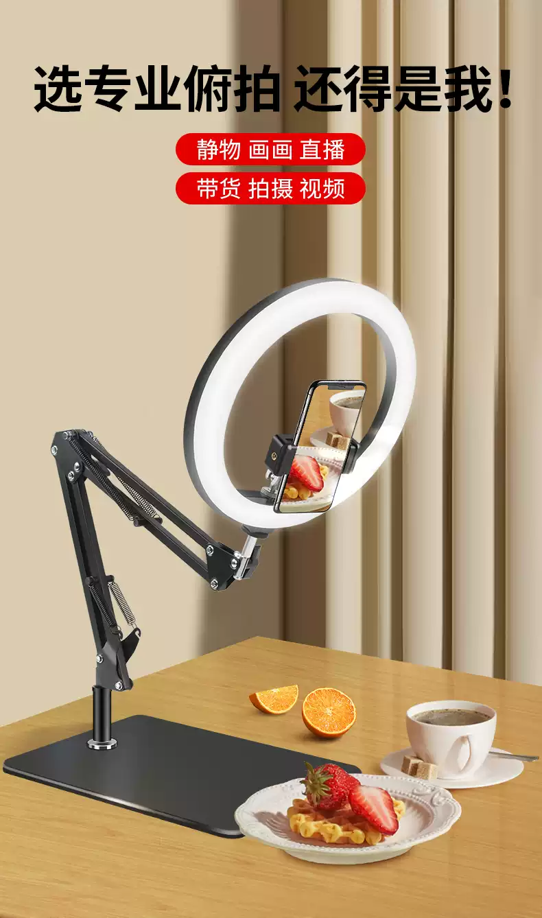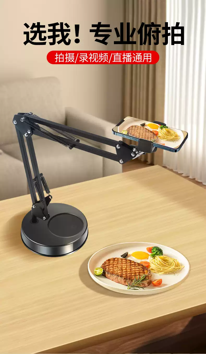 TKHE professional overhead shooting mobile phone holder desktop live broadcast selfie stick tripod for shooting food and recording video artifact special for online classes unboxing vlog teacher calligraphy overhead shooting with supplement conventional disc base + cantilever overhead shooting bracket