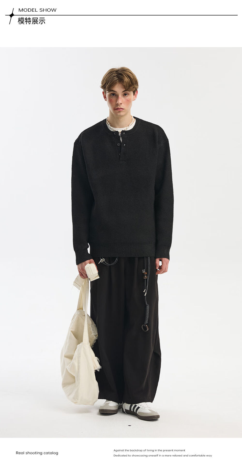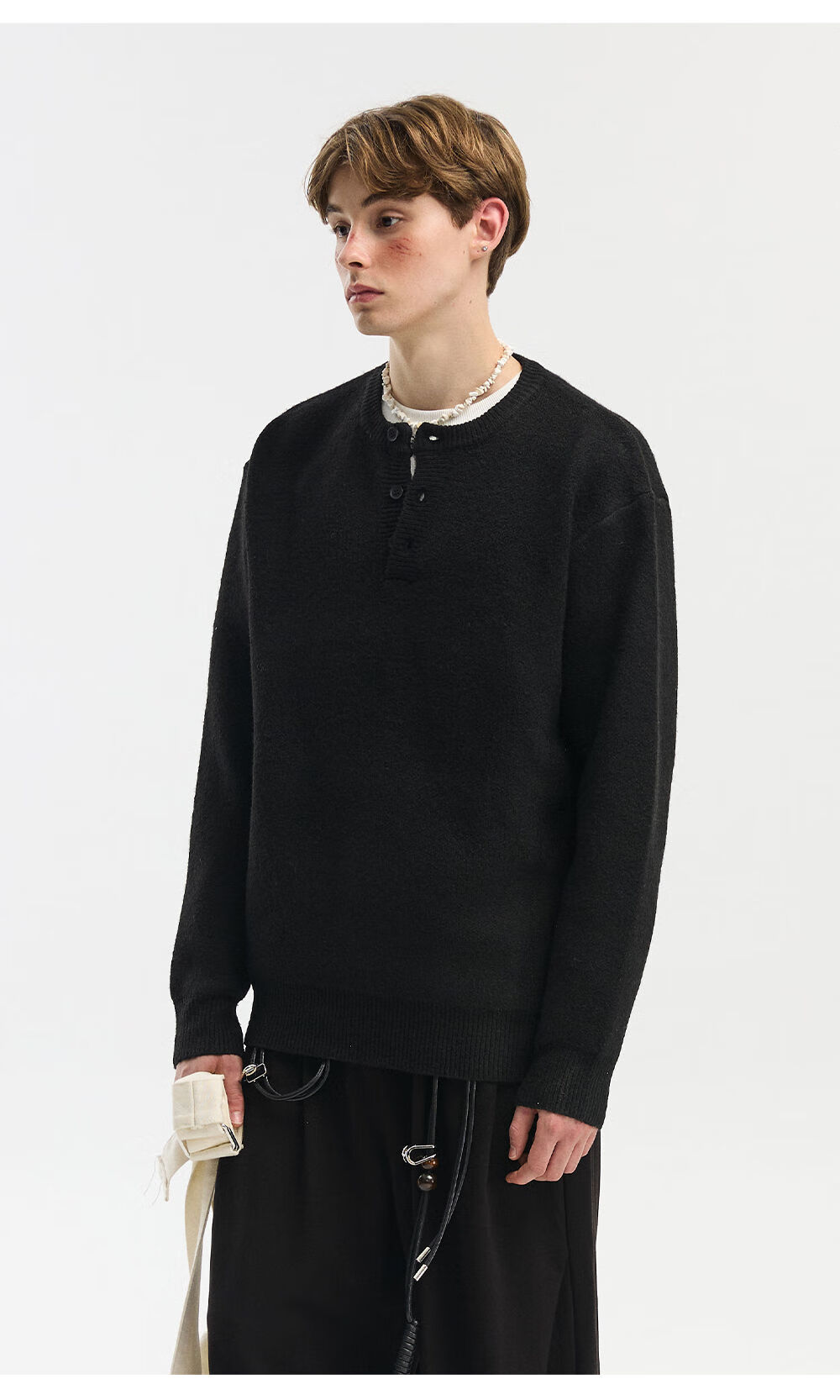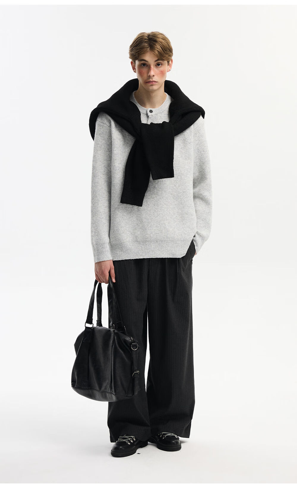 NEVERNEED Henry collar pullover men's autumn and winter American lazy style sheep wool sweater jacket light gray M M