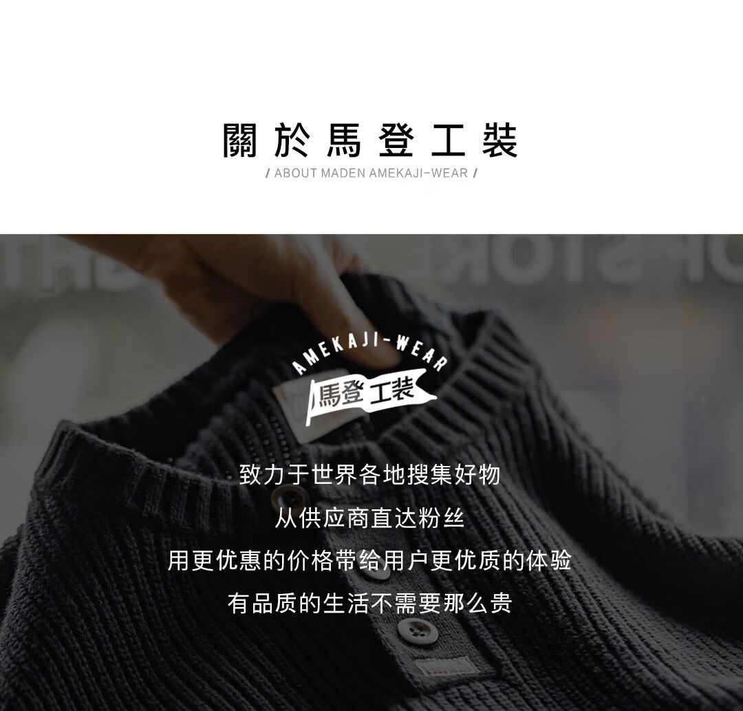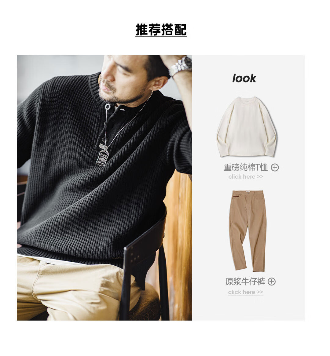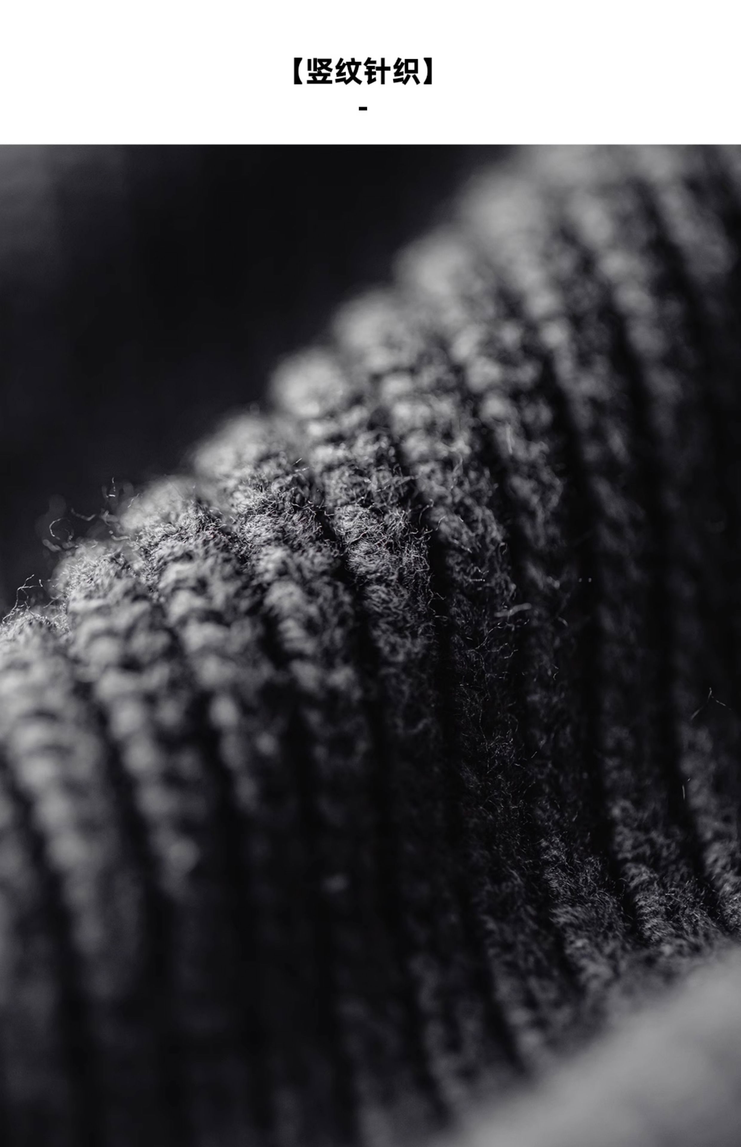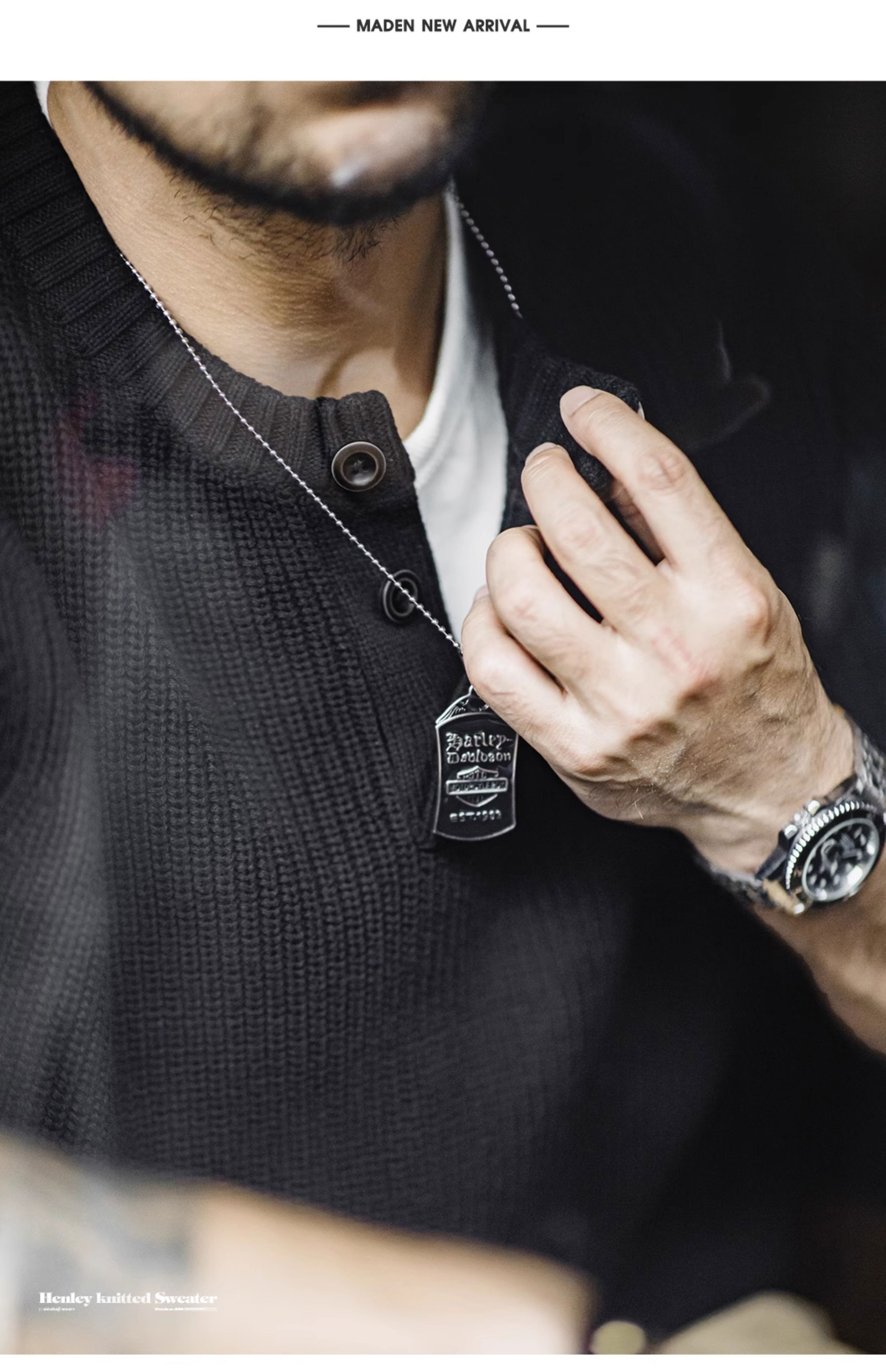 Workwear American retro vertical striped Henry collar sweater loose thickened black bottoming sweater for men autumn and winter black M M