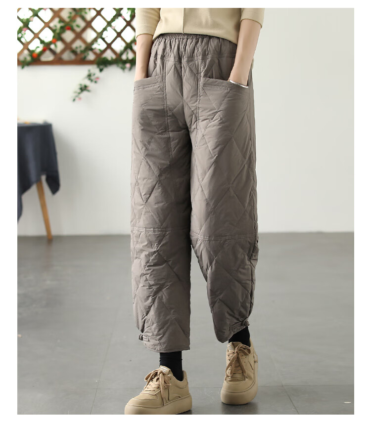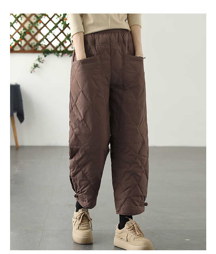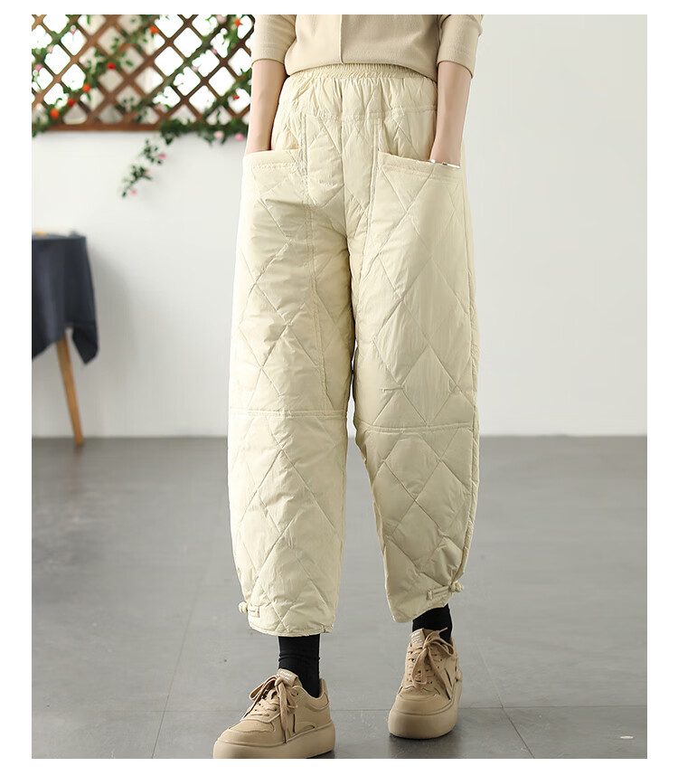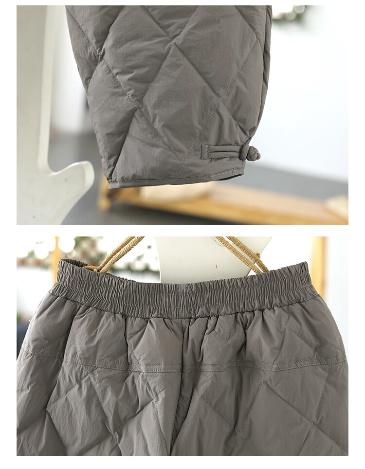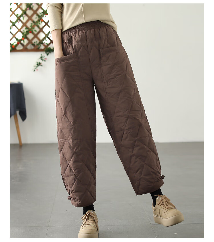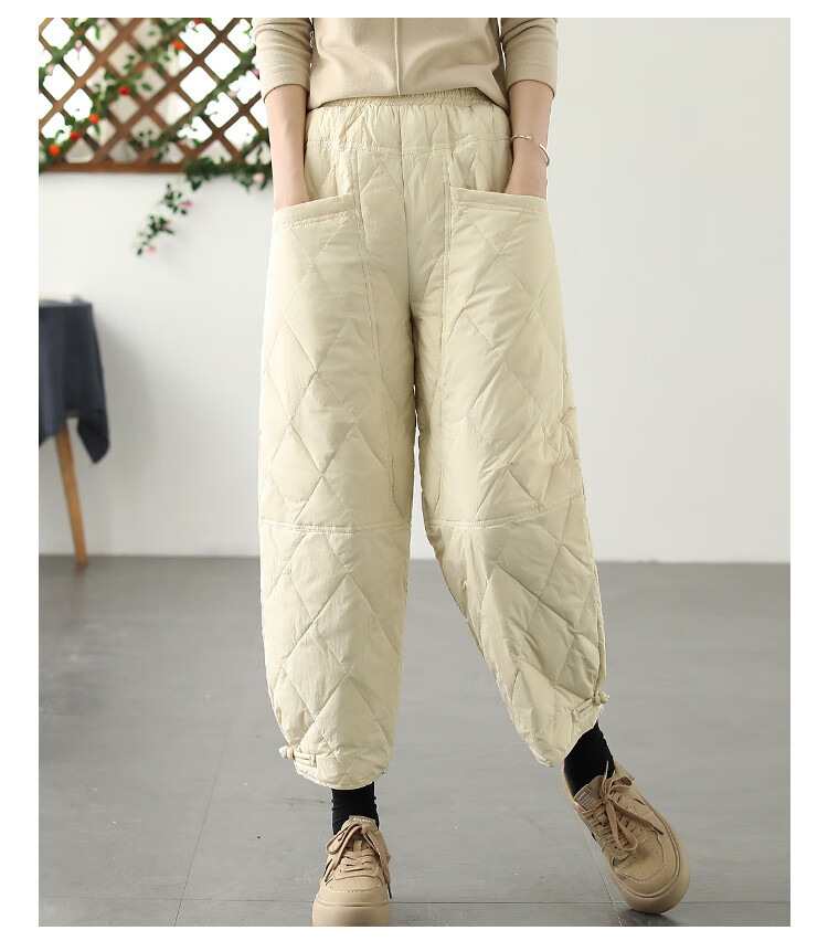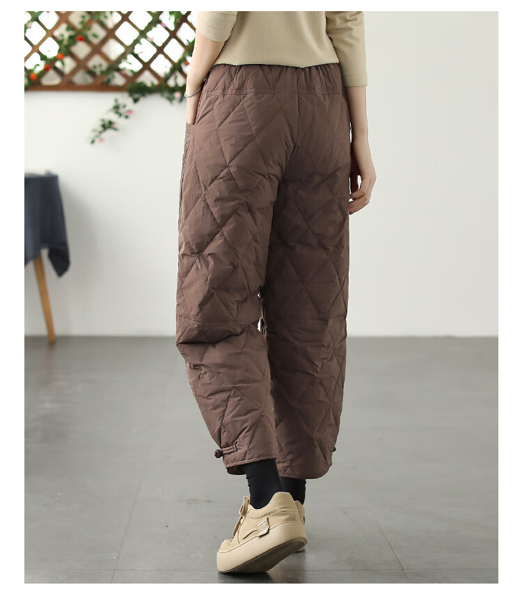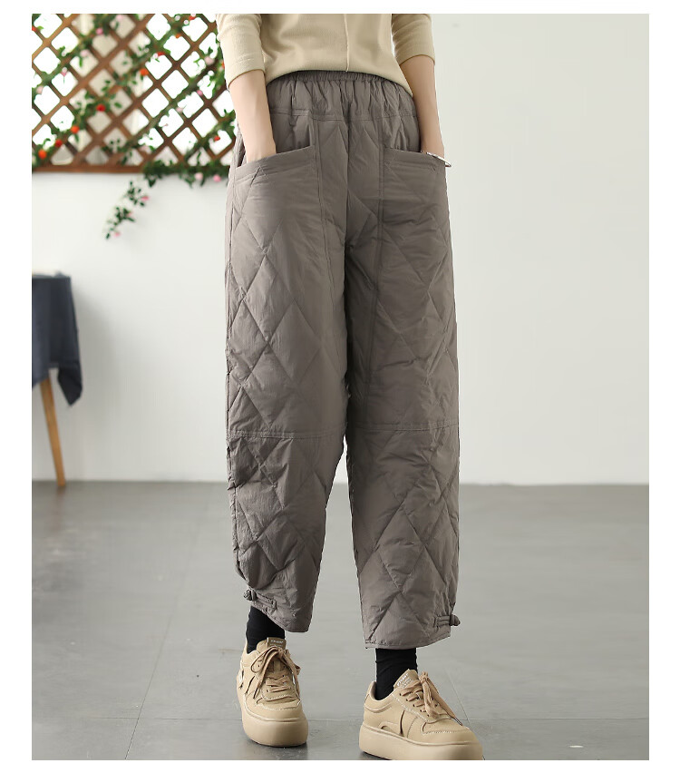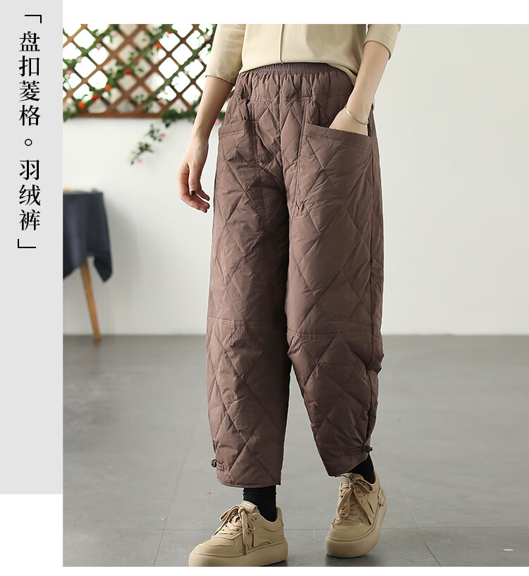 Pierre Cardin 2026 new solid color diamond white duck down buckle casual cotton pants for women thickened warm down pants for women's winter outer wear coffee color L recommended 140Jin Jin equal to within 0.5 kg