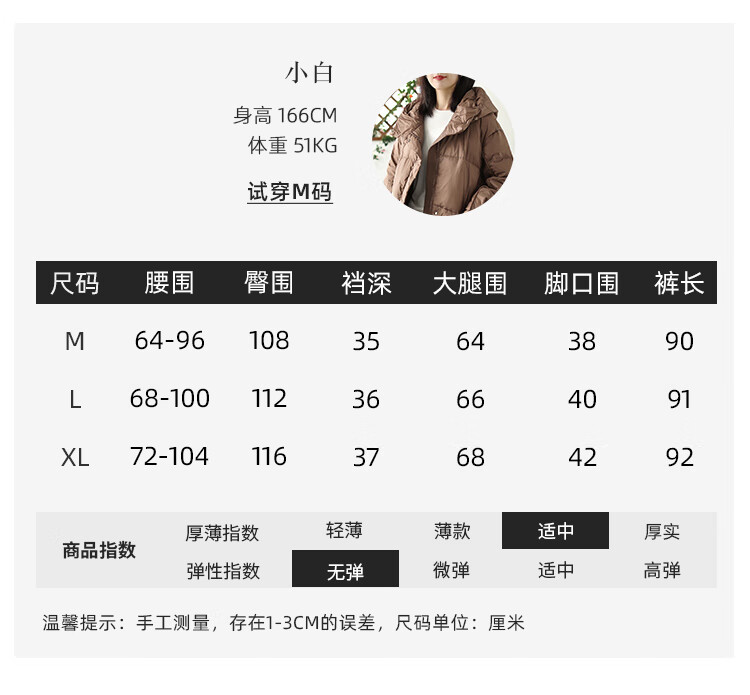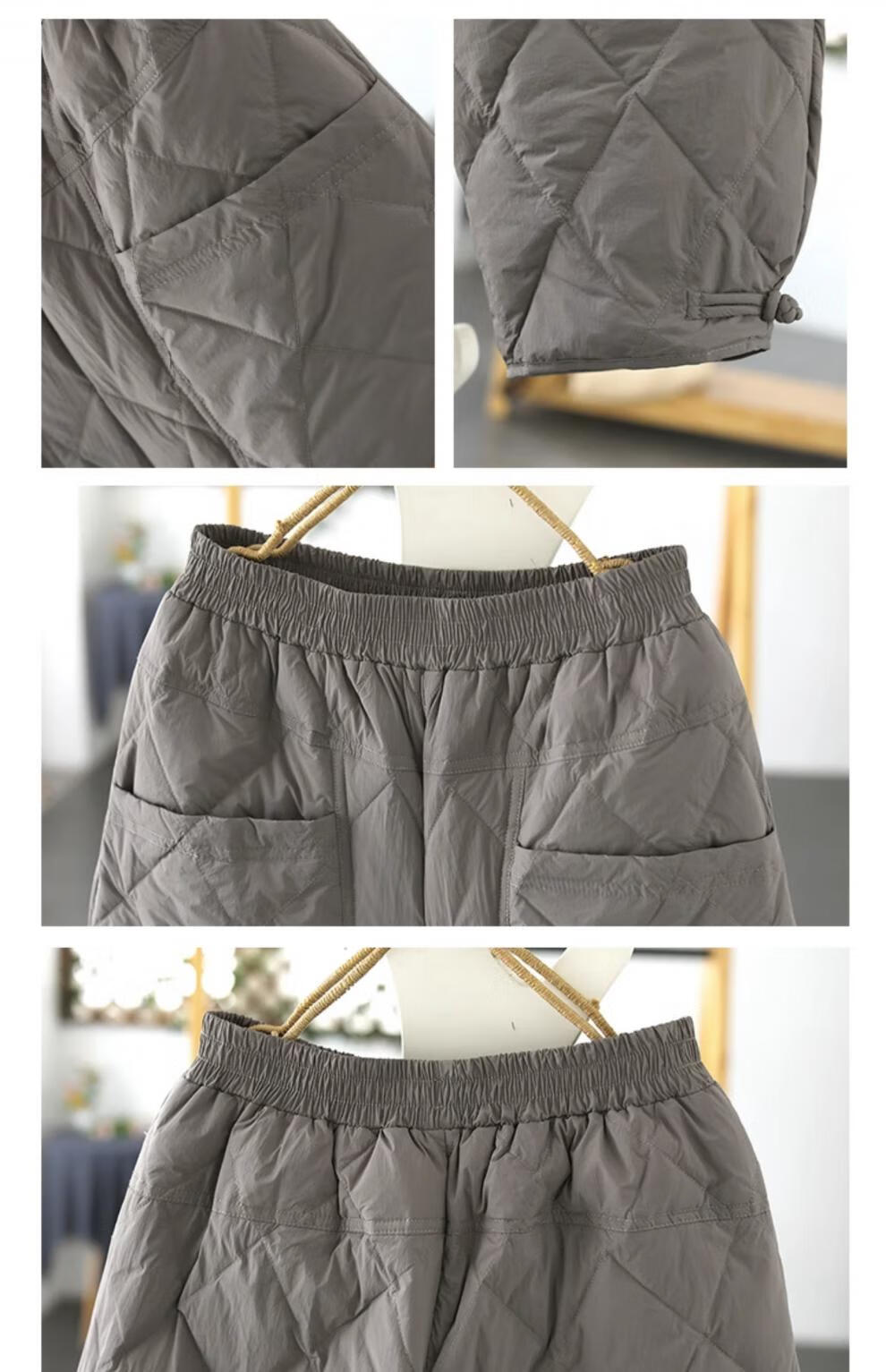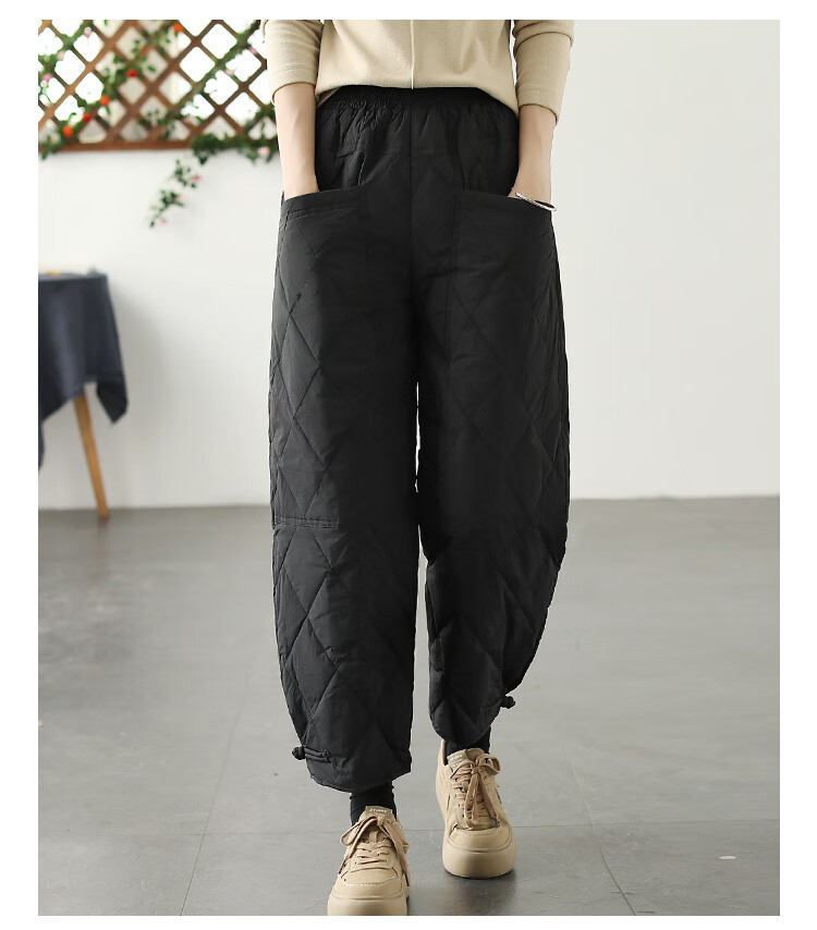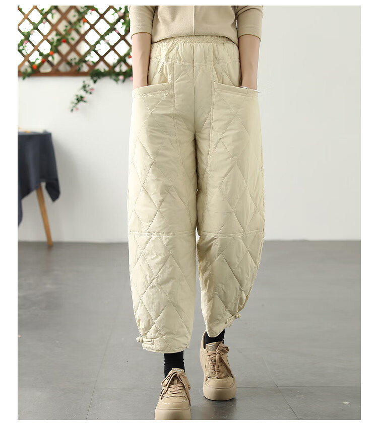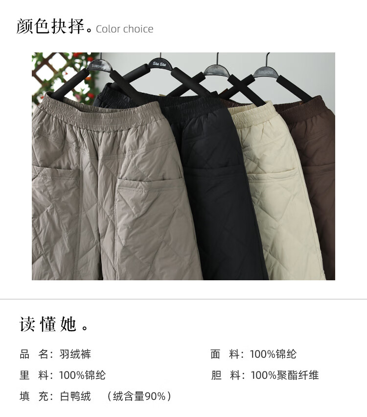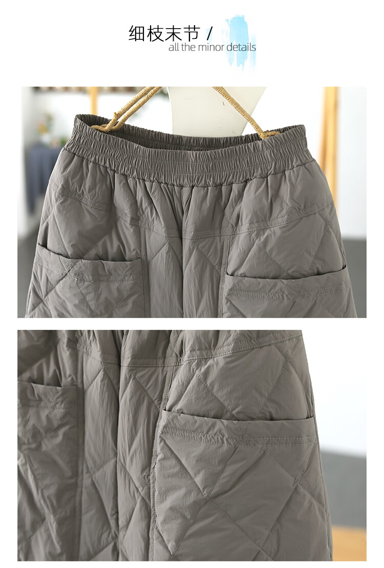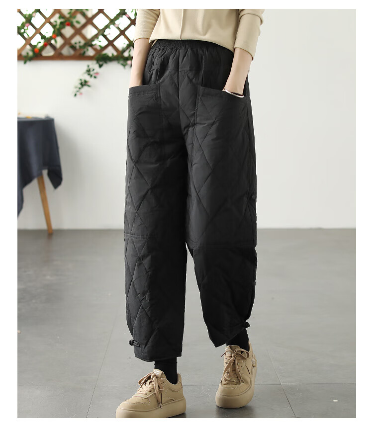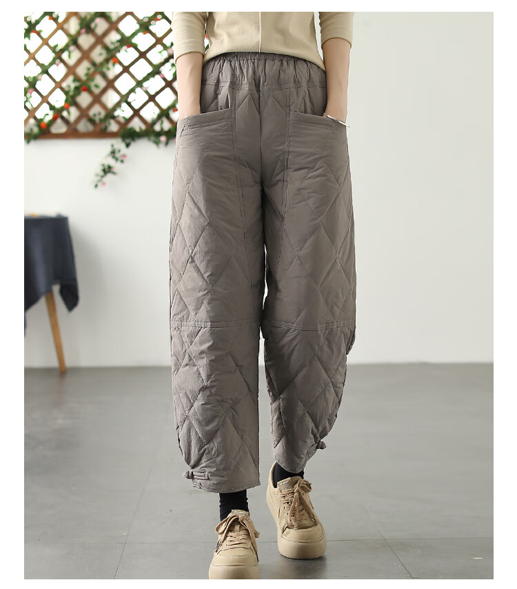 Pierre Cardin 2026 new solid color diamond white duck down buckle casual cotton pants for women thickened warm down pants for women's winter outer wear coffee color L recommended 140Jin Jin equal to within 0.5 kg