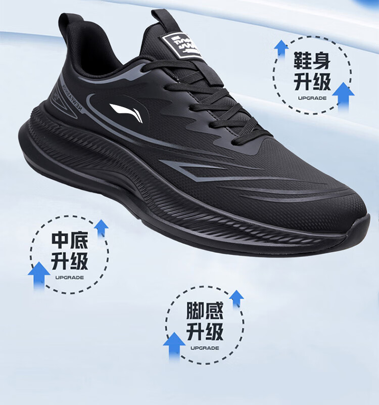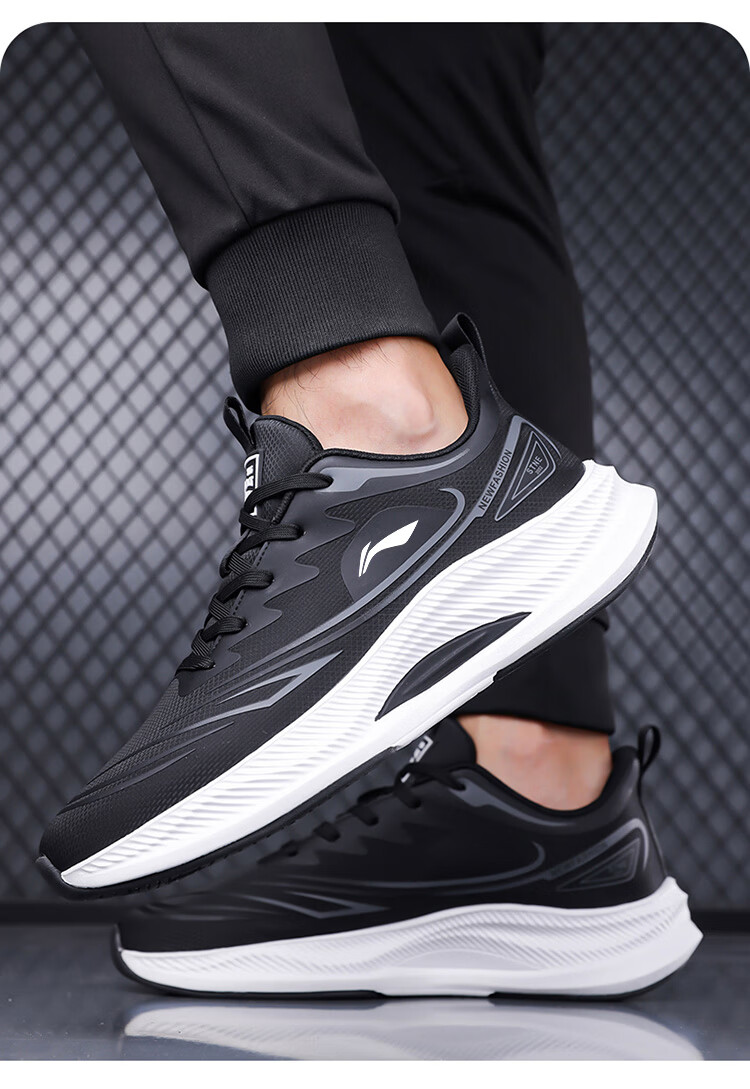 LI-NING 1990 Li Ning men's shoes 2025 autumn and winter new leather shock-absorbing wear-resistant lightweight running shoes casual non-slip soft-soled sports shoes LN leather-8521 black and white 41