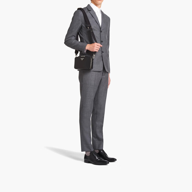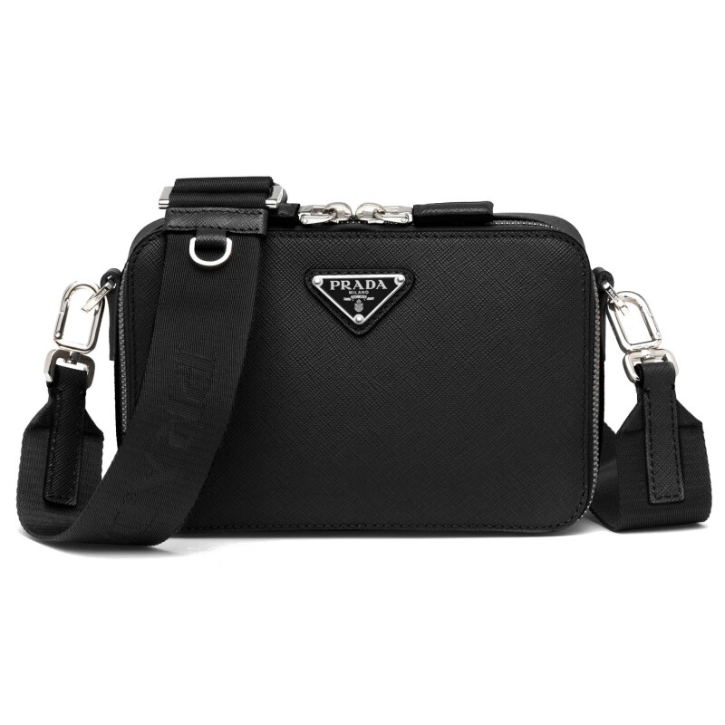 PRADA Brique Saffiano leather handbag shoulder bag men's black basic outfit (bag + dust bag)