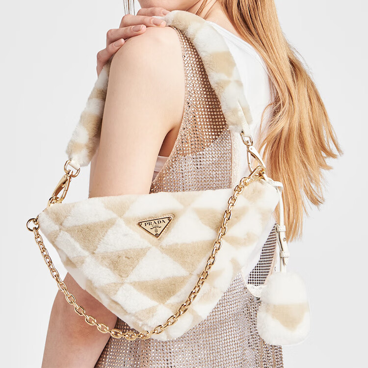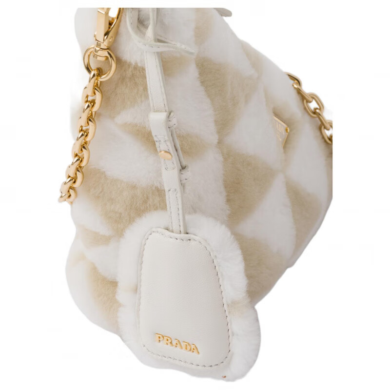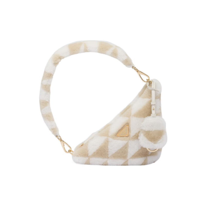 PRADA Triangular Logo Gold Open Shearling and Leather Hand Shoulder Bag Mini Women's Beige/White Basic Pack (Bag + Dust Bag)
