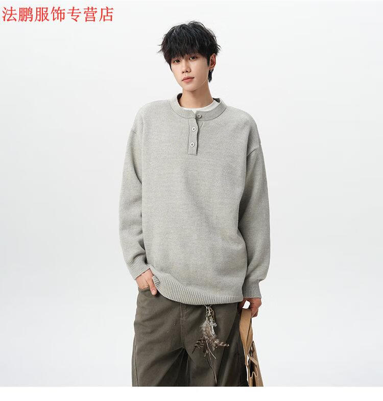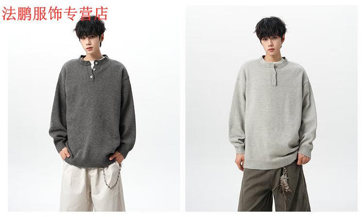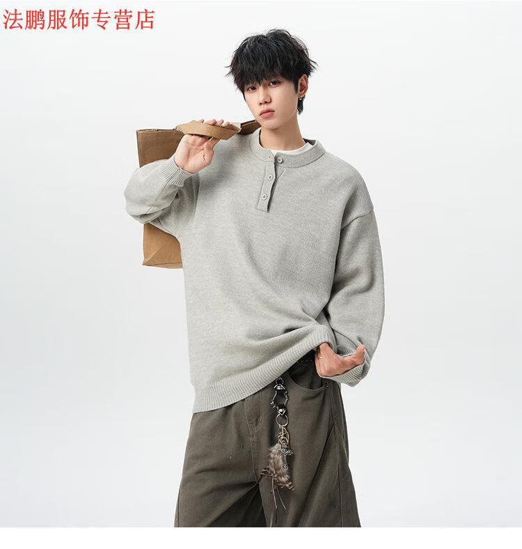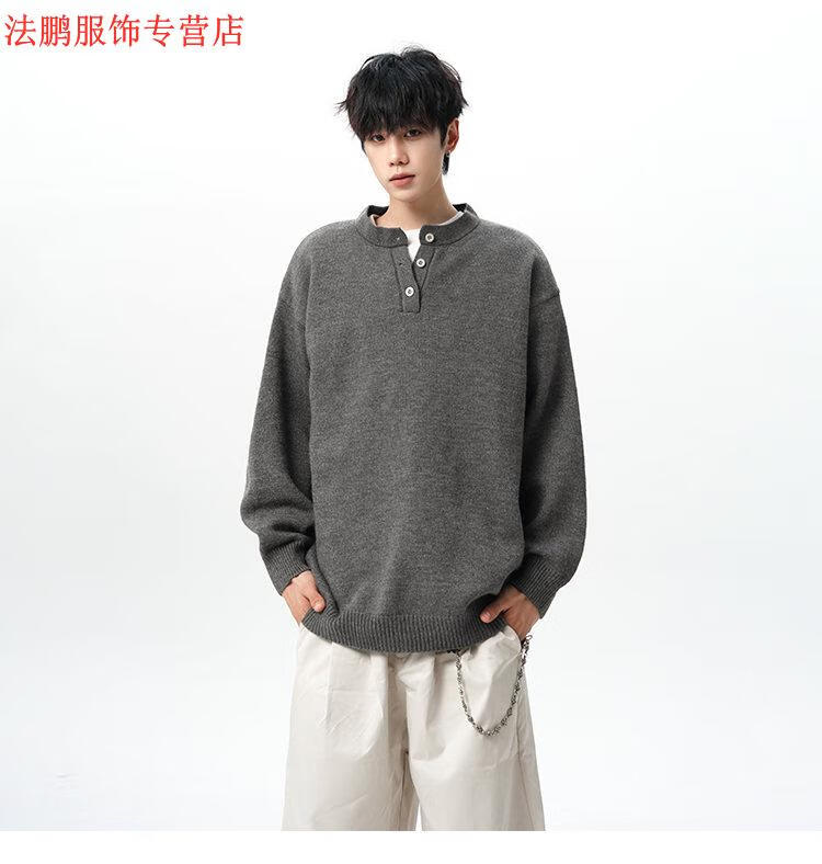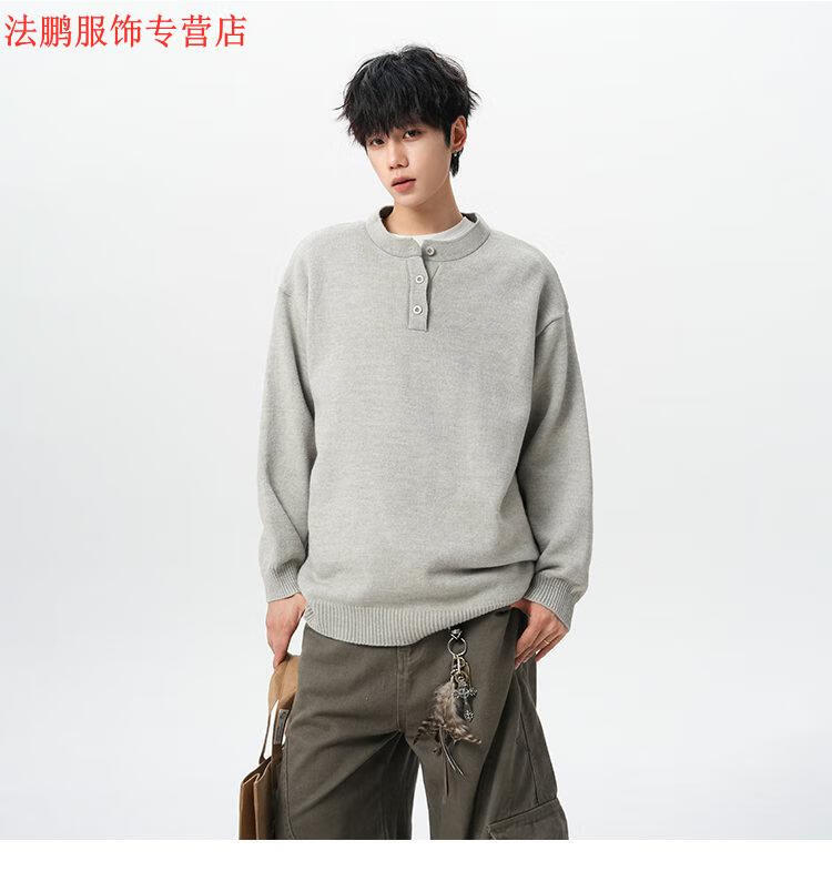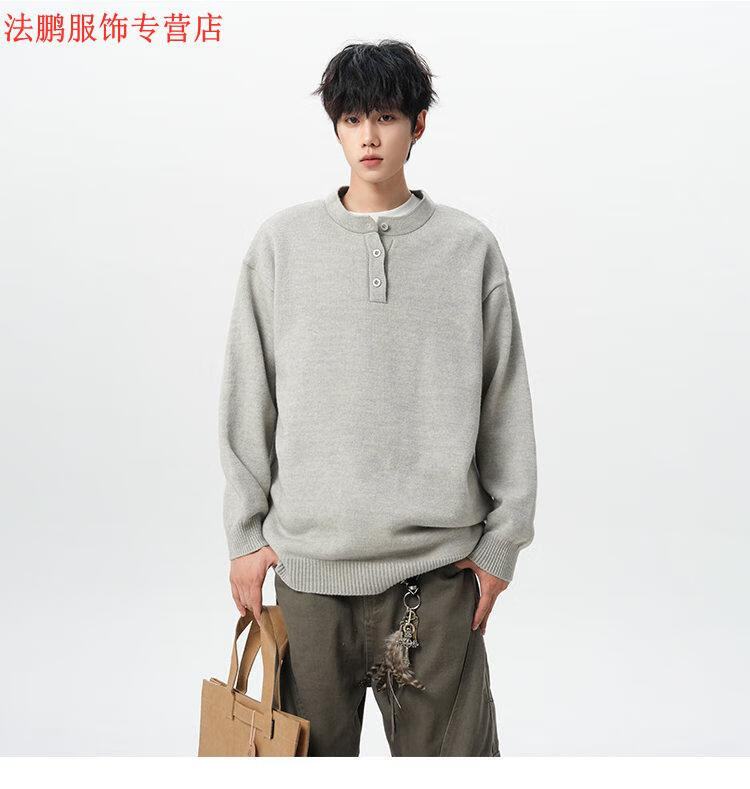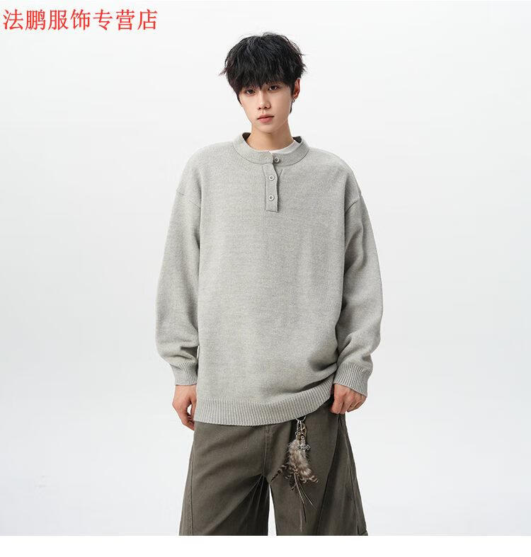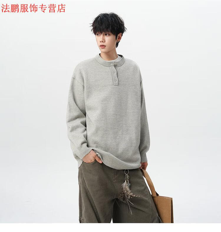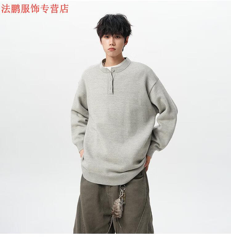 Carew micro Henry collar sweater men's large size student outdoor loose lazy style knitted sweater with warm base layer for men light gray M