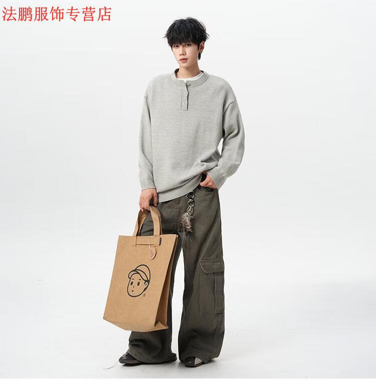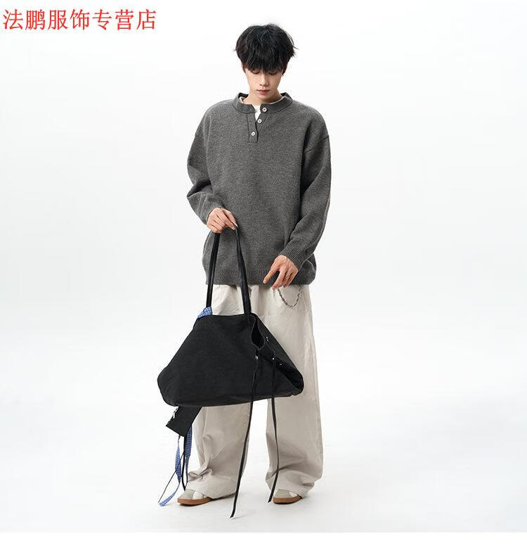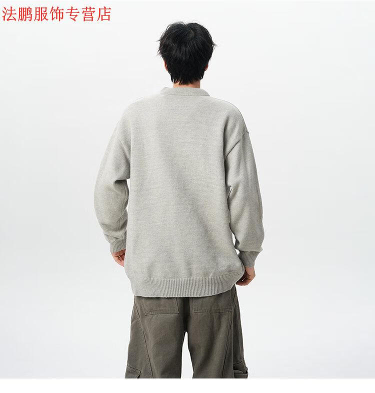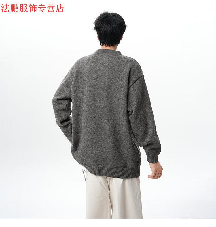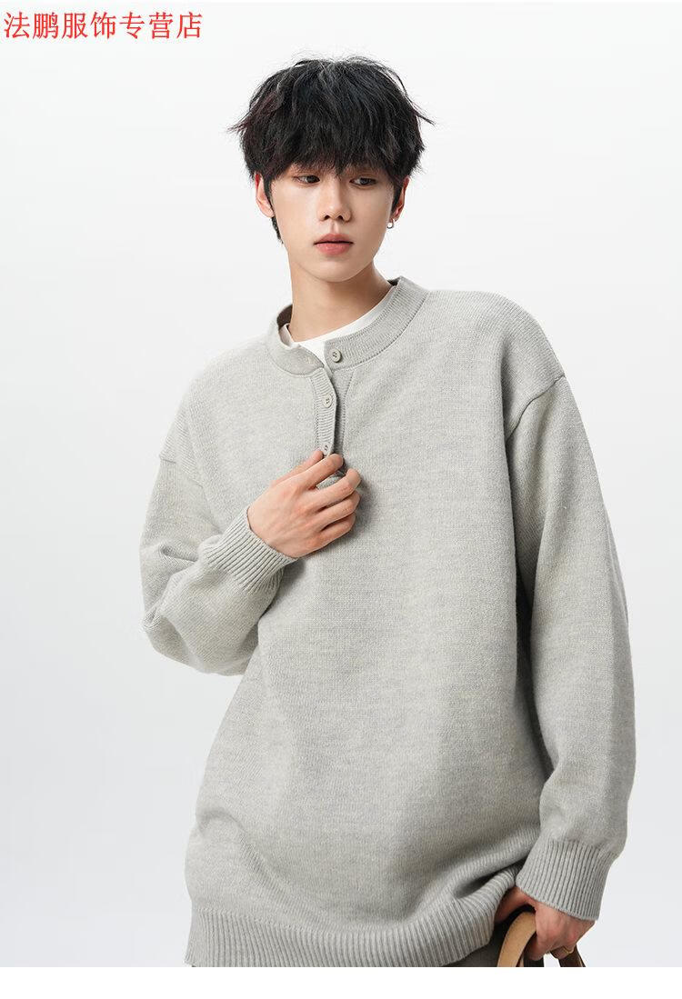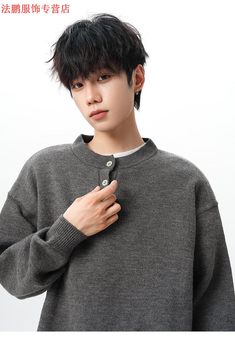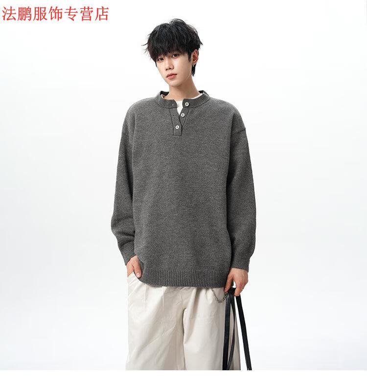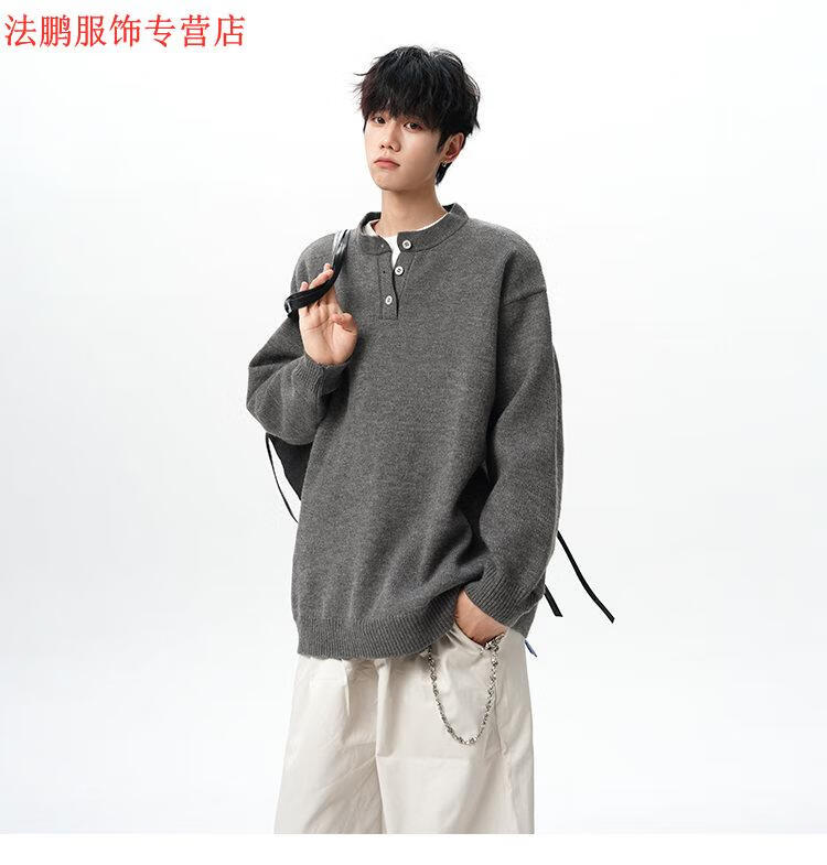 Carew micro Henry collar sweater men's large size student outdoor loose lazy style knitted sweater with warm base layer for men light gray M