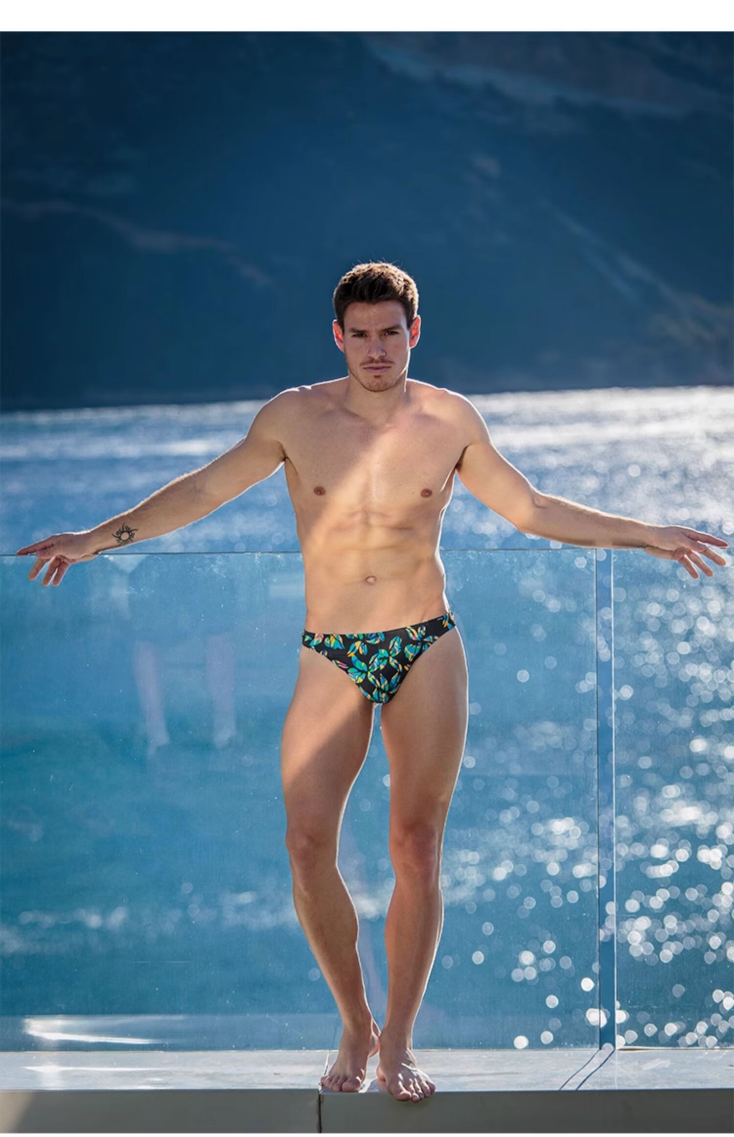 French men's sexy thong mid-low-waist skin-friendly fashionable design seamless single-butt comfortable men's underwear white print S