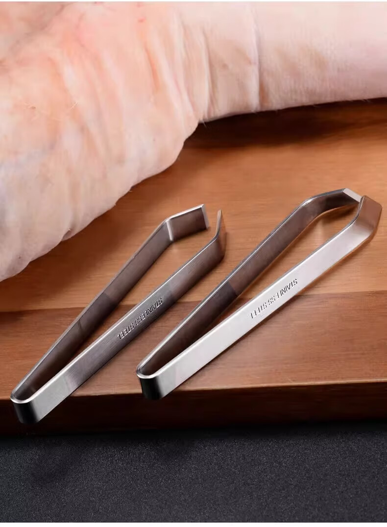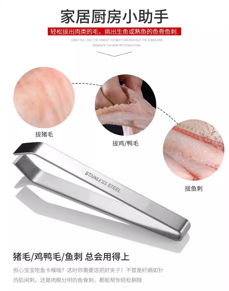 Fat Donglai's same style pig hair clip plucker, pig hair pliers, chicken feathers, duck feathers, fish bone pliers, beard tweezers, kitchen stainless steel 1 piece, thickened oblique stainless steel garlic peeler