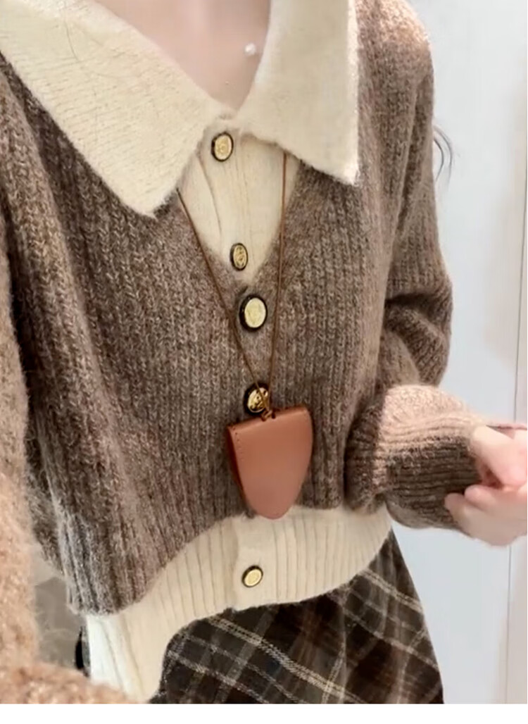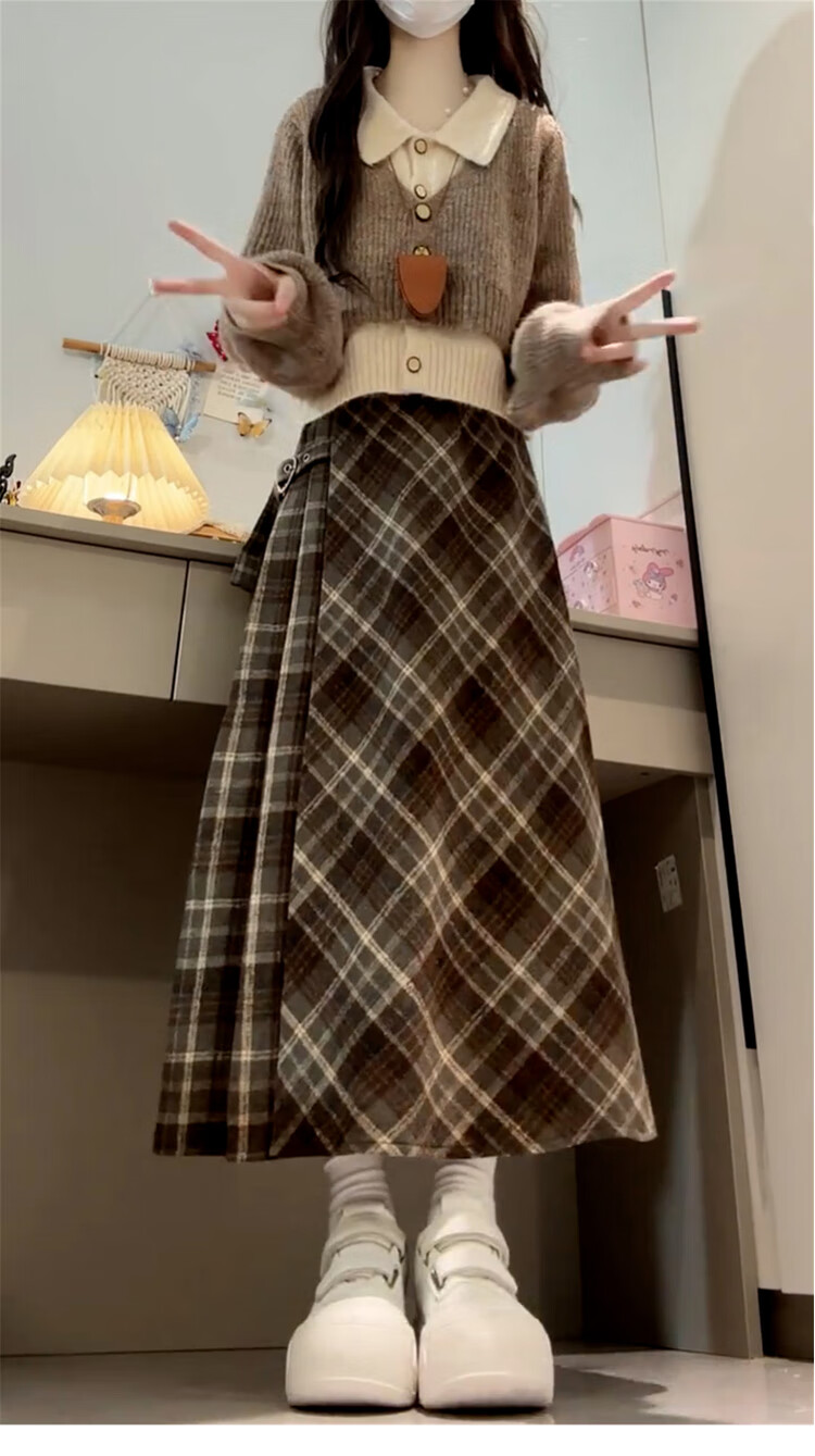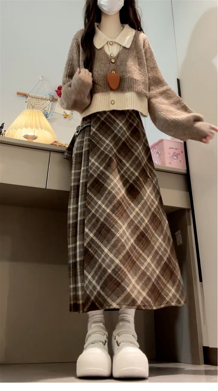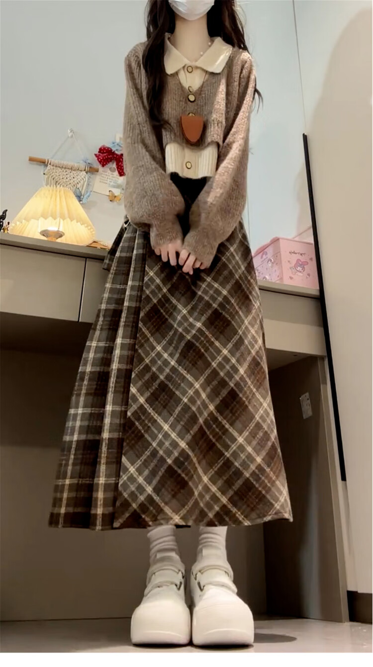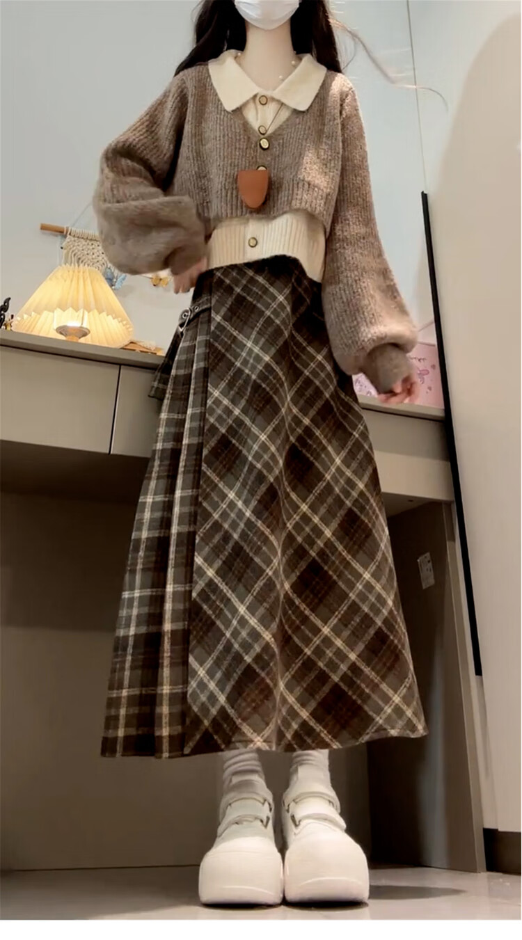 Maili Dress Women's Autumn and Winter 2025 New College Fragrance Style Complete Set Temperament Knitted Sweater Skirt Fake Two-piece Top + Skirt M