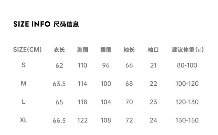 China(cm) 72-76 76-81 81-87 87-93 93-98