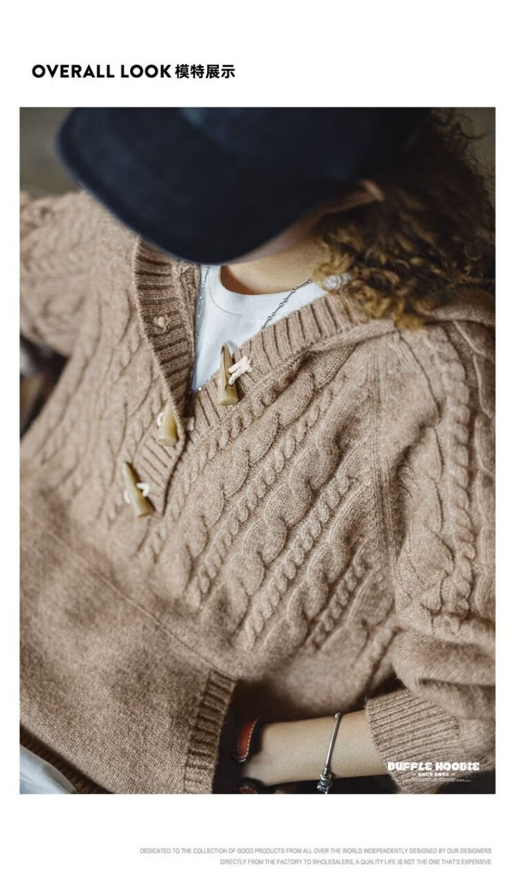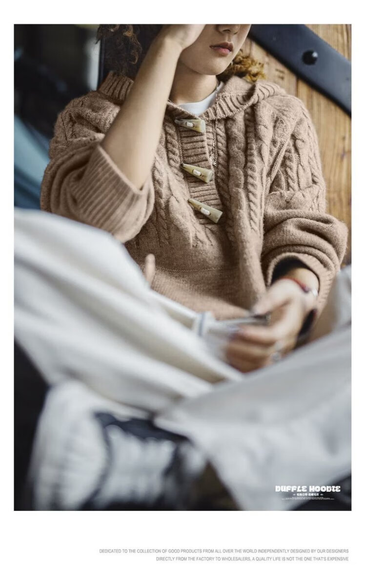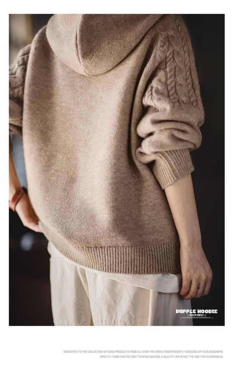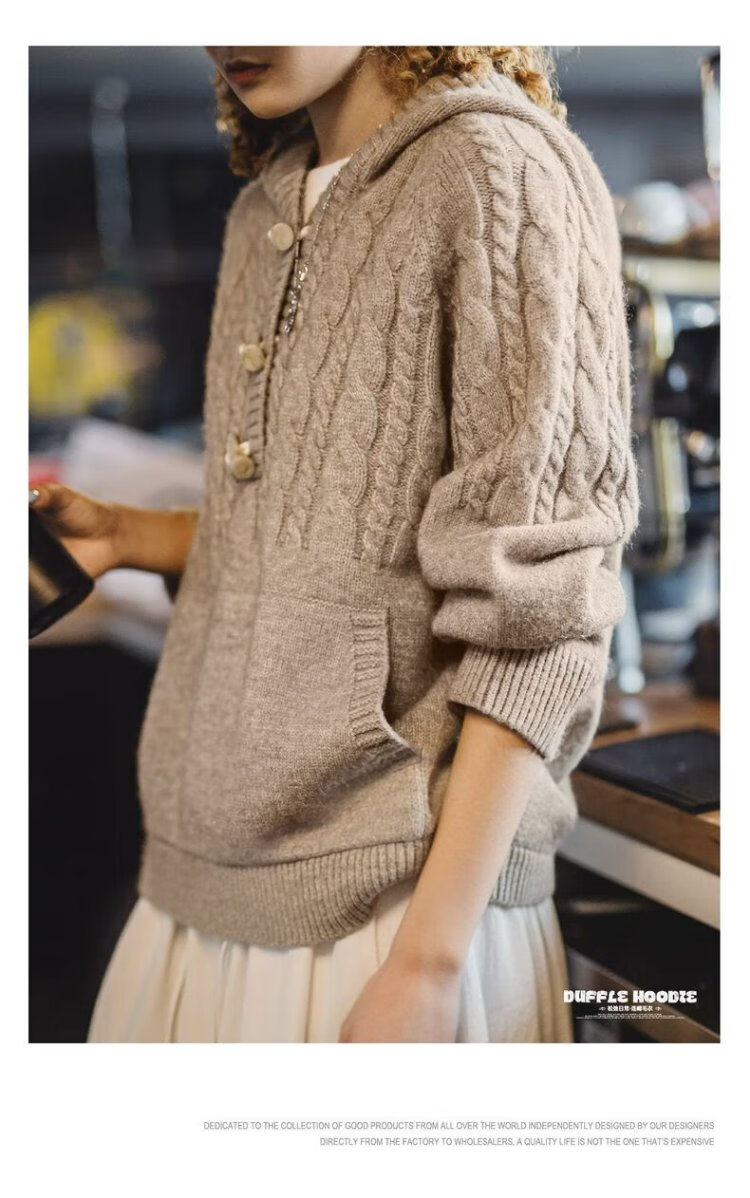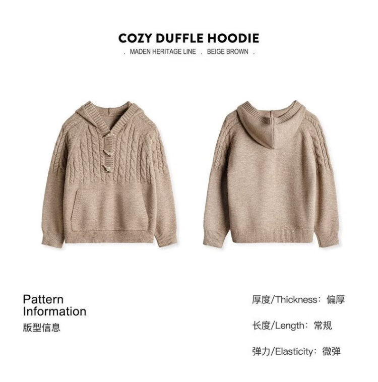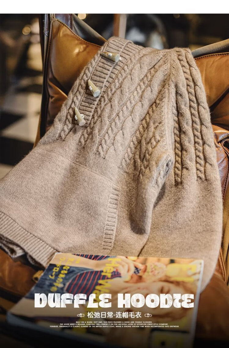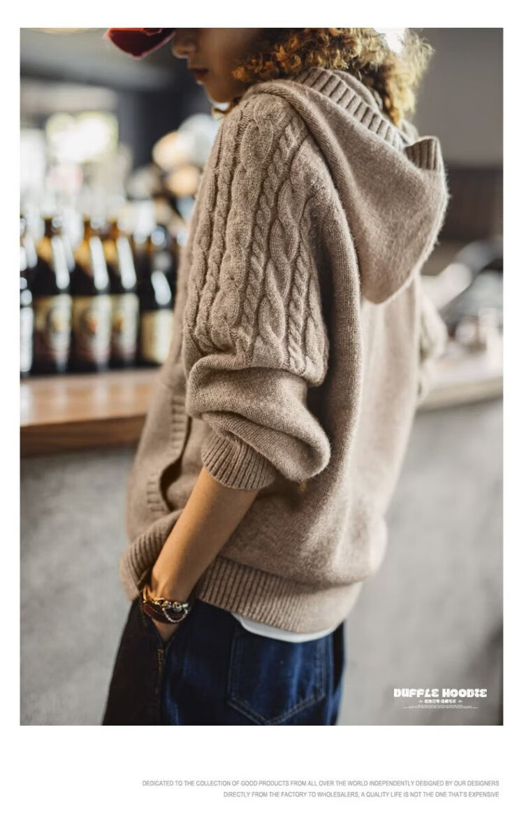 Madden cable hooded sweater women's half-cardigan loose casual pullover hoodie women's autumn and winter outer wear thick sweater beige M (100-120Jin Jin equals 0.5 kg)
