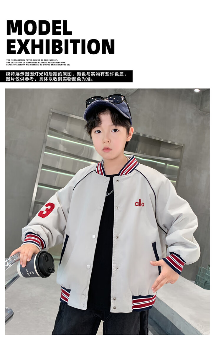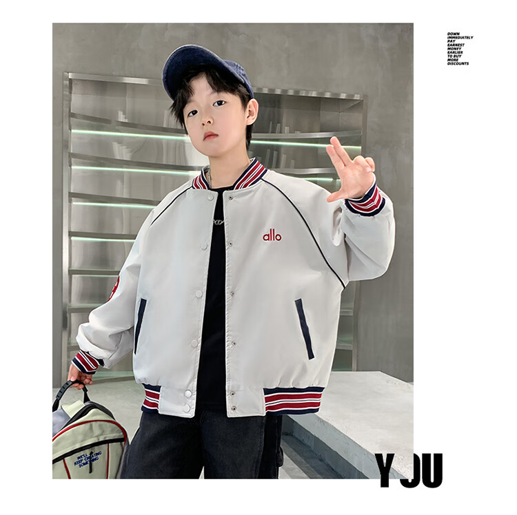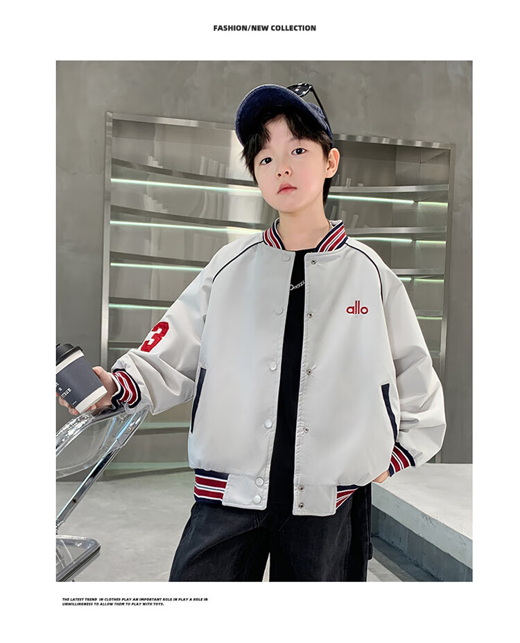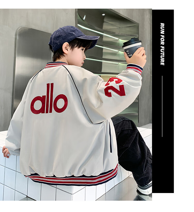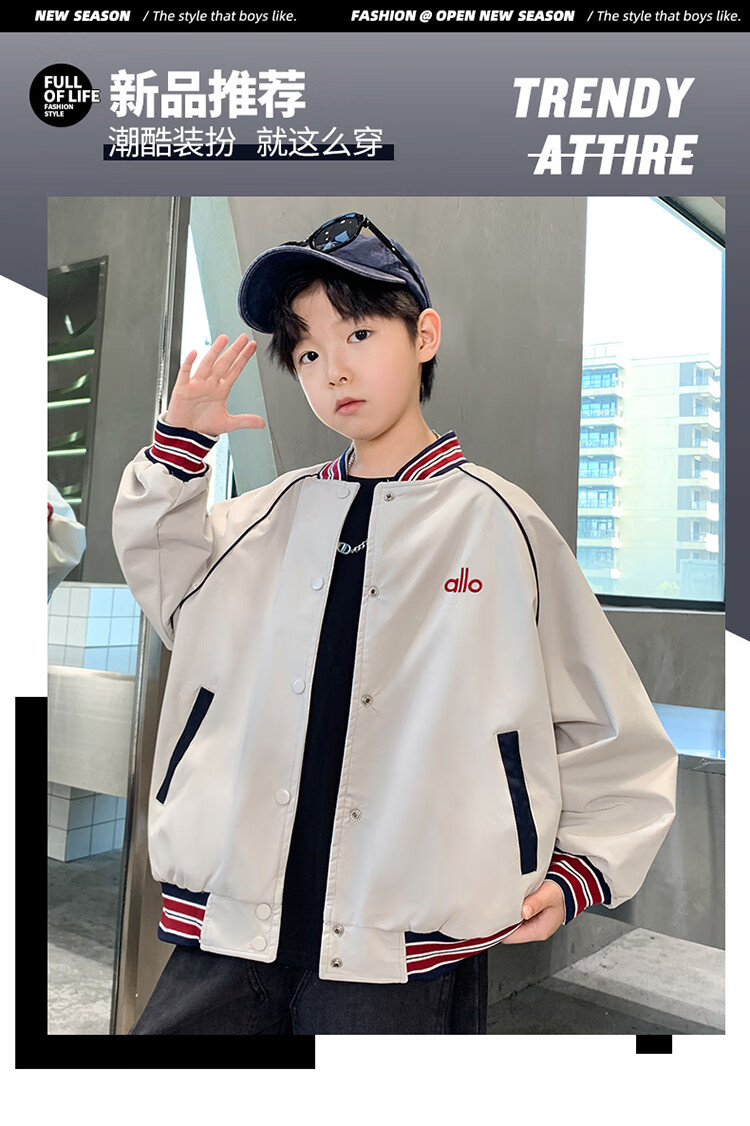 ALO YOGAalo jacket boys spring and autumn baseball uniform 2025 new medium and large children's autumn children's clothing jacket top beige BBL2526 jacket 160