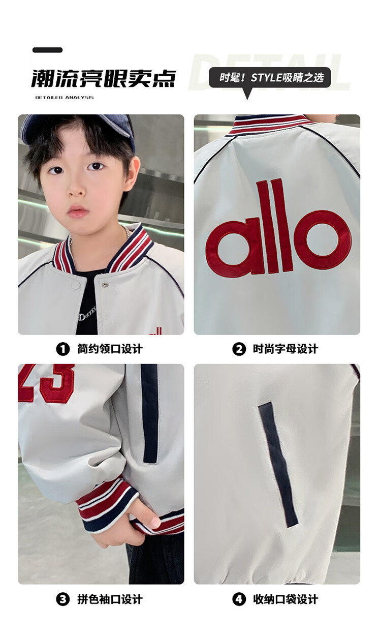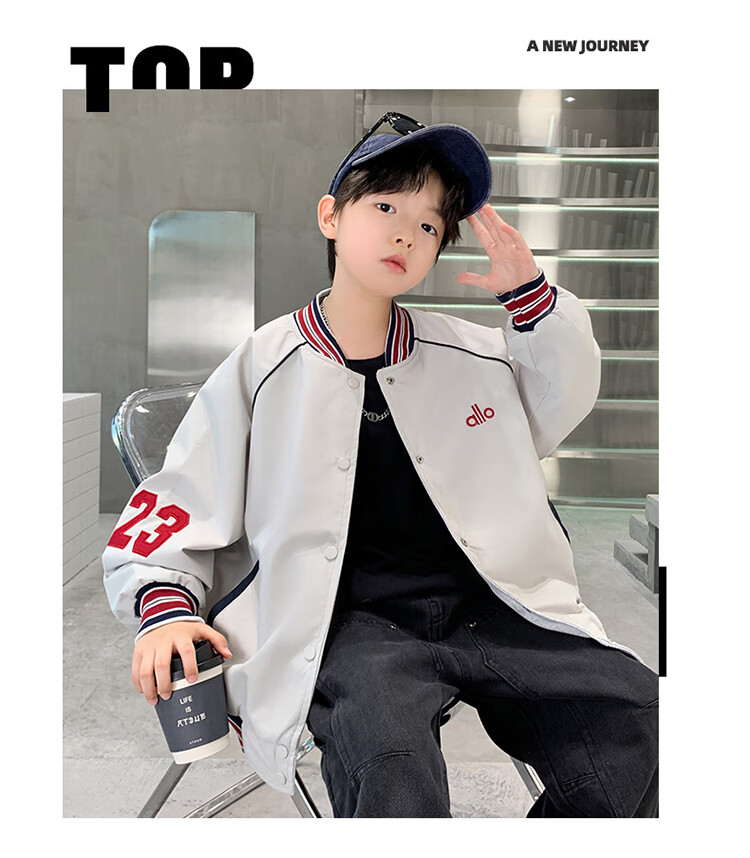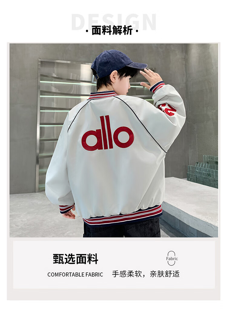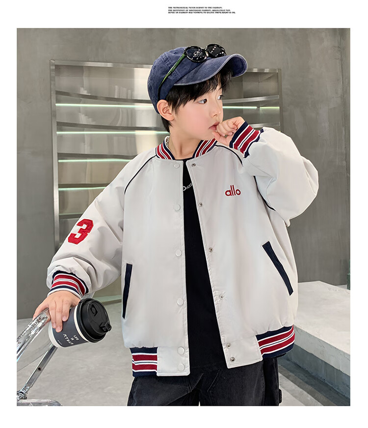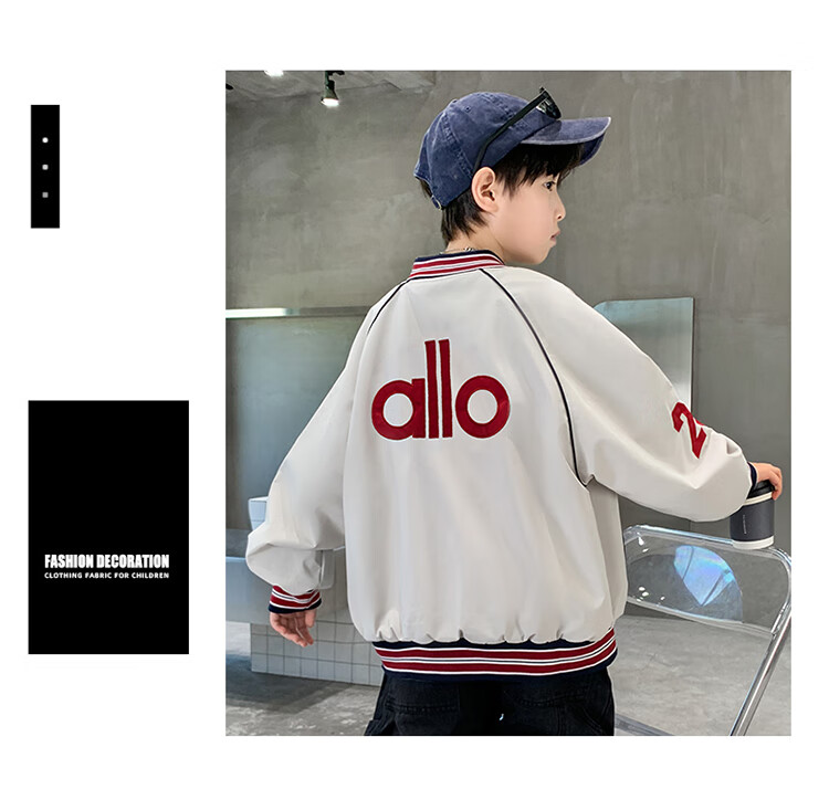 ALO YOGAalo jacket boys spring and autumn baseball uniform 2025 new medium and large children's autumn children's clothing jacket top beige BBL2526 jacket 160