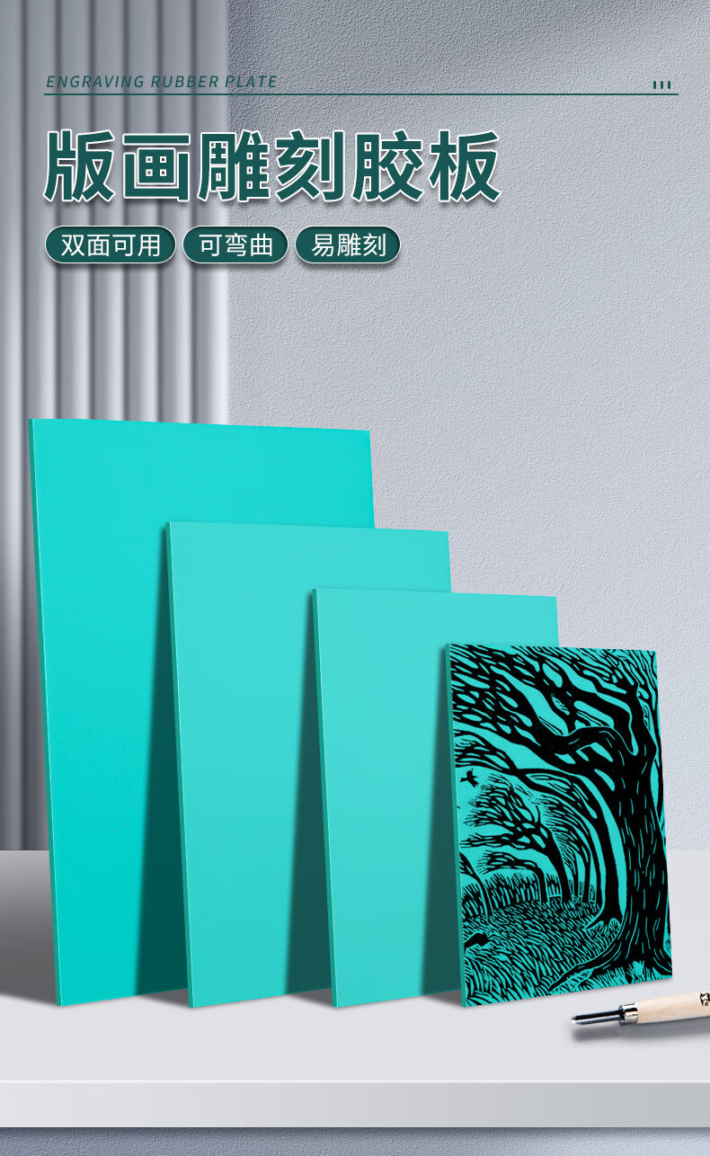 Yuyue Printing Offset Green Offset A4 Double-sided Engraving Board Ink Printmaking Tool Set Material A2 Soft Rubber Board Linen Stereotype Student Art Student Special Pigment Rubbing Roller A4 Wooden Board-2 Pieces (22*30cm)