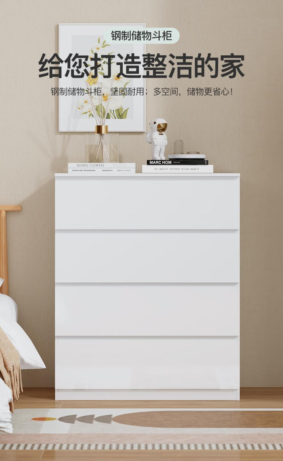 Fat Donglai made the same style of drawer cabinets, five household storage lockers, iron bedside entryway storage cabinets, bedside drawer cabinets, white 400MM six-drawer combination cabinets