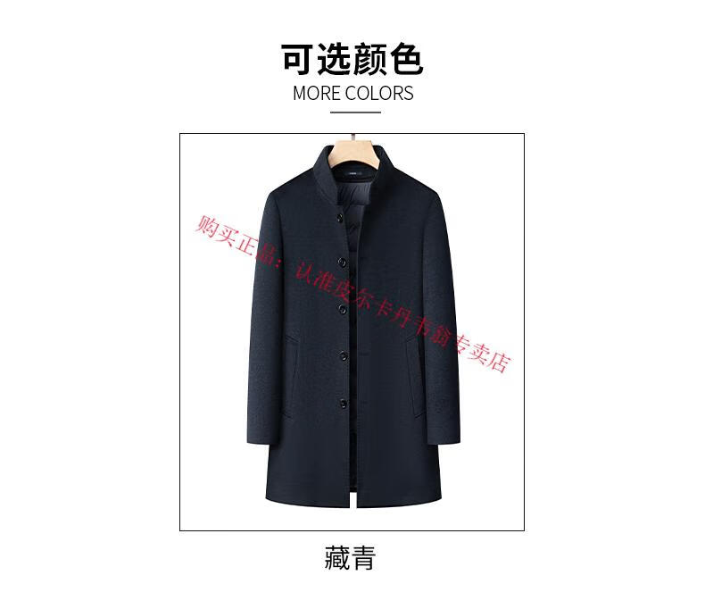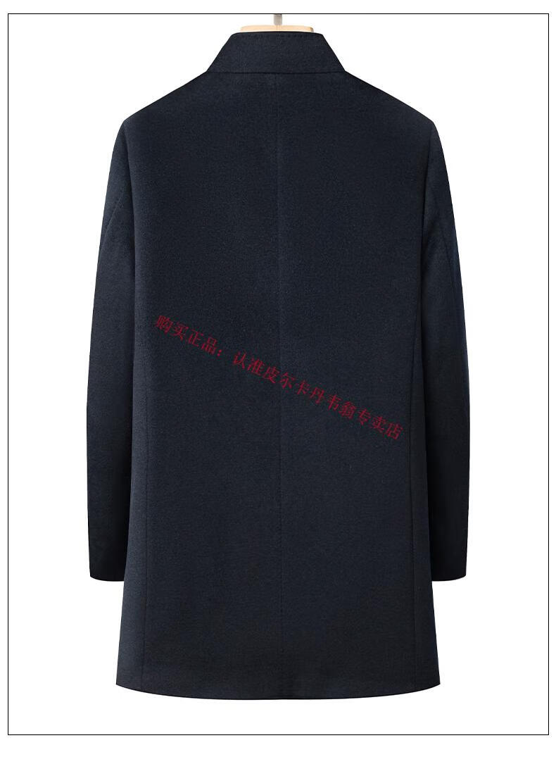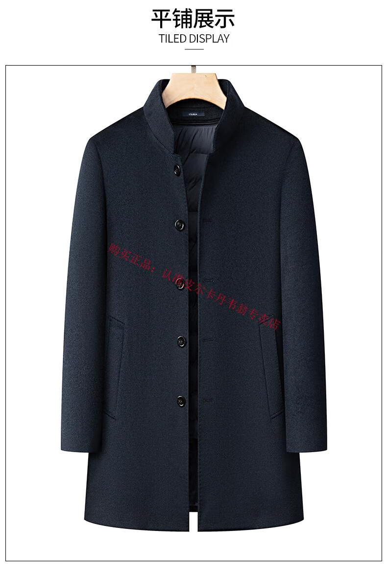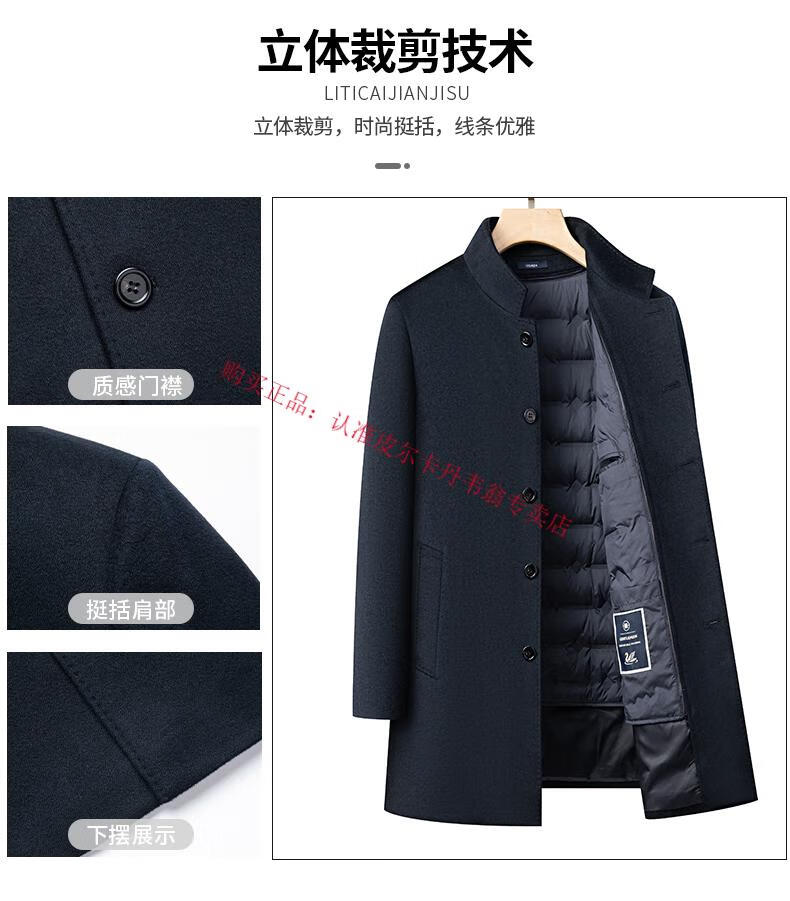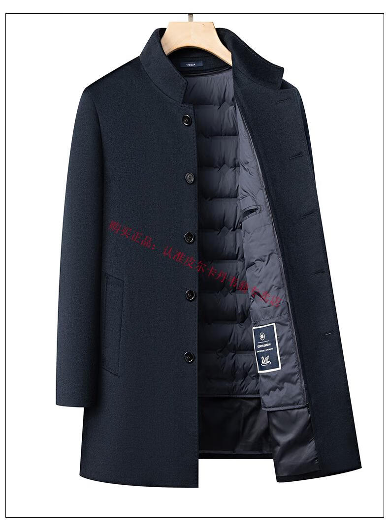 Pierre Cardin's new winter thickened 95% goose down lining wool jacket for men, mid-length stand-up collar cashmere warm coat for men, navy blue 2XL 185 recommended 160-180 Jin Jin equals 0.5 kg