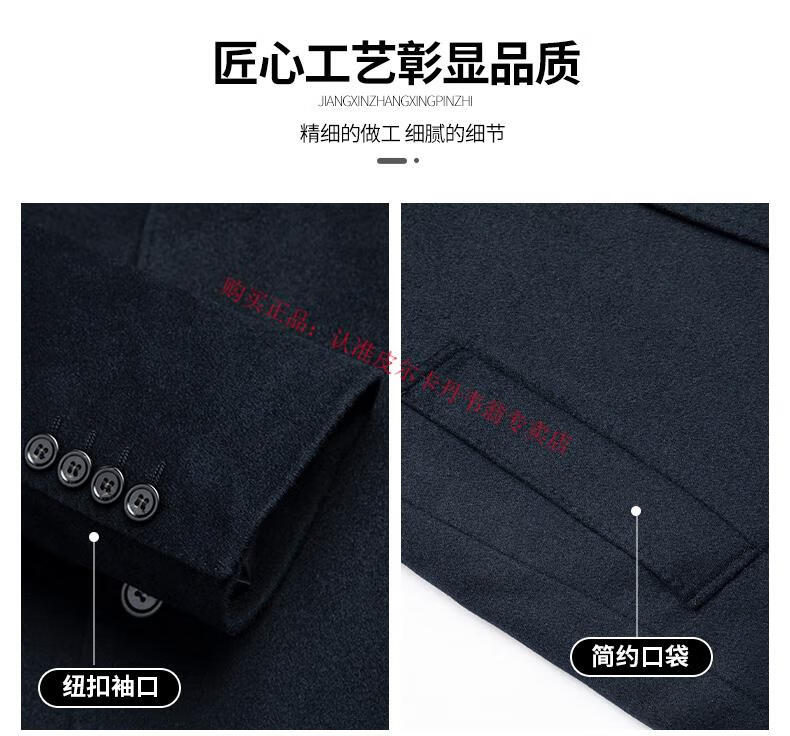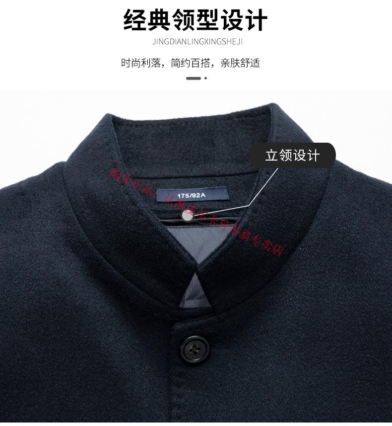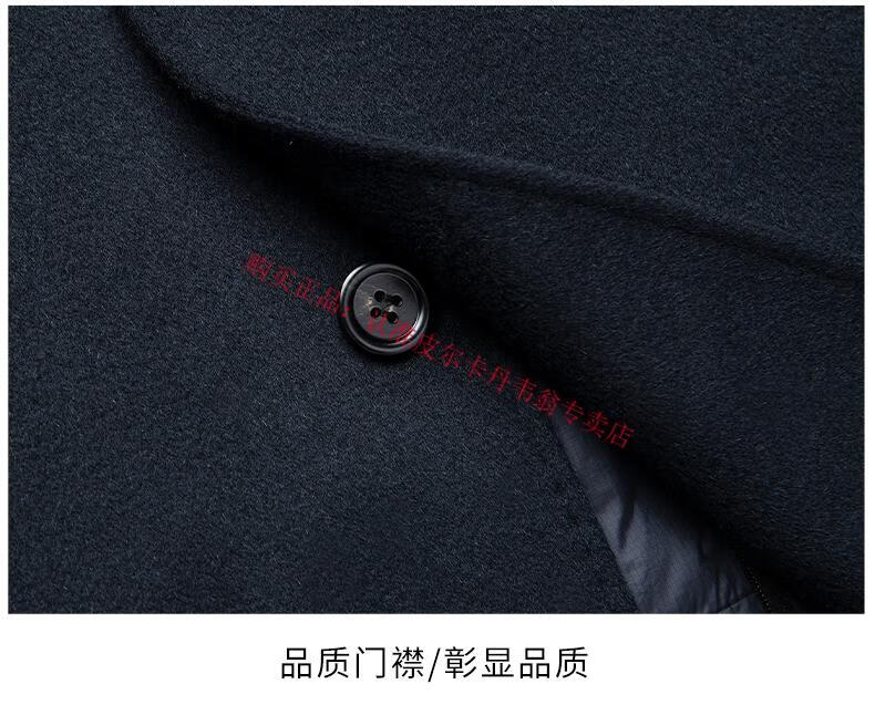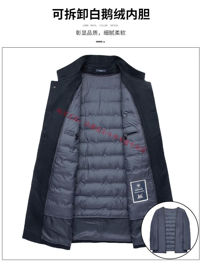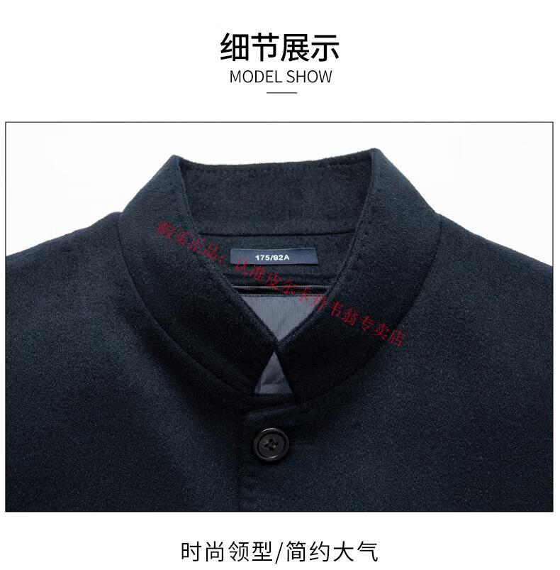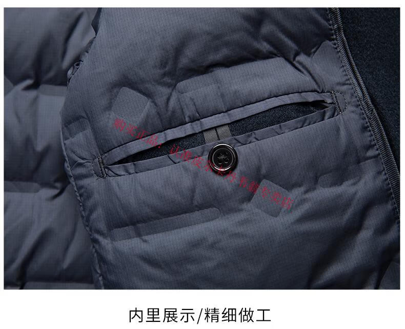 Pierre Cardin's new winter thickened 95% goose down lining wool jacket for men, mid-length stand-up collar cashmere warm coat for men, navy blue 2XL 185 recommended 160-180 Jin Jin equals 0.5 kg