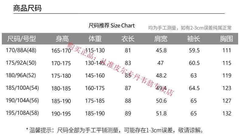 China (cm) 165 / 88-90 170 / 96-98 175 / 108-110 180 / 118-122 185 / 126-130