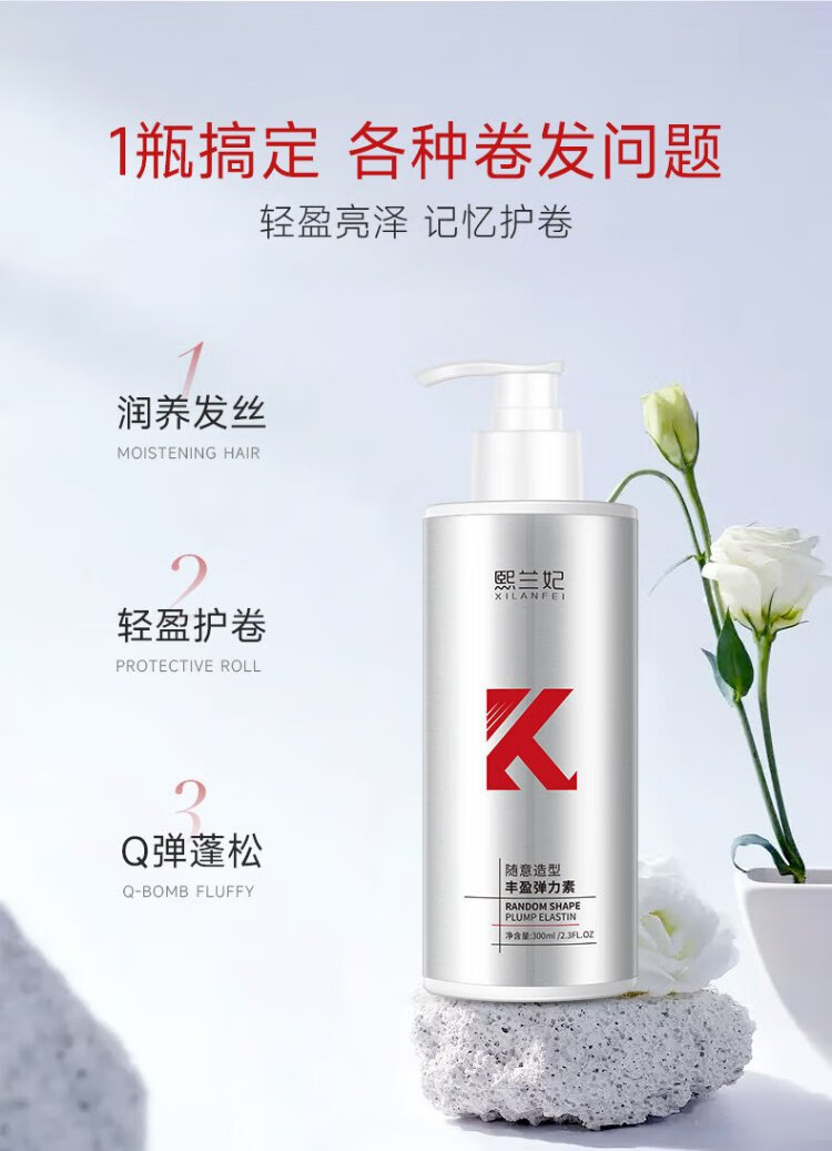 Xilanfei elastin special care for curly hair, moisturizing, long-lasting styling, anti-frizz, fluffy hair care, refreshing and not 1 bottle of 300ml elastin