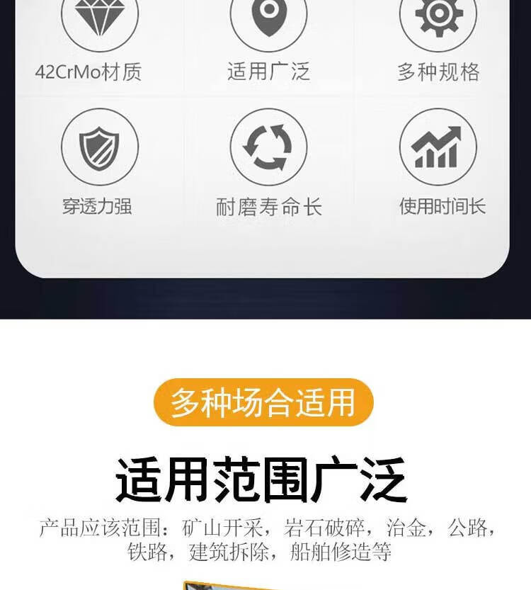 Fengxi excavator breaker hammer drill rod 45/53/68/75/100/135-210 various high wear-resistant nozzles 40 drill rods (high wear resistance 400 long)