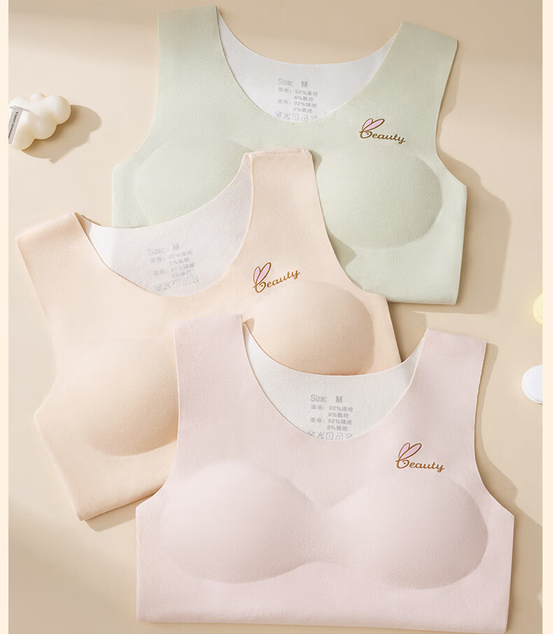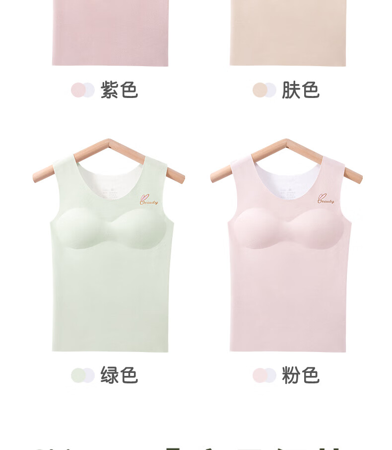 Red Bean Children's Developmental Warm Vest Girls' Velvet Vests Junior High School and High School Girls' Underwear with Breast Pads Autumn and Winter 2 Pack Purple + Skin Color M Recommended 60-80 Jin Jin equals 0.5 kg