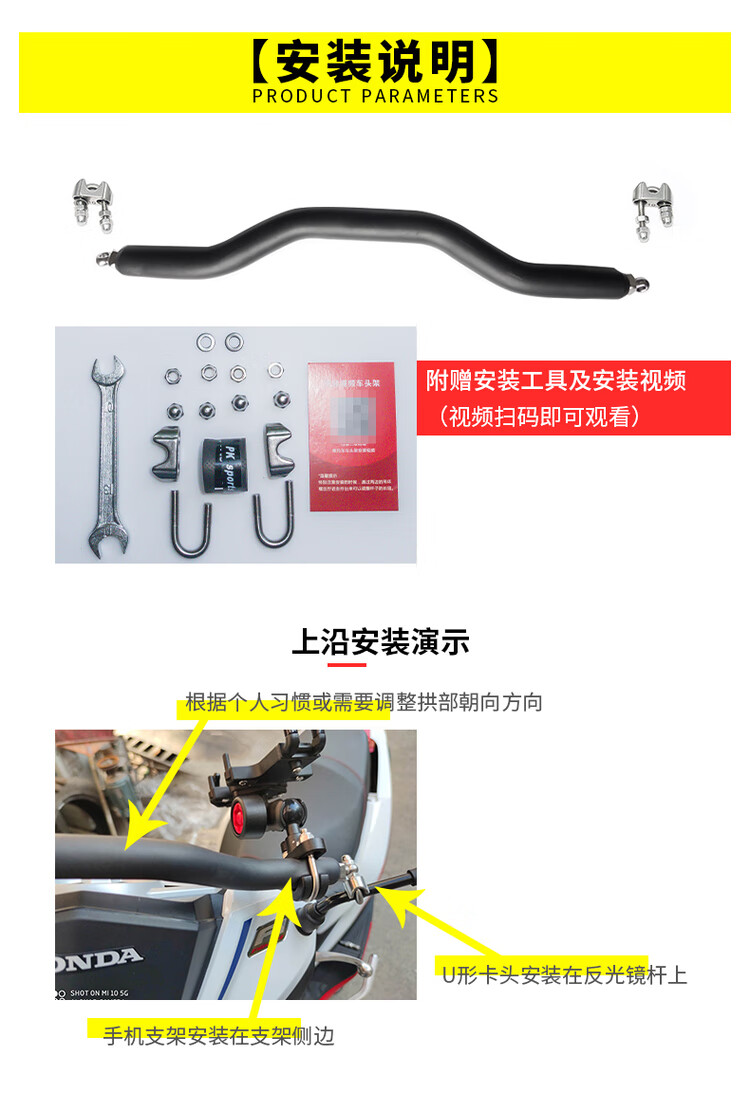 Langjian is suitable for Wuyang Honda LD125 LINK NW F125 children's armrest multi-functional expansion bracket accessories 7-mirror holder black fixed in the rearview mirror hole to change the rearview mirror