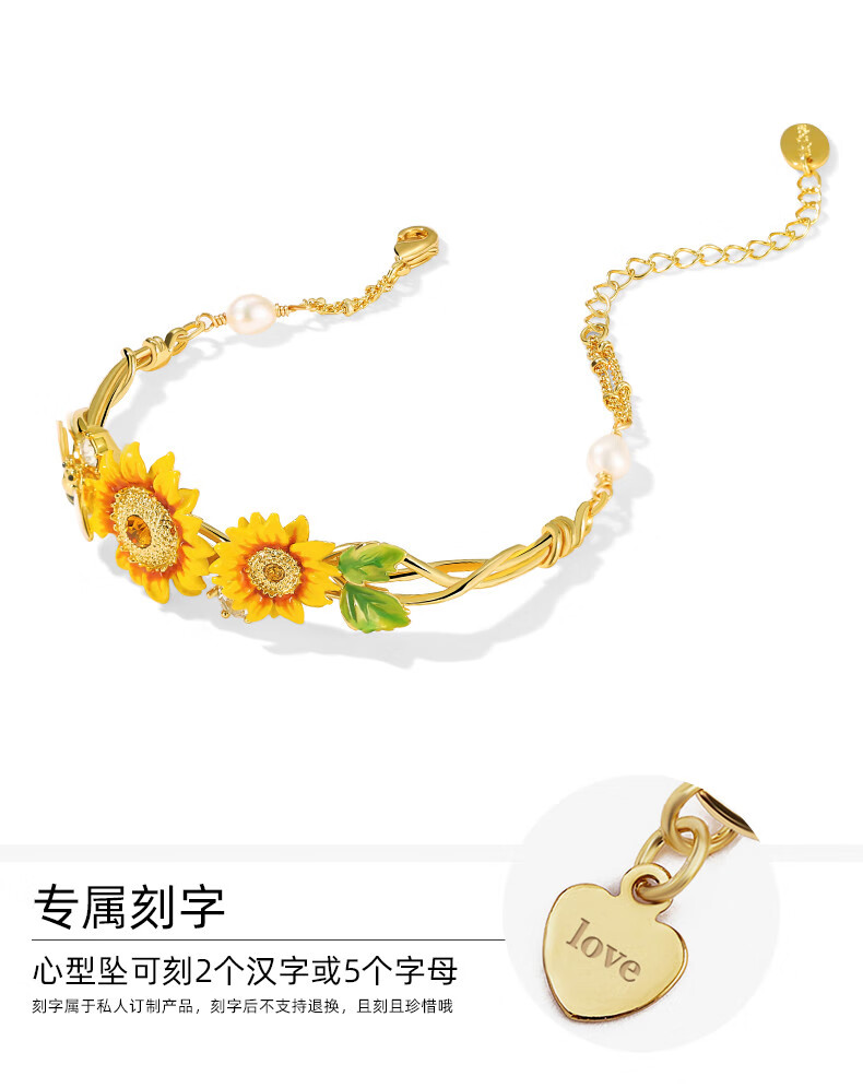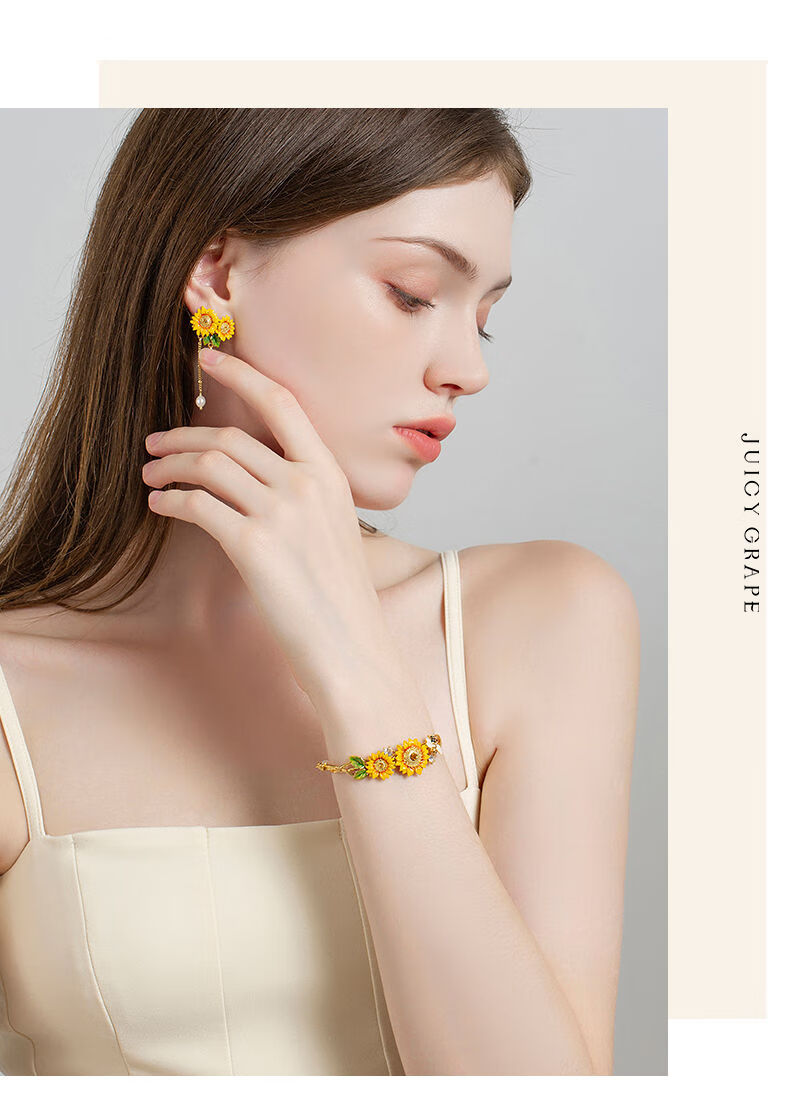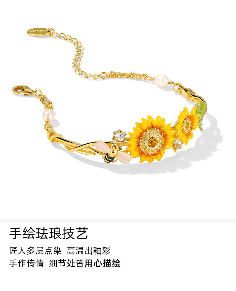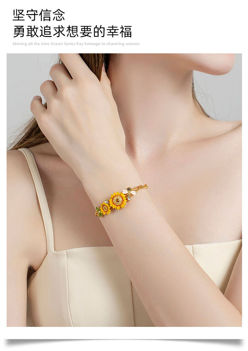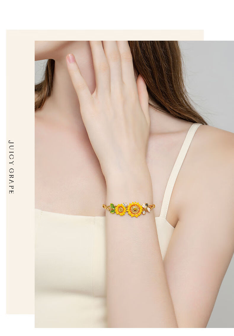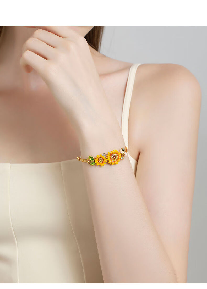 MHFDO original light luxury sweet enamel sunflower flower half bracelet bracelet girl bestie gift for friends yellow