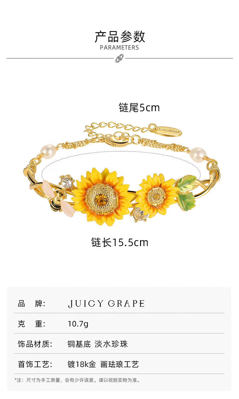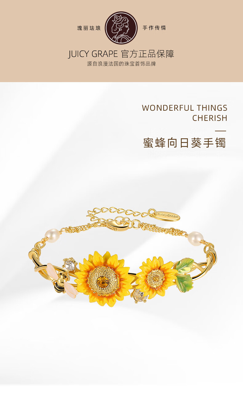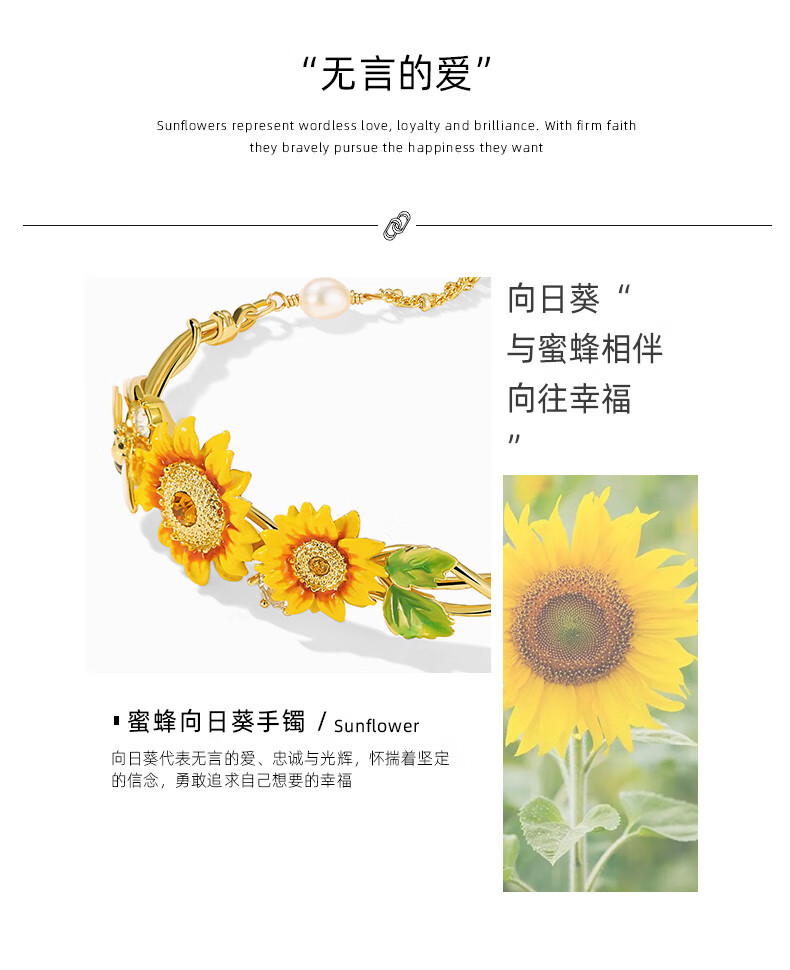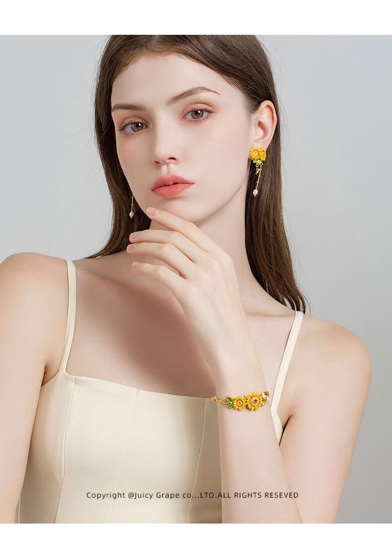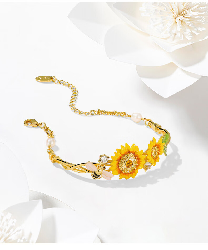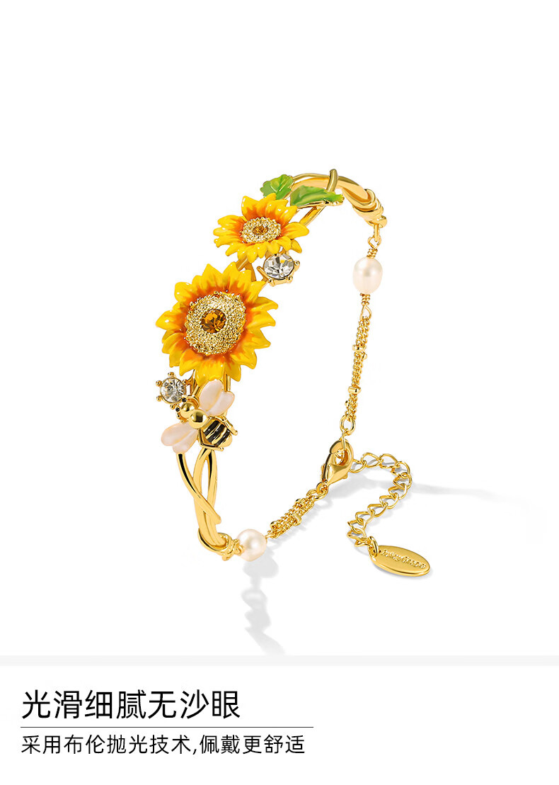MHFDO original light luxury sweet enamel sunflower flower half bracelet bracelet girl bestie gift for friends yellow