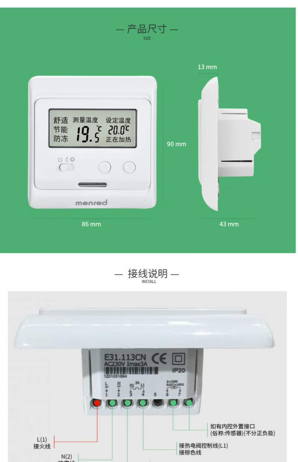 Manred water floor heating thermostat floor heating controller boiler Chinese LCD screen thermostat floor Manred E31.113CN water floor heating
