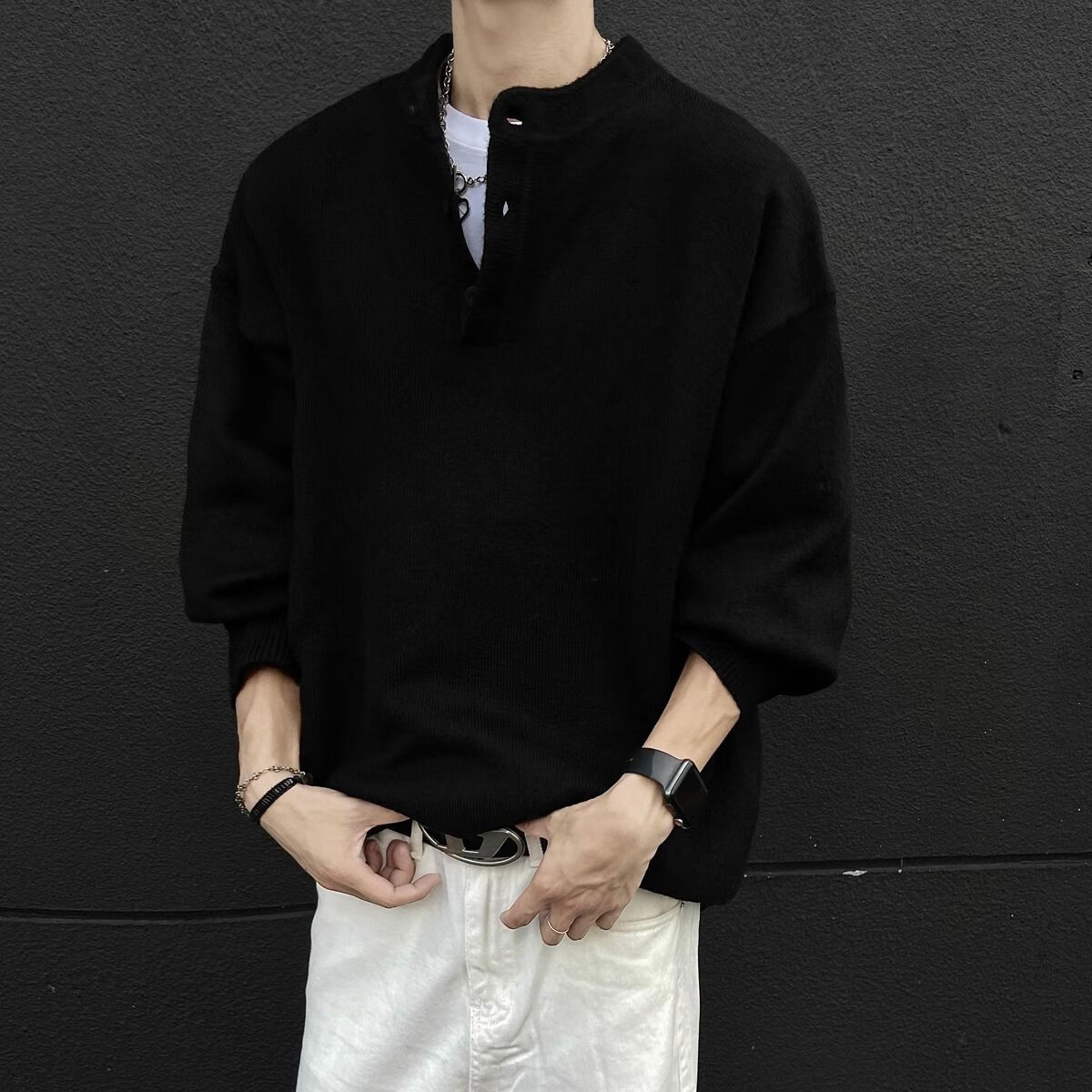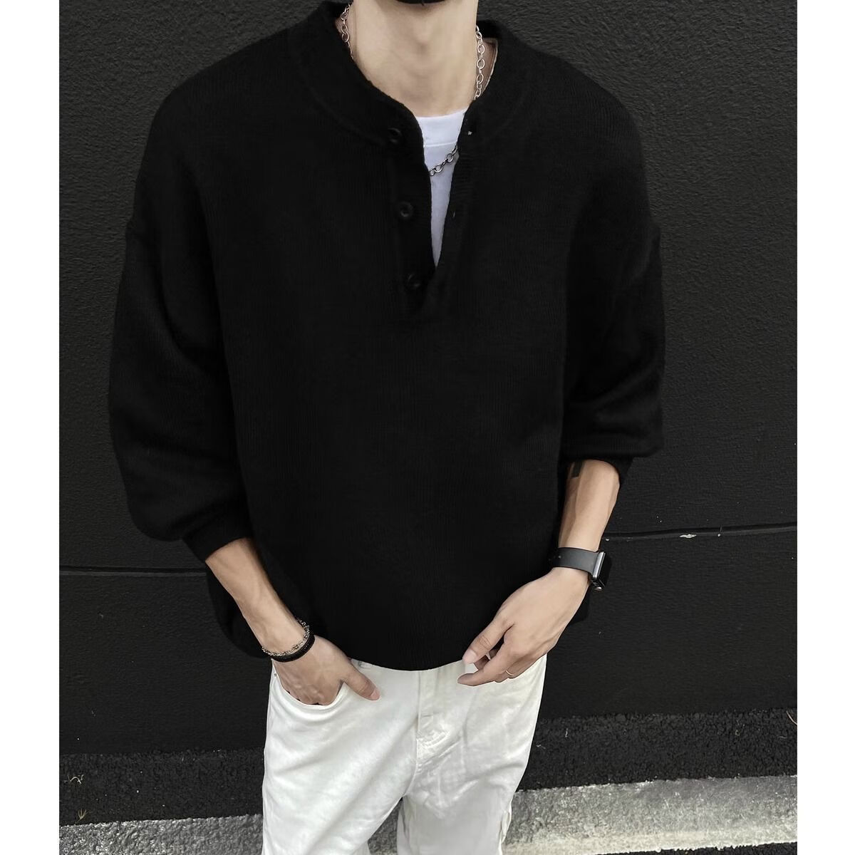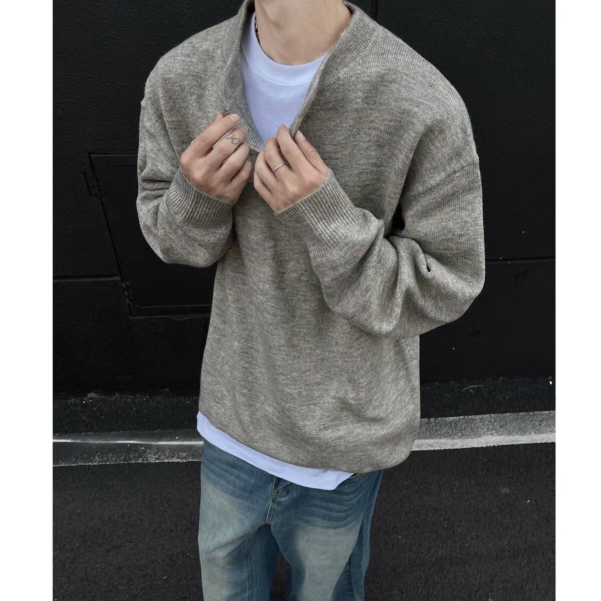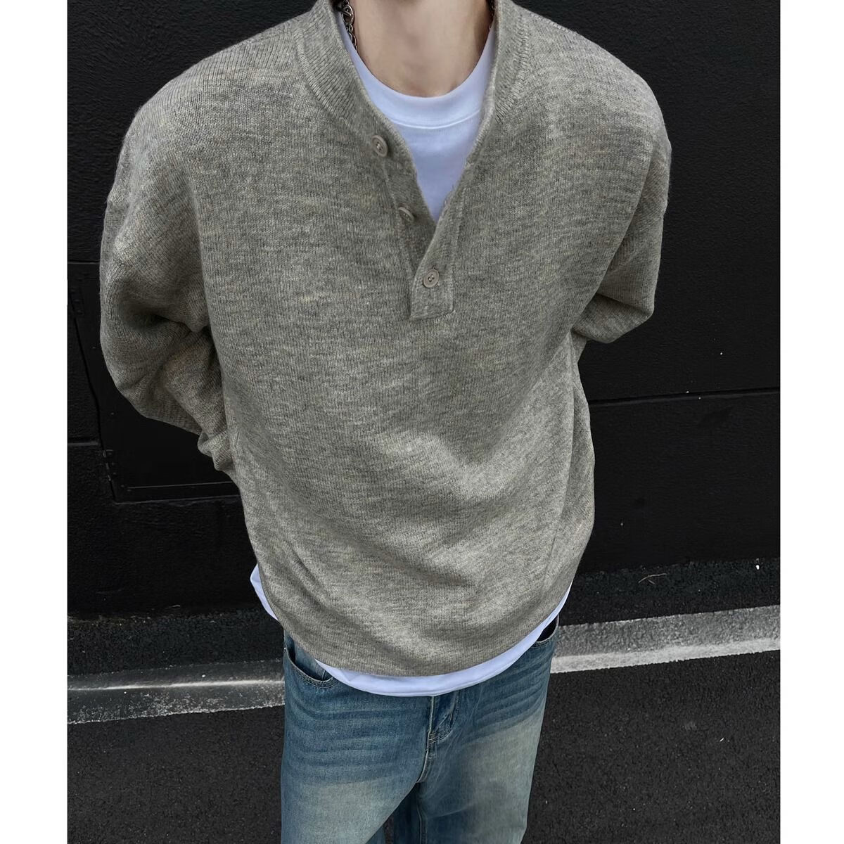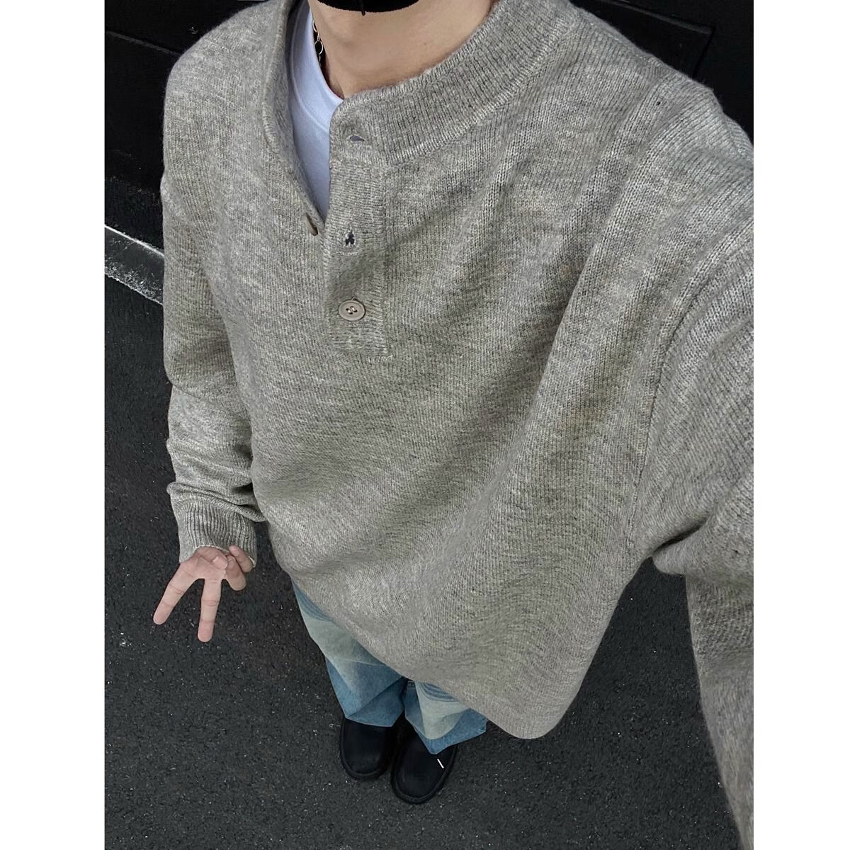 Pupan American style lazy style cleanfit Henry collar sweater men's autumn and winter bottoming thickened sweater jacket dark gray autumn and winter upgraded heavyweight model M M95 to 115Jin Jin is equal to 0.5 kg and can be worn