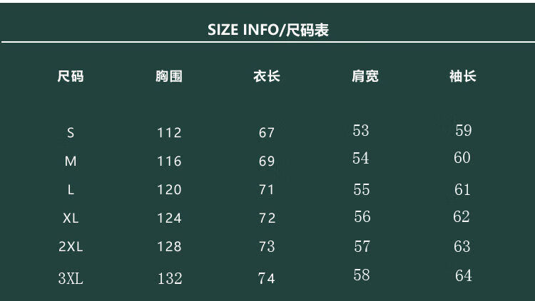 China (cm) 165 / 88-90 170 / 96-98 175 / 108-110 180 / 118-122 185 / 126-130