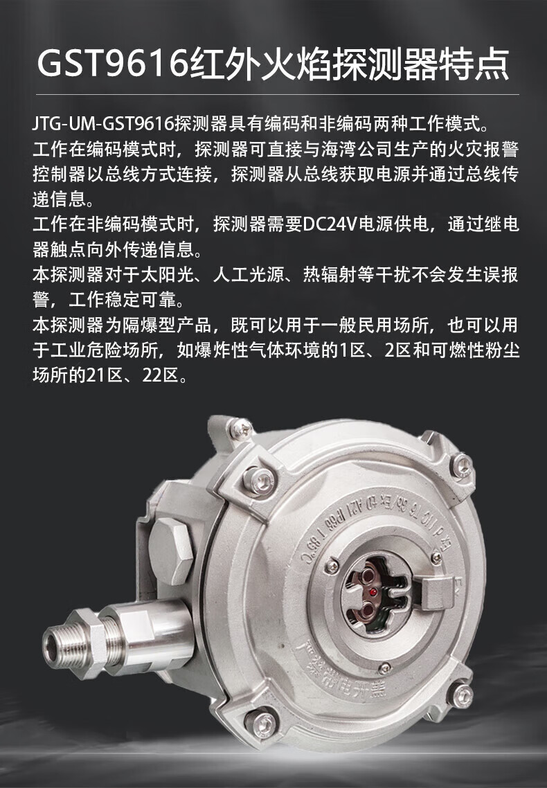 Bay explosion-proof infrared flame detector JTG-UM-GST9616 point type infrared flame detector explosion-proof type JTG-UM-GST9616 point type infrared flame detection