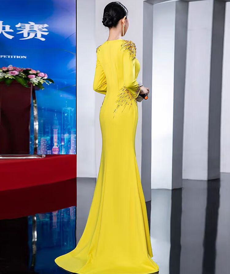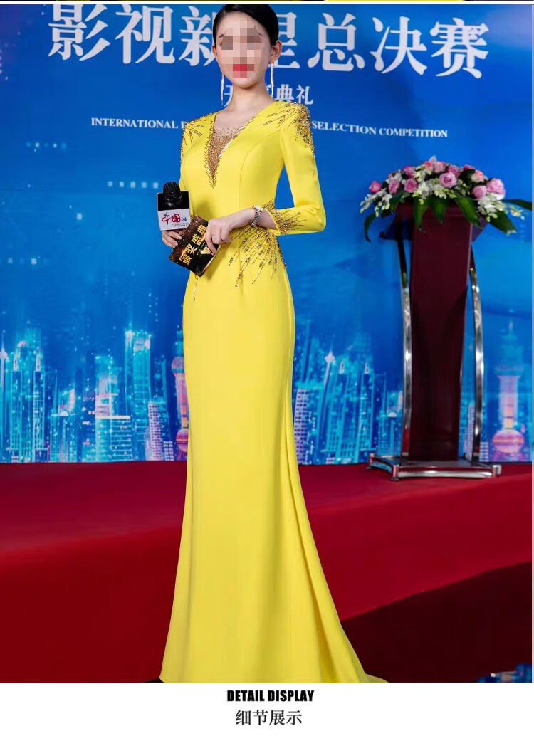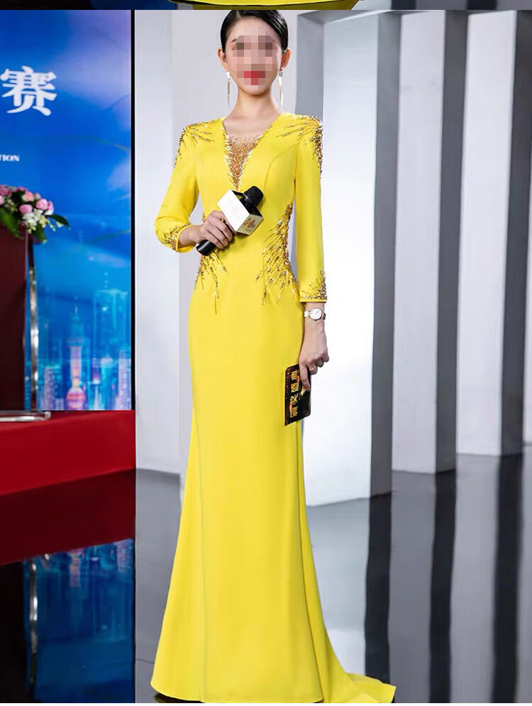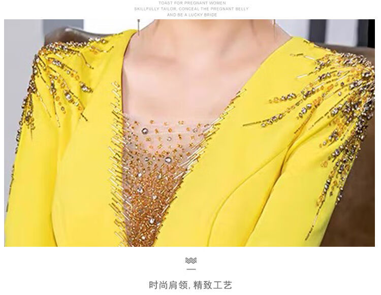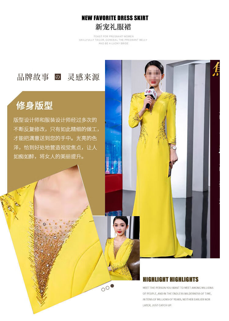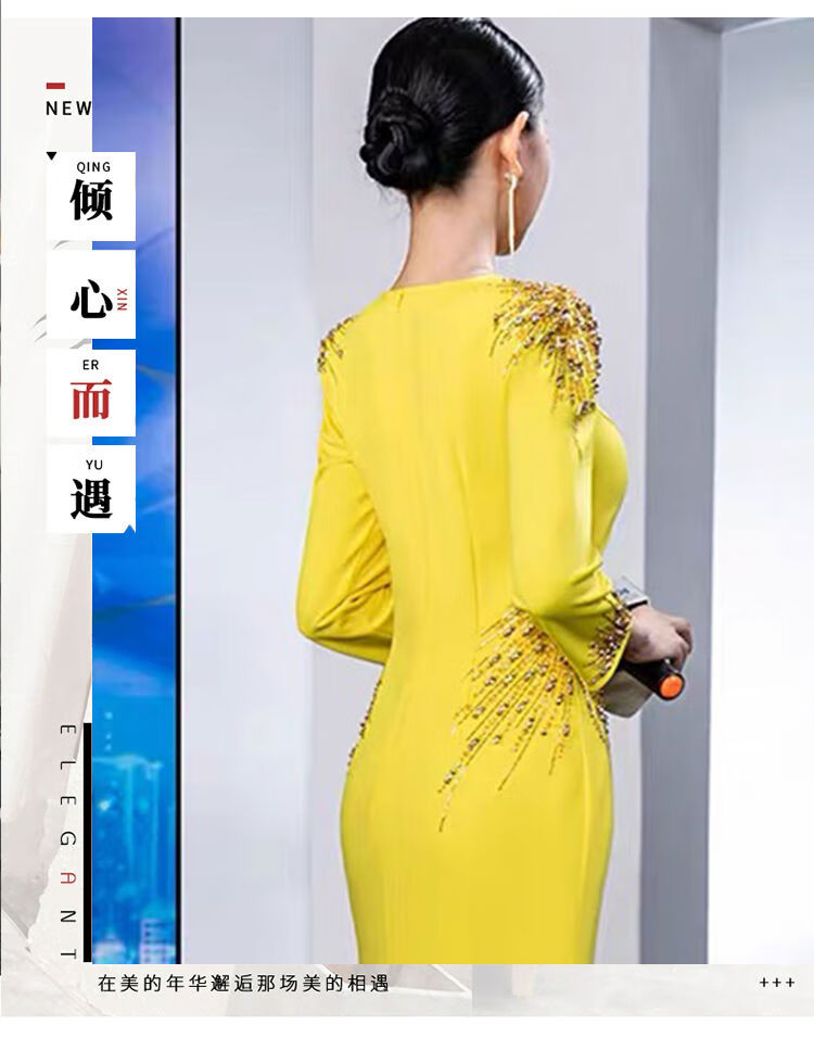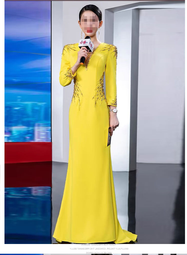 Banquet Evening Dress 2025 New High-end Light Luxury Niche Host Temperament Performance Clothes Long Version Women Yellow 3XL 3XL