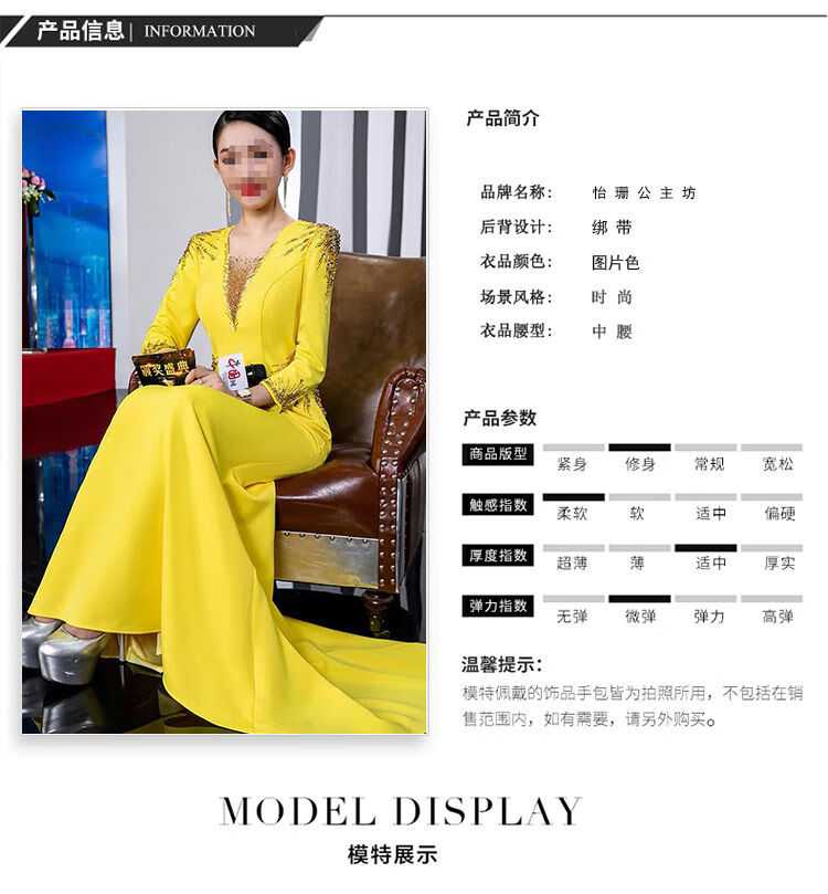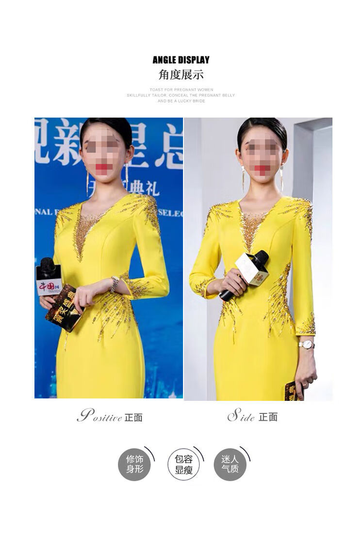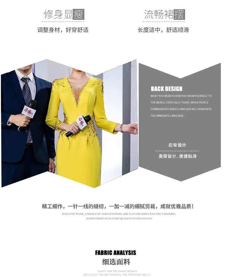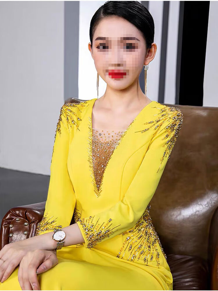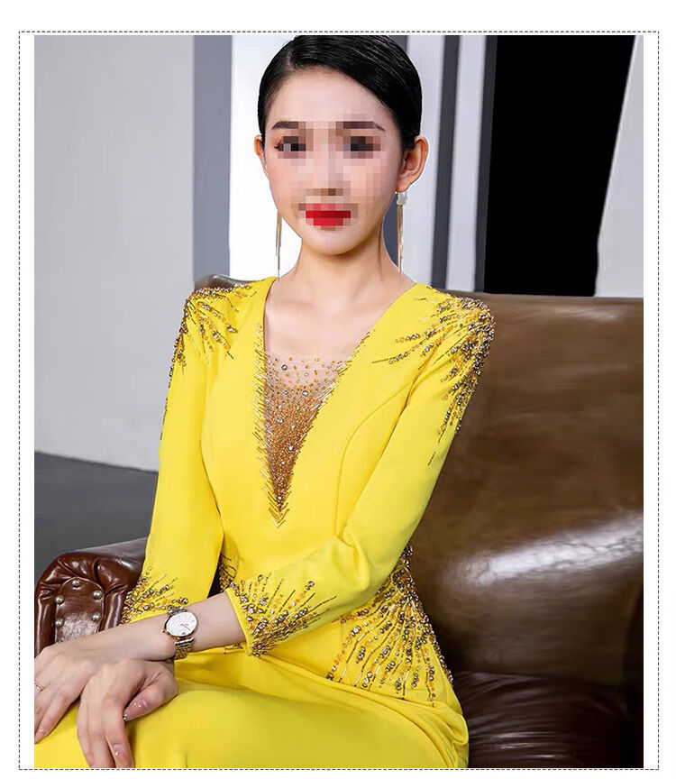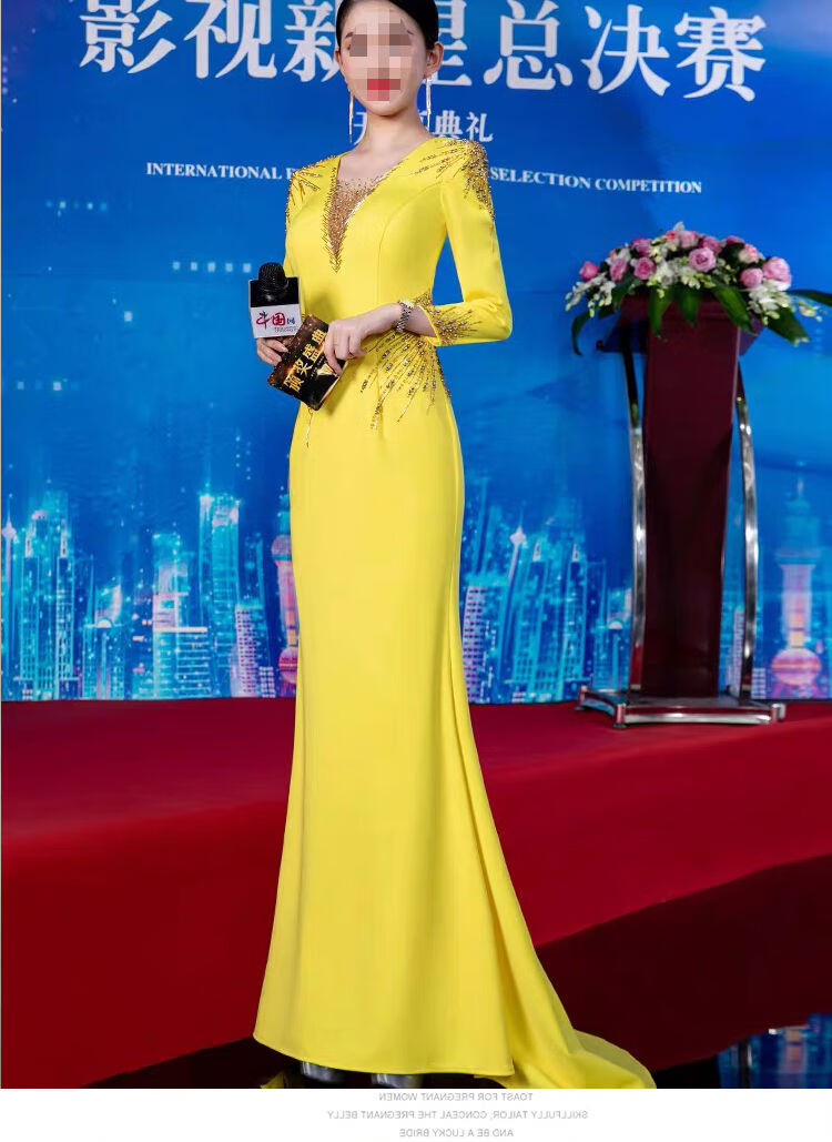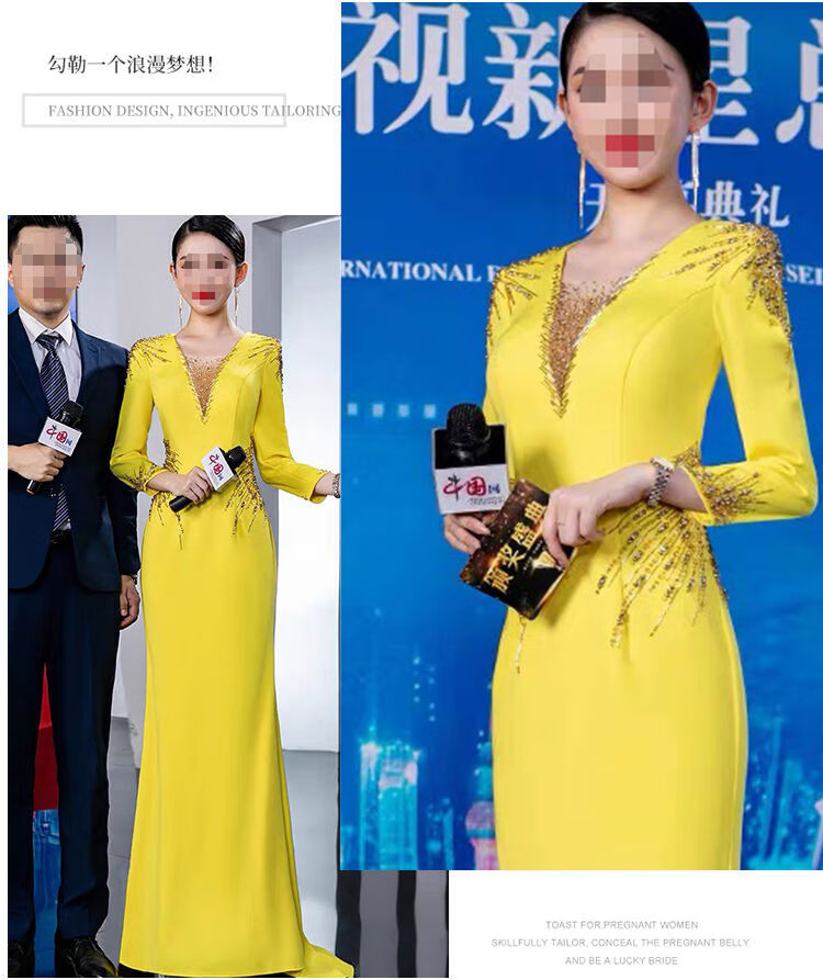Banquet Evening Dress 2025 New High-end Light Luxury Niche Host Temperament Performance Clothes Long Version Women Yellow 3XL 3XL