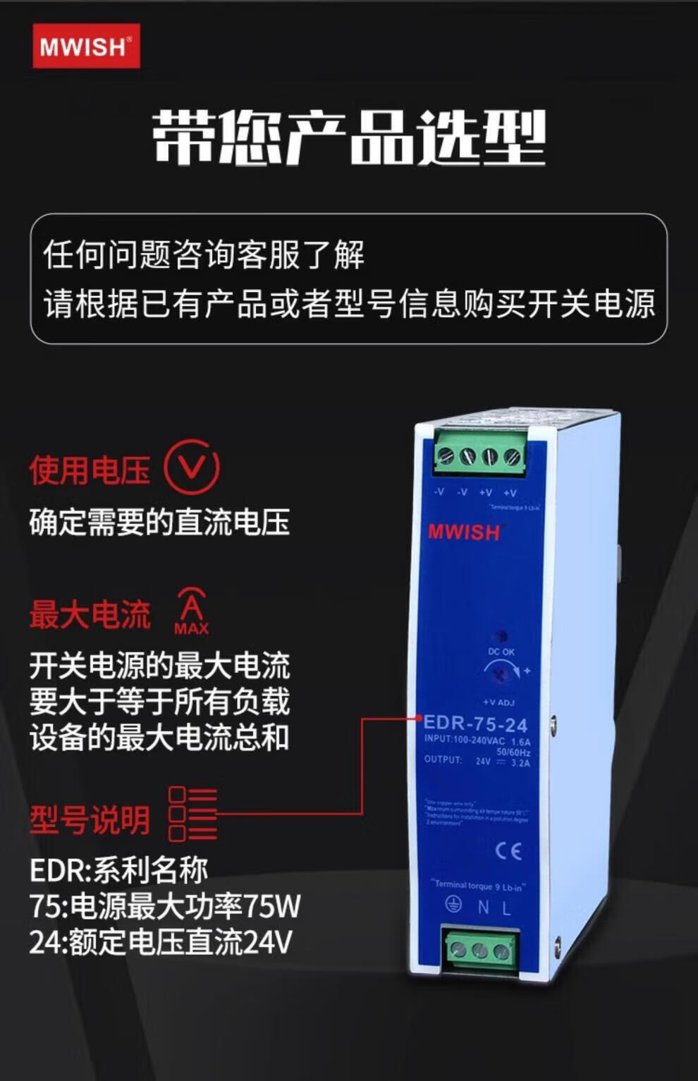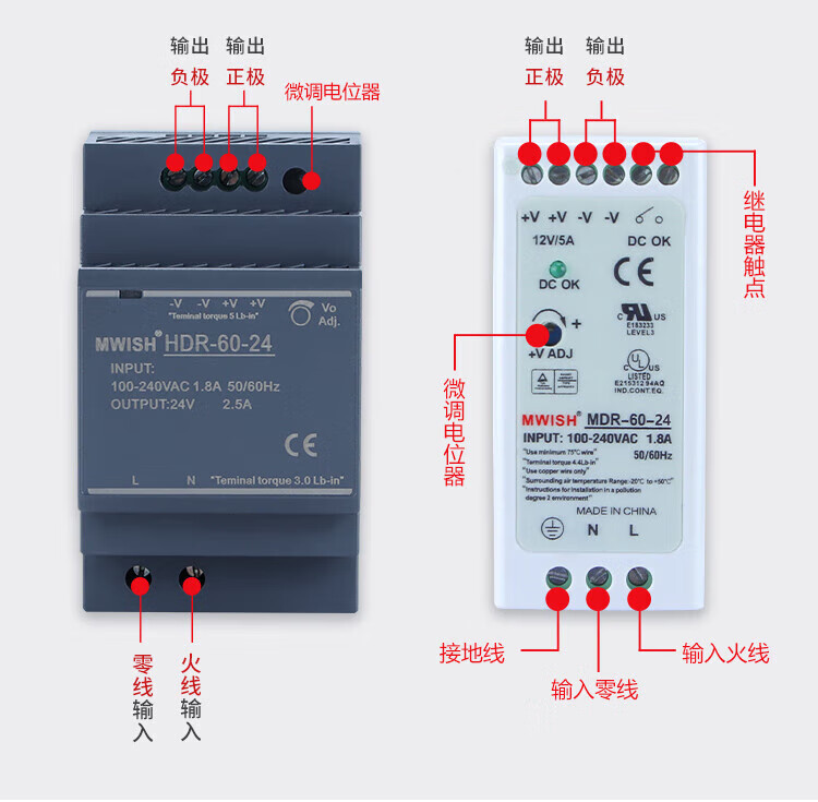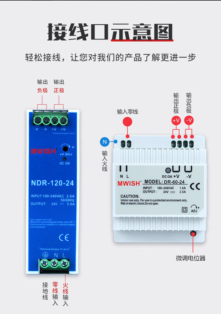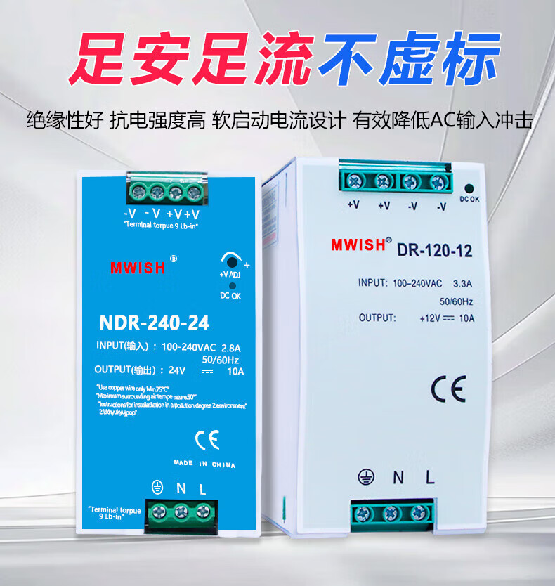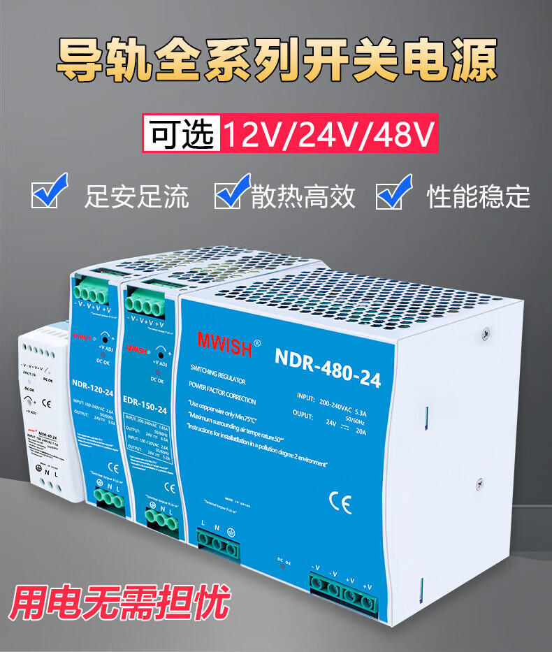 MEAN WELL EDR/NDR-120W rail-mounted switching power supply 24V DC DR-60/75/150/240W transformer industrial grade NDR-75-12 (12V6.5A) over 100