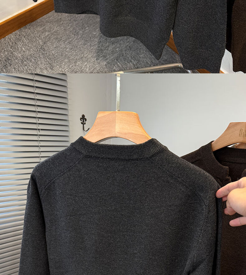 Xiaohongshu's hot style American Henry collar sweater men's thin autumn and winter youth solid color versatile sweater men's set carbon gray M M