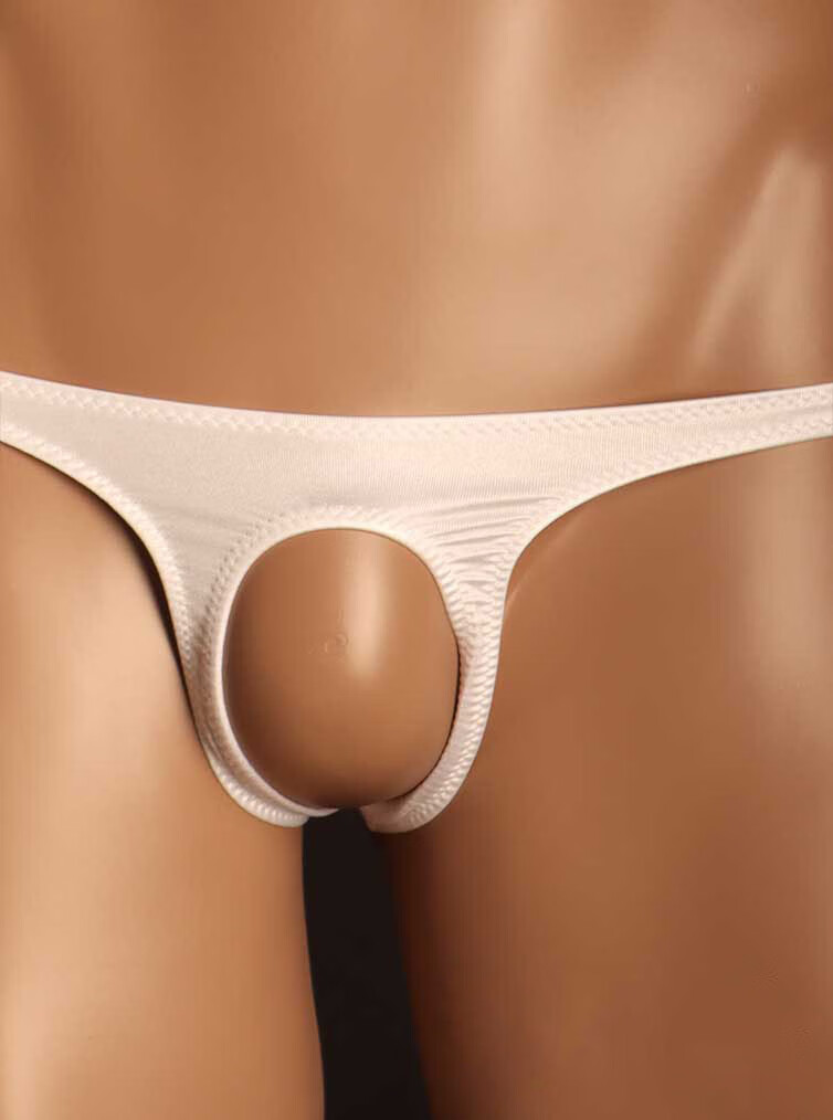 Men's Thong Sexy Tight Ice Silk Front Hole Men's Thong Low Waist Men's T-Pants Stretch Men's Single Thong White S